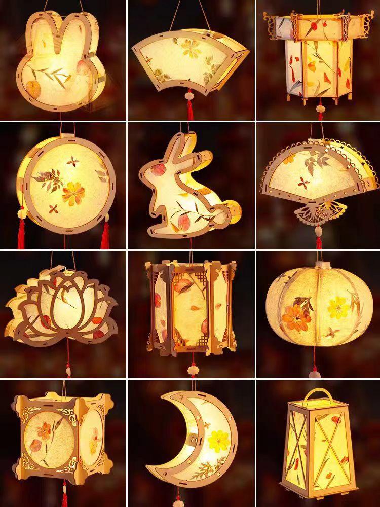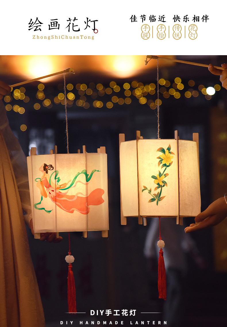 Linterna de Mediados de Otoño DIY Linterna Hecha a Mano Paquete de Materiales con Luz LED Linterna de Palacio de Mano para Niños de Jardín de Infancia Linterna de Flores de Estilo Antiguo