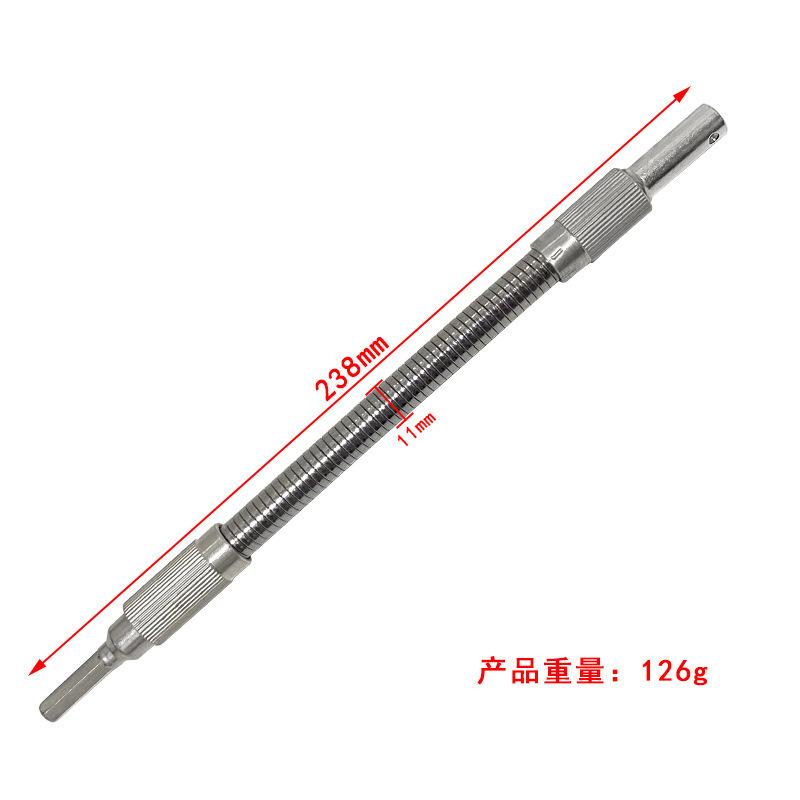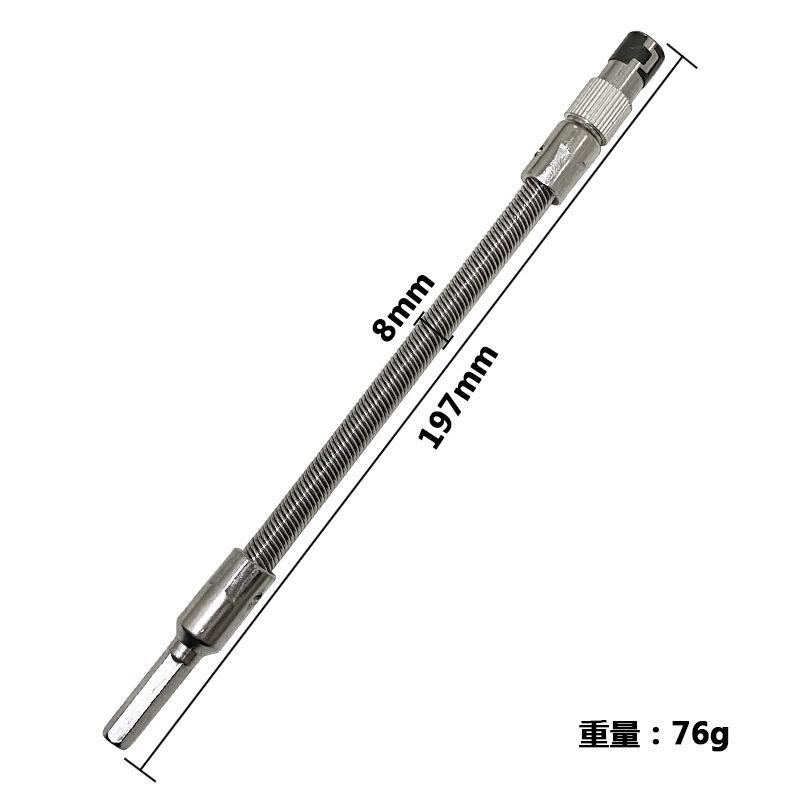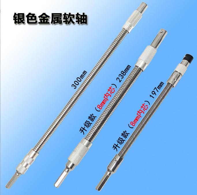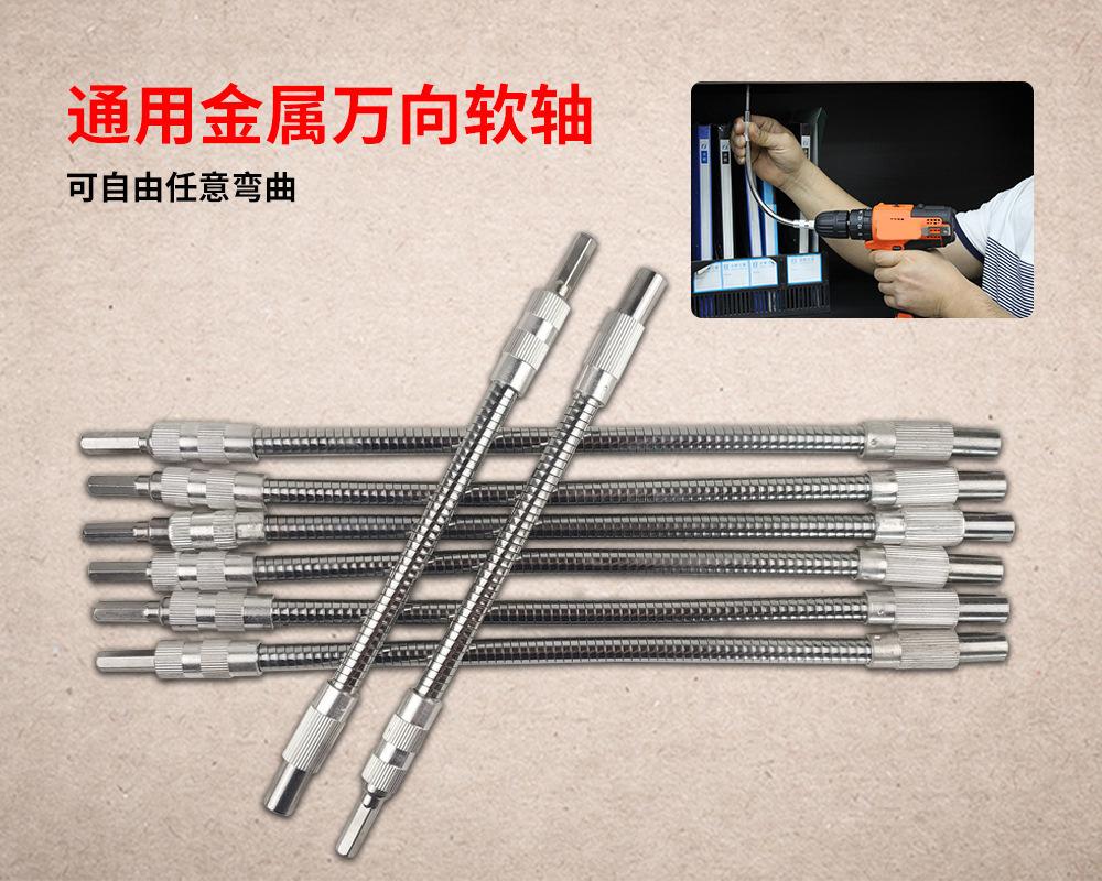 Uso: Este eje flexible se puede utilizar para taladros eléctricos manuales ordinarios tipo mandril, y también se puede utilizar para atornilladores eléctricos (sujeción 1/4). El cabezal del eje flexible se puede equipar con una punta de mango hexagonal (mango 1/4), que es principalmente adecuado para operaciones en cajas de computadora, gabinetes eléctricos, muebles, electrodomésticos, etc. en espacios estrechos y esquinas muertas donde los atornilladores no pueden trabajar.