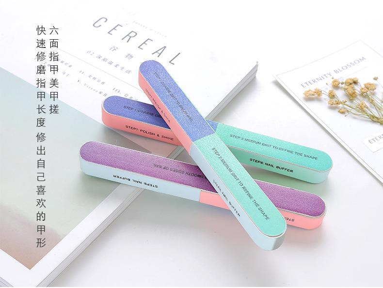 Lima de uñas tira de lijado lima de pulido de seis lados juego de herramientas de manicura limas de doble cara para principiantes molinillo de uñas con impresión