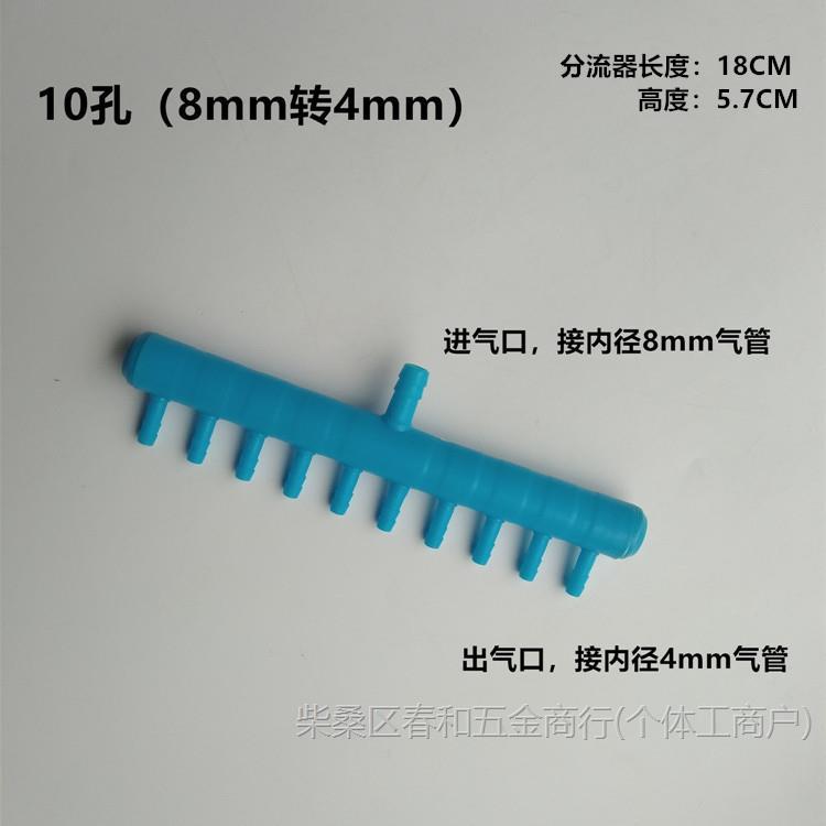 El puerto de entrada del colector de aire tiene varios tamaños como 8 mm, 10 mm, 18 mm, etc., y el puerto de salida tiene tres tamaños: 4 mm, 6 mm, 8 mm. Elija el correspondiente.Diámetro interiormanguera del tamaño se puede conectar firmemente, se nota particularmente que la entrada de 18 mm se puede conectar a una manguera con un diámetro interior de 16 mm-18 mm, y los otros tamaños marcados deben conectarse a una manguera con un diámetro interior del mismo tamaño.