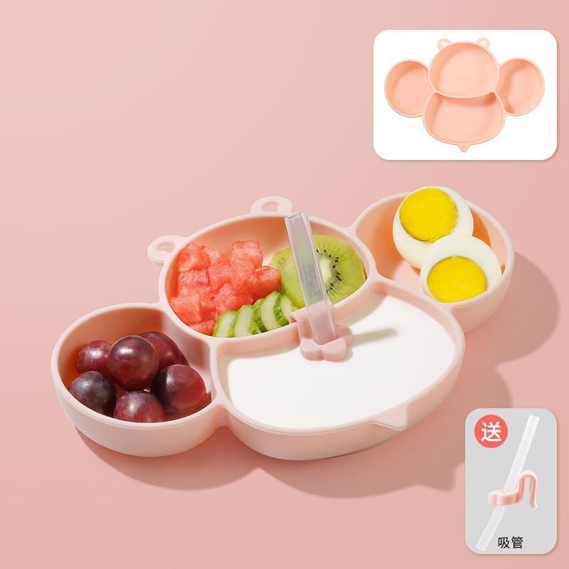 Plato de Succión de Silicona para Bebé Plato Dividido para Jardín de Niños Plato para Alimentación Infantil Tazón con Pajita Plato de Succión