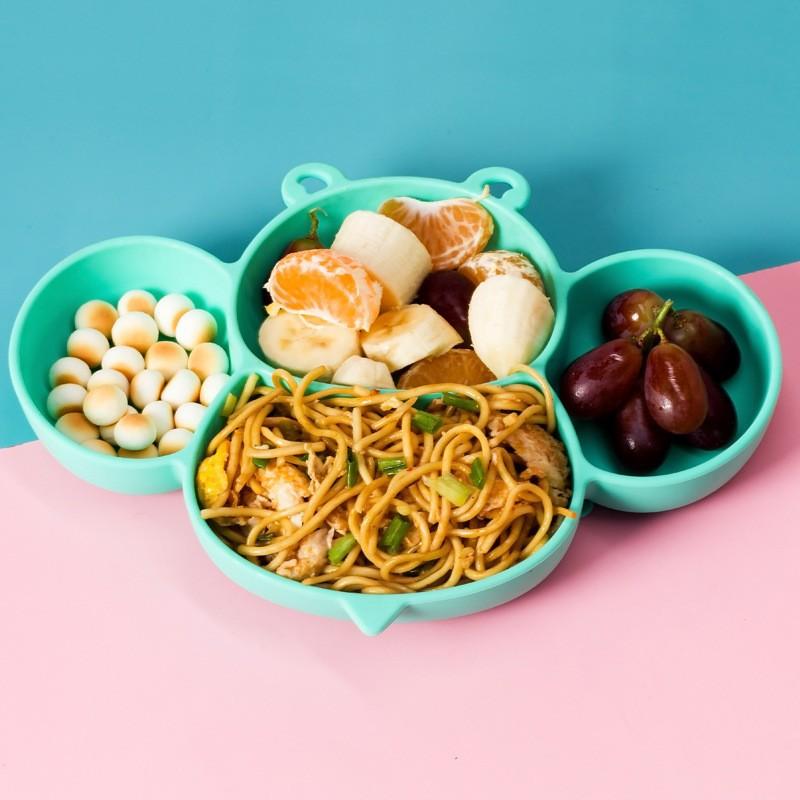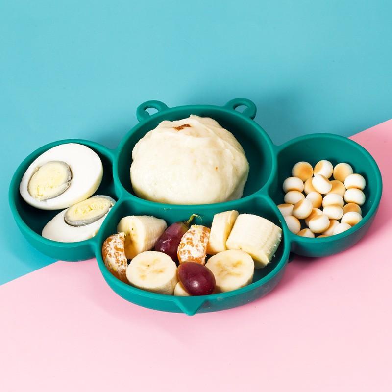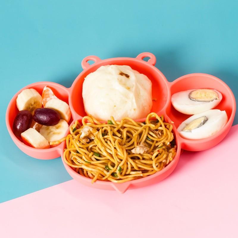 Plato de Cena de Silicona para Niños Abeja Compartimento Dibujos Animados Tazón para Comer Alimentos Tazón con Ventosa Juego de Vajilla de Entrenamiento para Bebés Venta al por Mayor