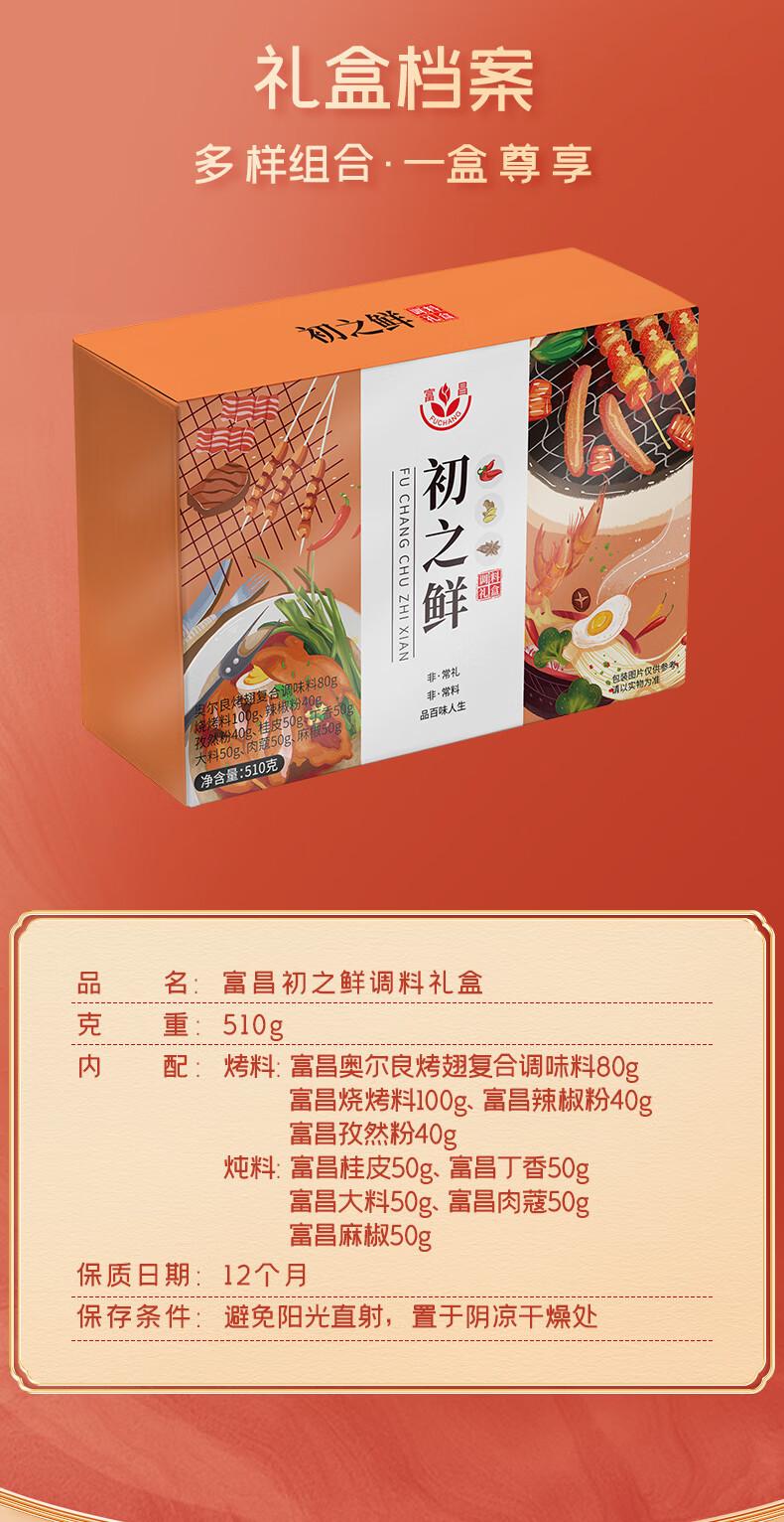 Caja de Regalo de Condimentos Frescos Fuchang Chuzhi 510g Condimento para Barbacoa de Canela Polvo de Comino Nuez Moscada Varios Condimentos Combinación Caja de Regalo