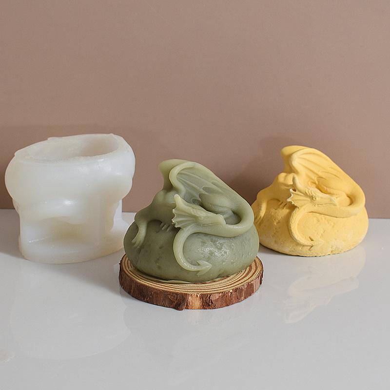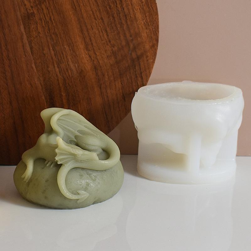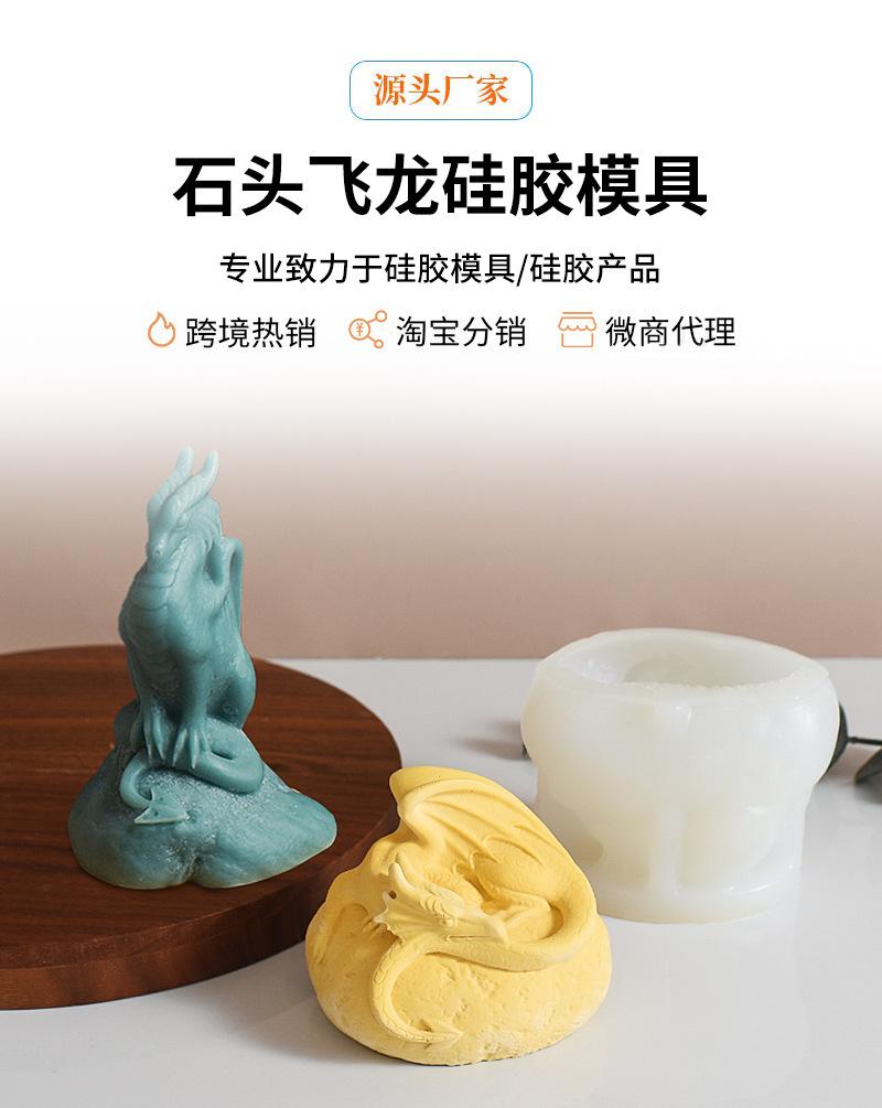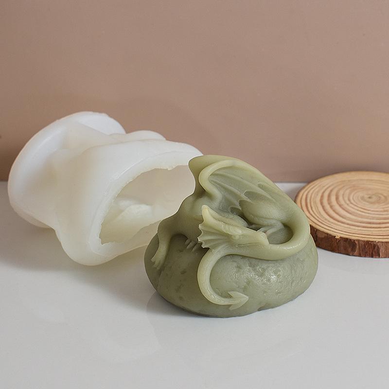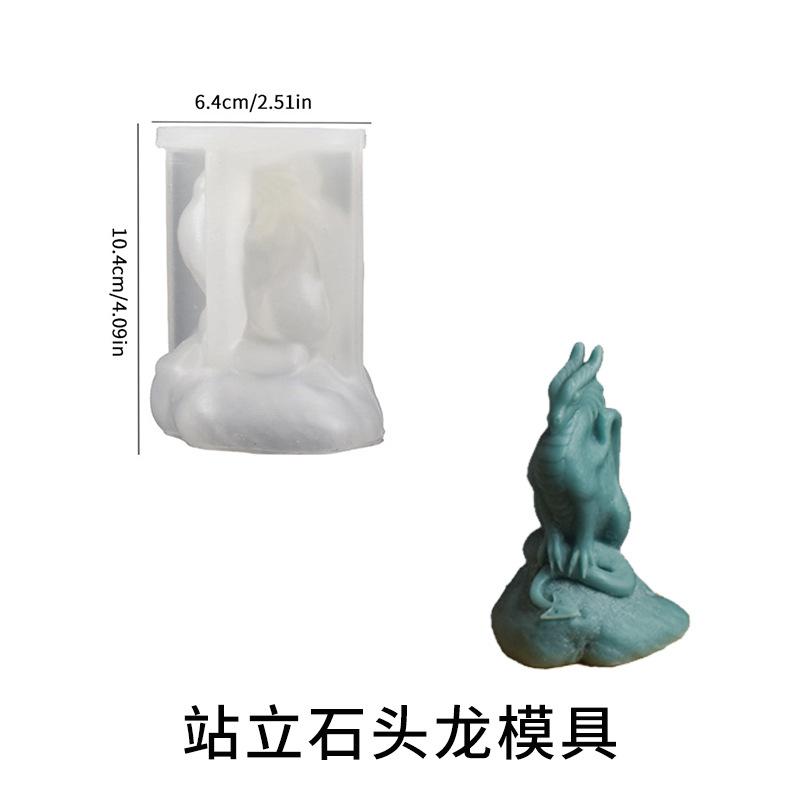 Piedra Dragón Volador Molde de Silicona para Vela de Aromaterapia de Dragón Epoxi DIY Pterodáctilo Sentado Ornamento de Yeso Soporte de Exhibición Molde de Resina