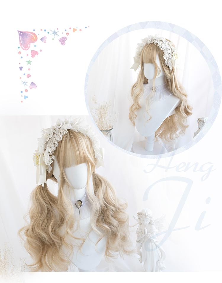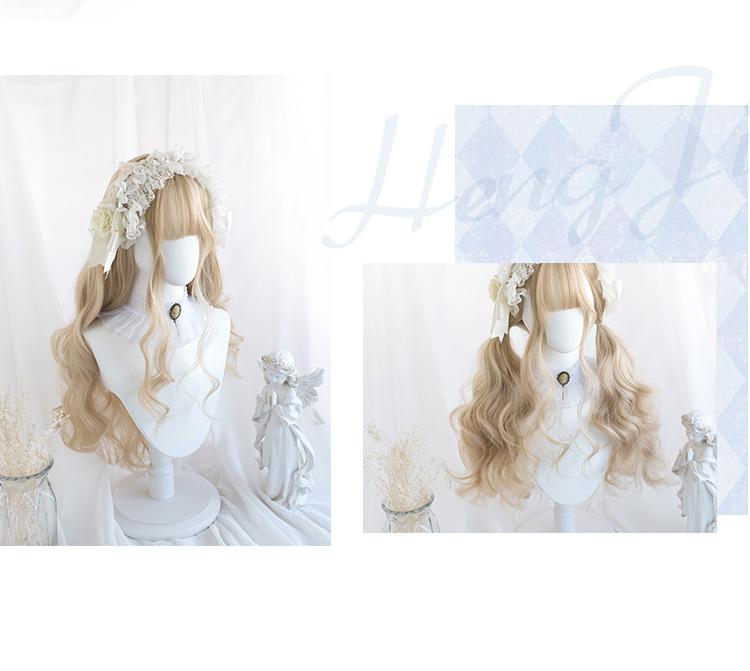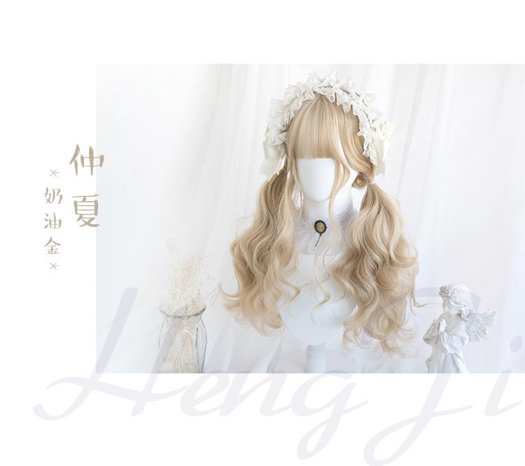 Peluca al por mayor femenina Lolita cabello largo rizado "Midsummer" oro crema doble coleta femenina Lolita Red lo cabello falso