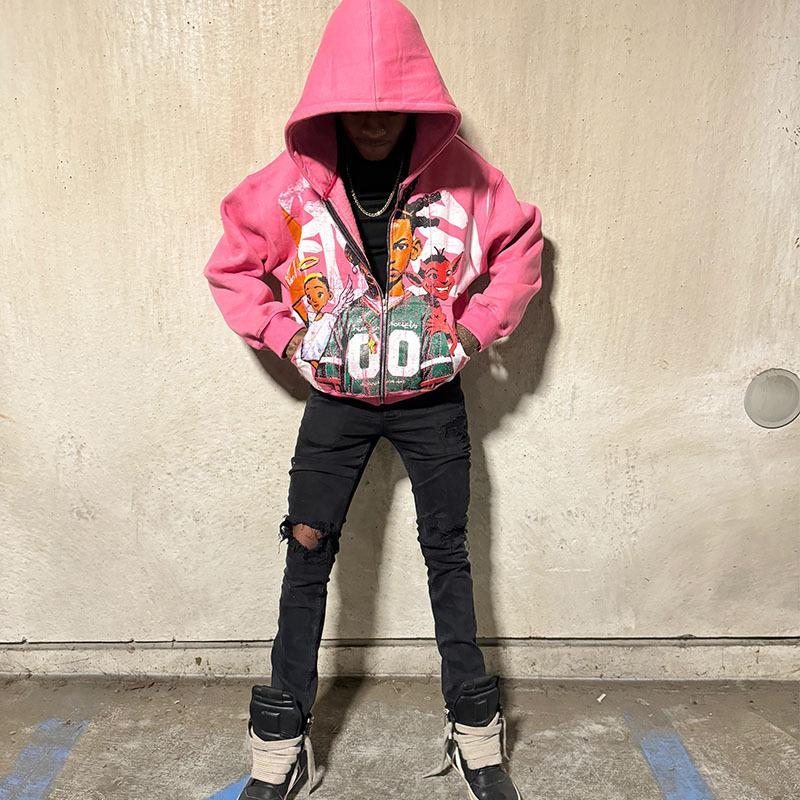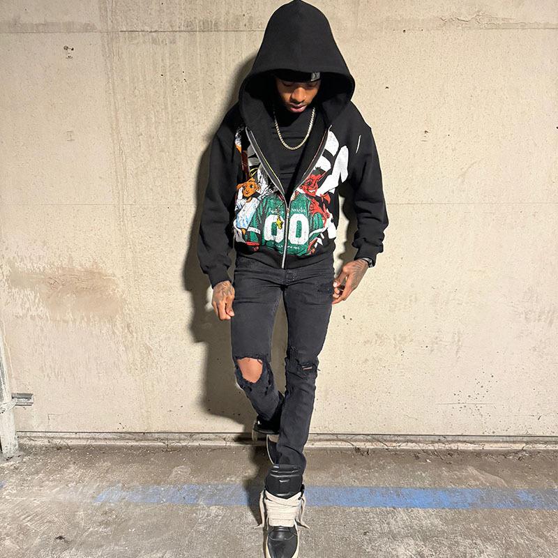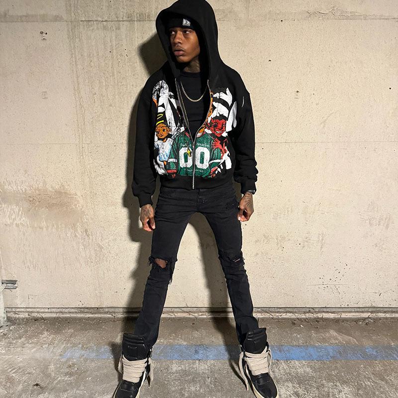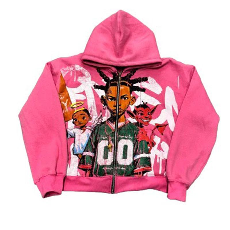 Compra Sudaderas con cremallera modernas estampadas de moda hip-hop callejera europea y americana 2025 para hombres y mujeres Ropa transfronteriza al por mayor en Joom.pro