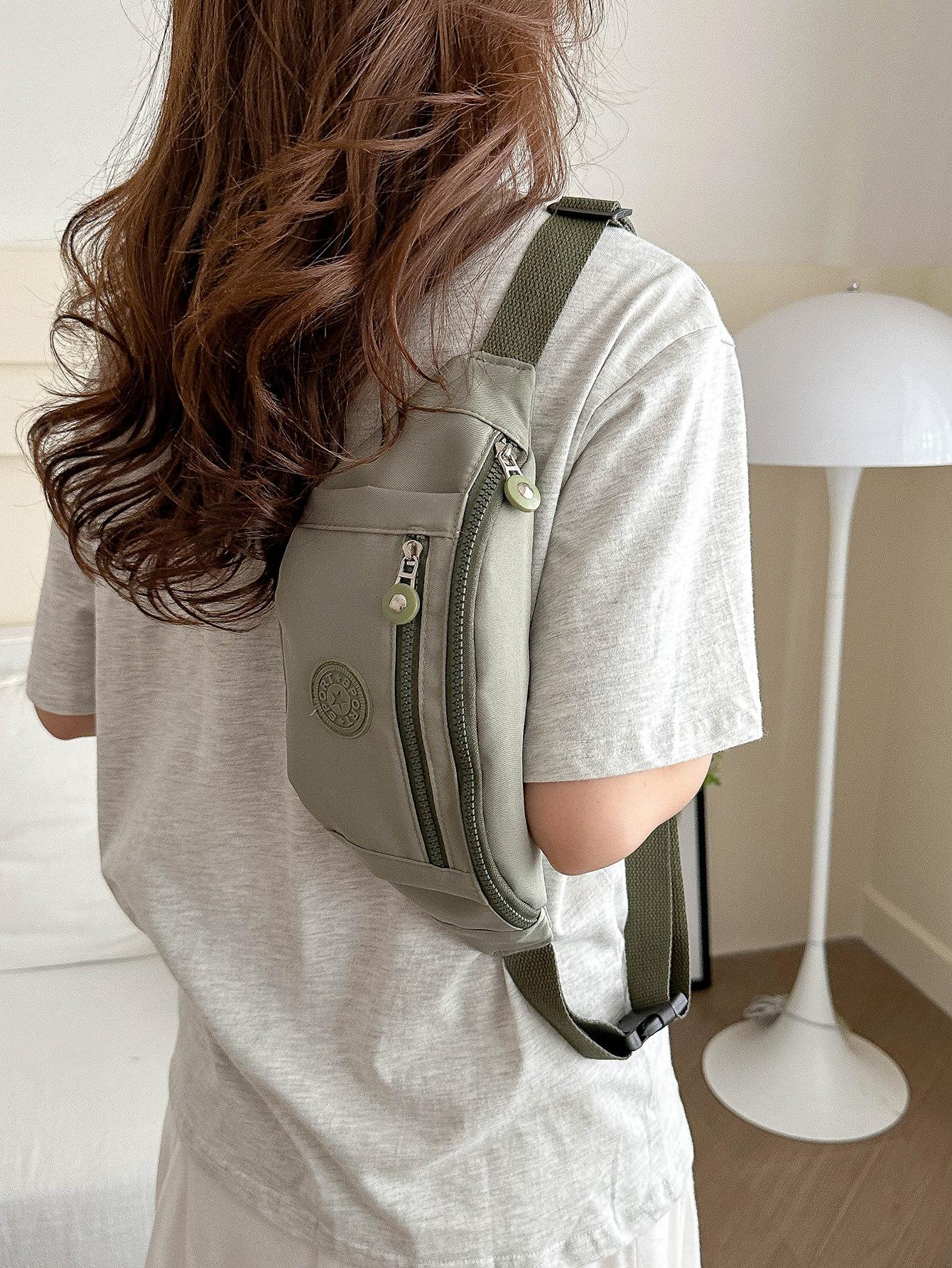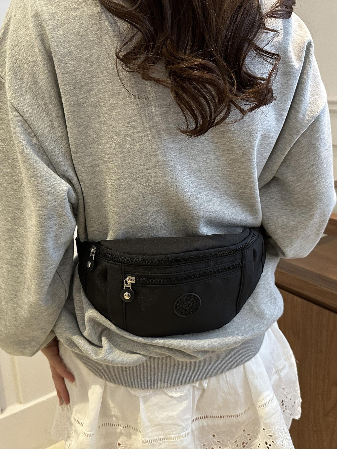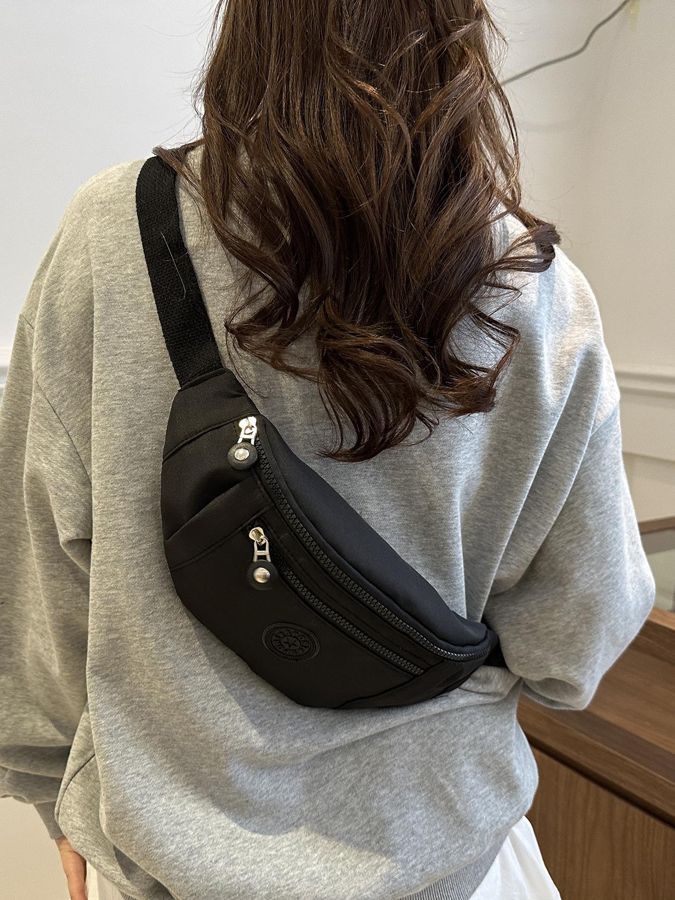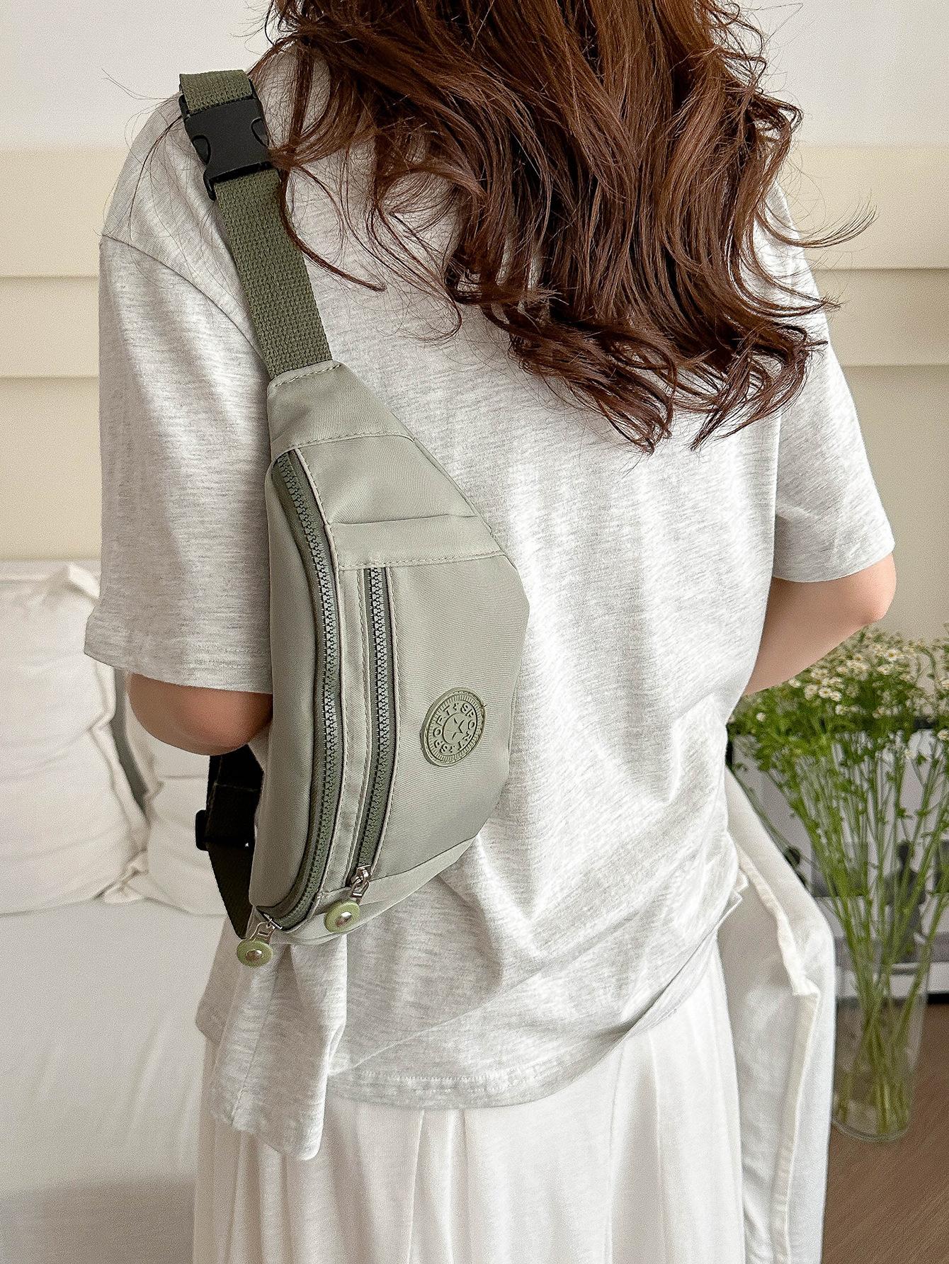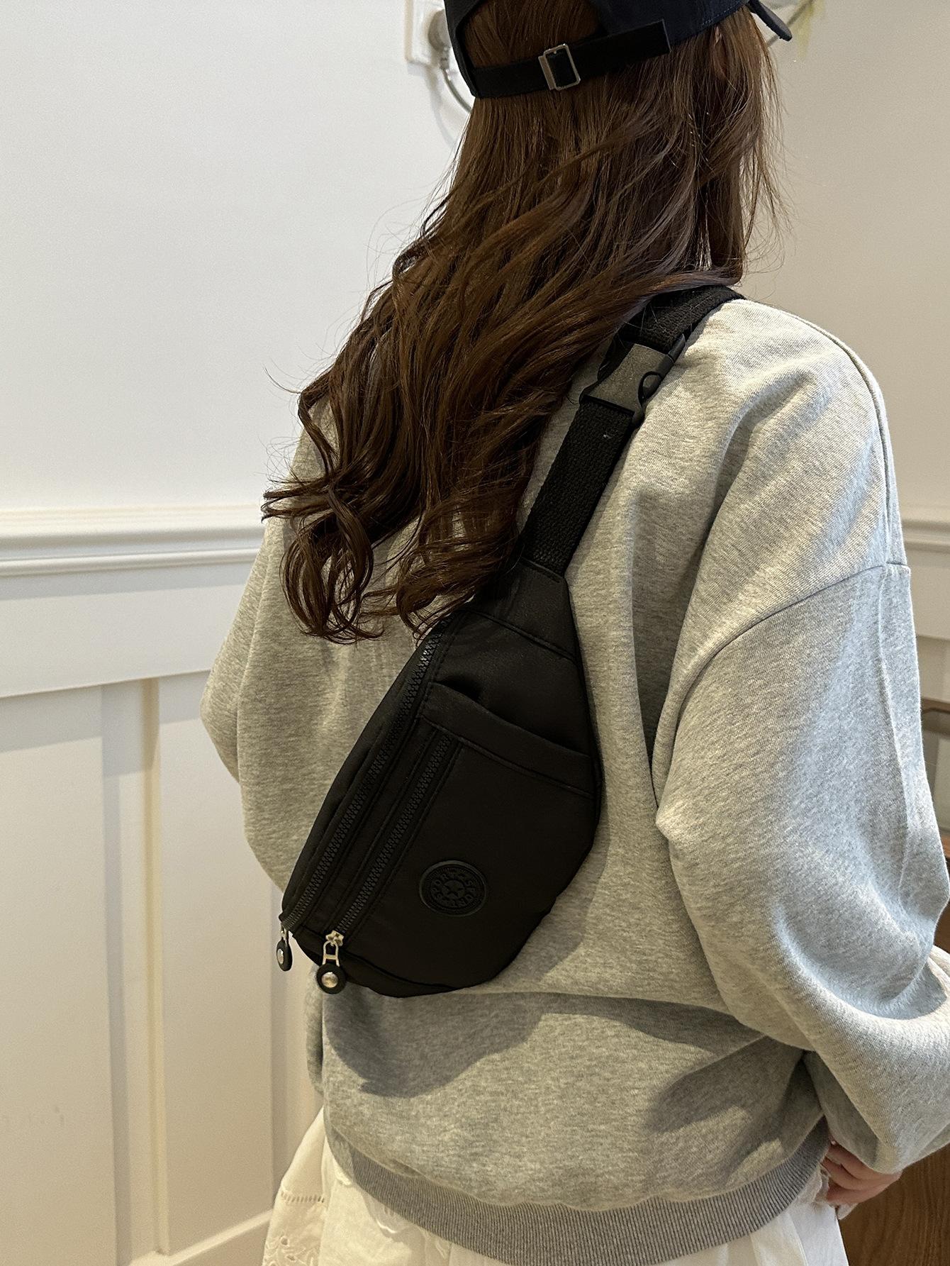 Moda Casual para Mujer para Exterior Color Sólido Personalidad Versión Coreana Trendy Multicapa Viaje Conveniente Bandolera Hombro Pecho Riñonera
