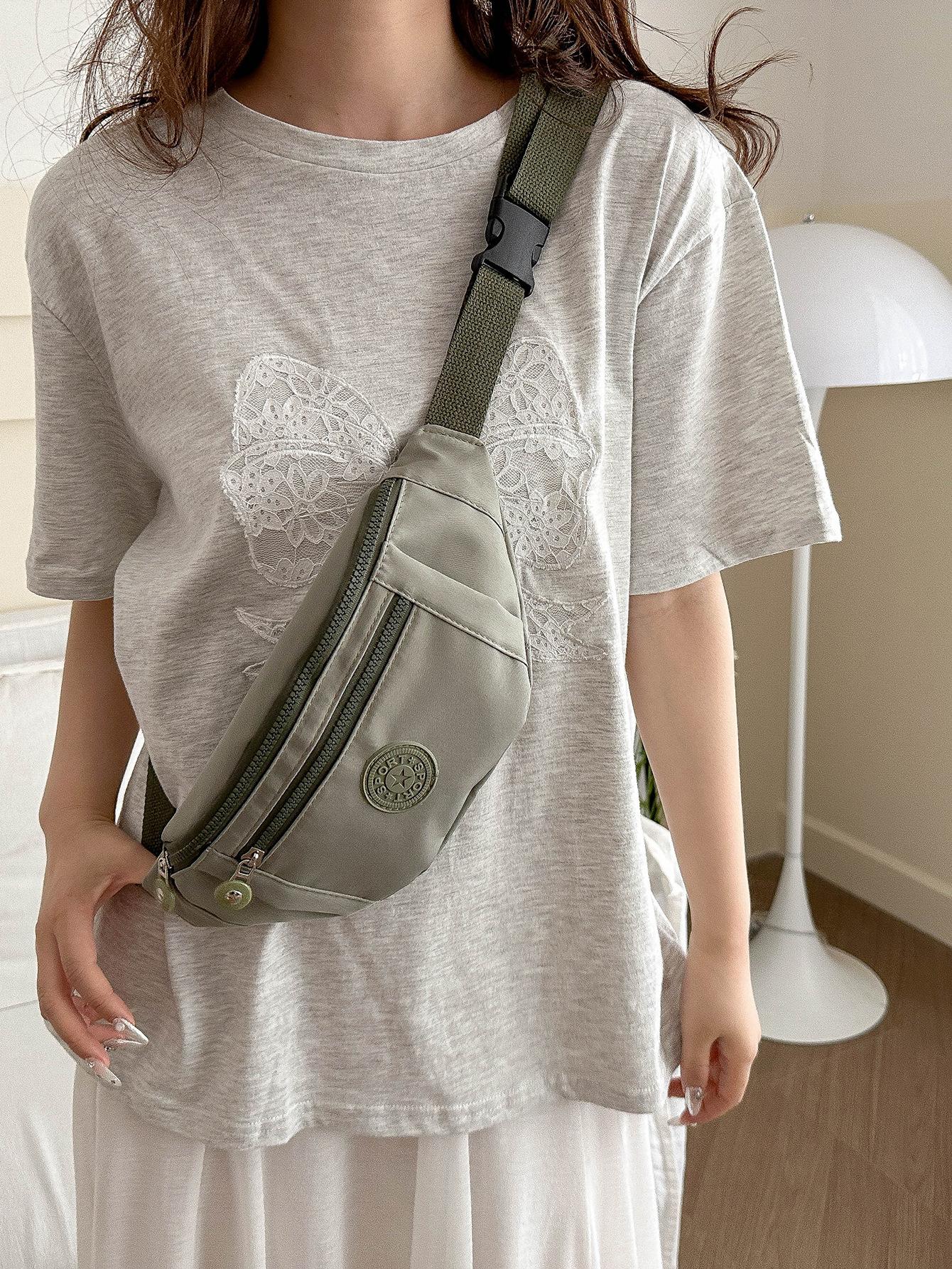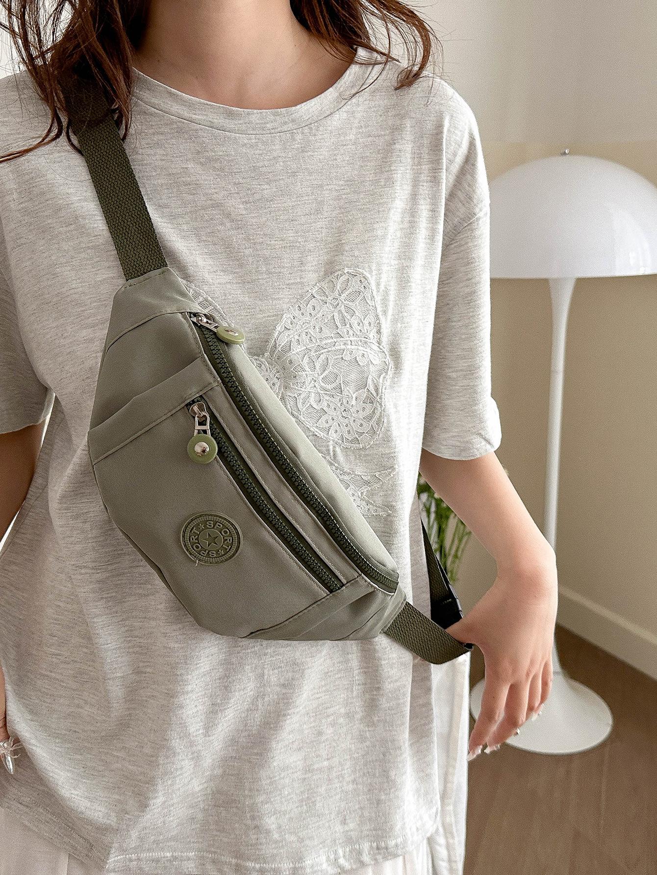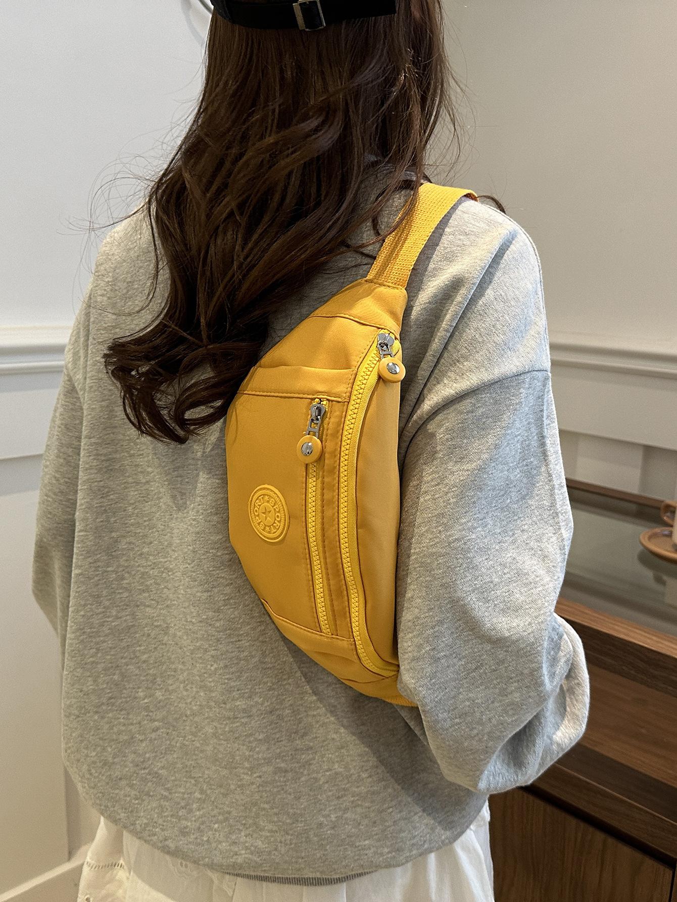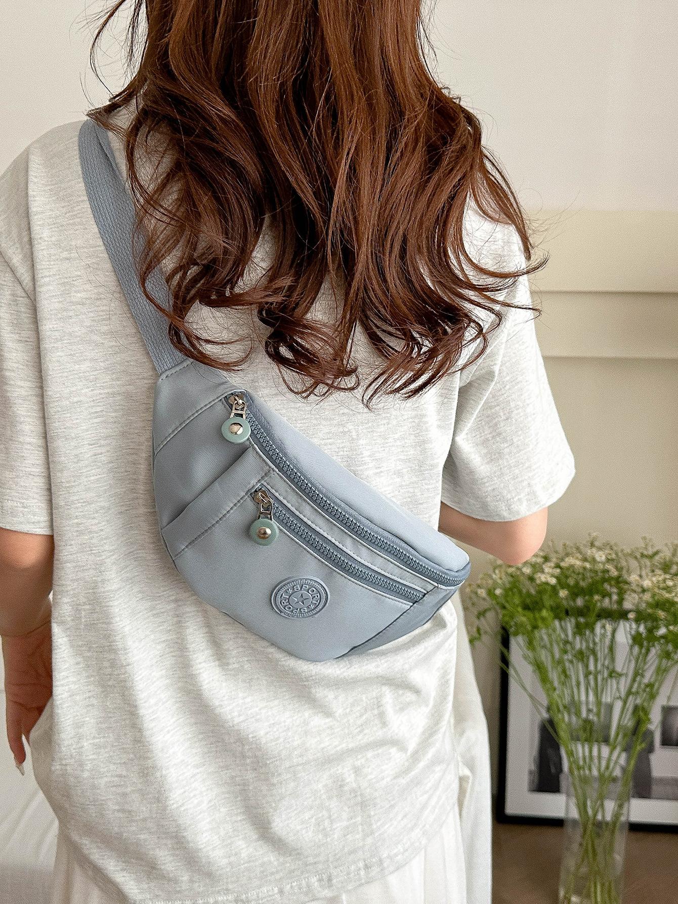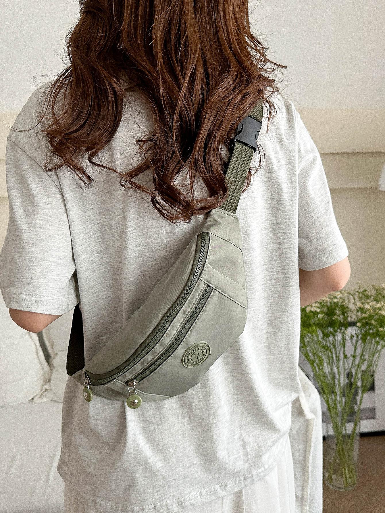 Moda Casual para Mujer para Exterior Color Sólido Personalidad Versión Coreana Trendy Multicapa Viaje Conveniente Bandolera Hombro Pecho Riñonera