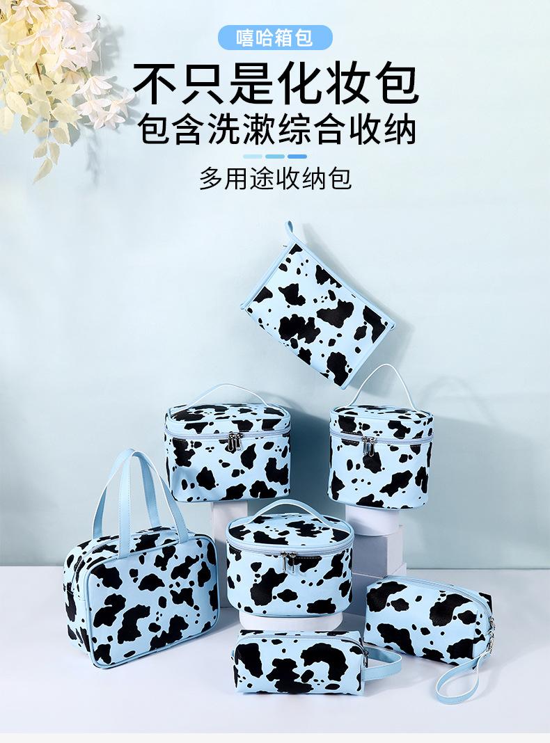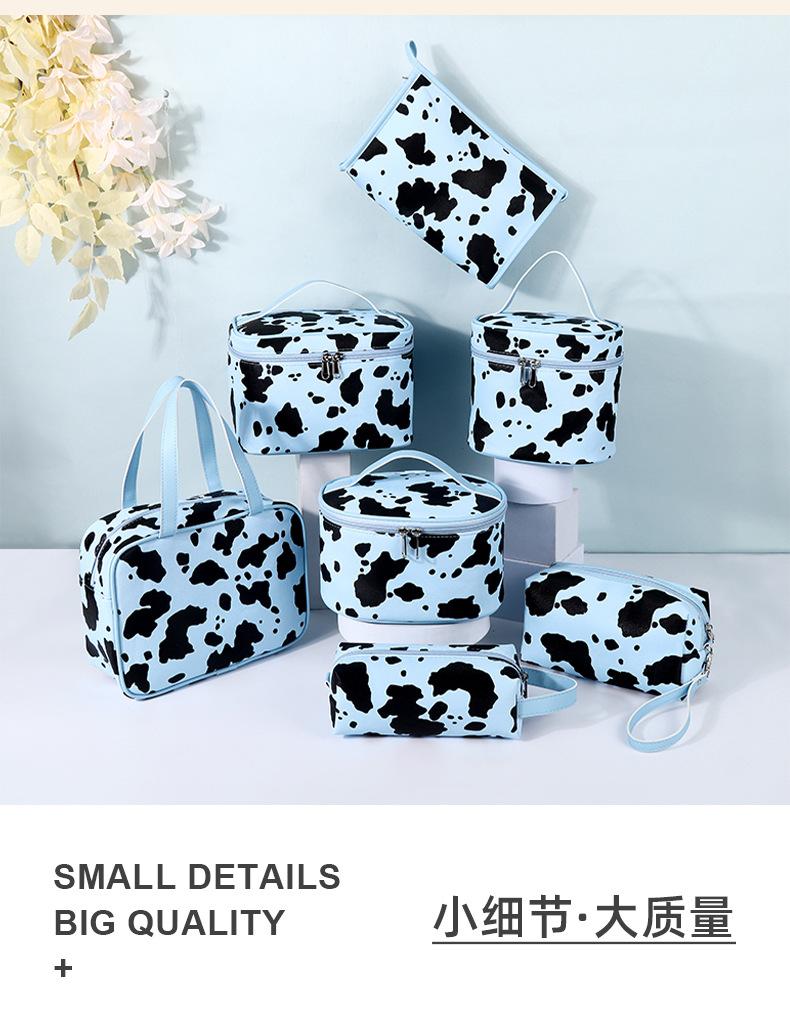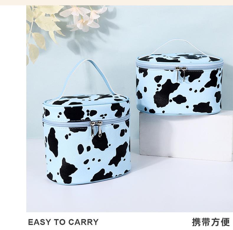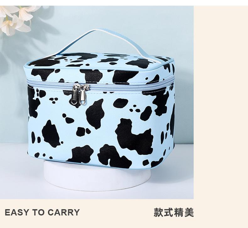 Bolsa Cosmética de Moda Gran Capacidad Estampado de Vaca Azul Bolsa de Almacenamiento de Cosméticos Portátil Viaje Bolsa de Aseo Venta al Mayoreo