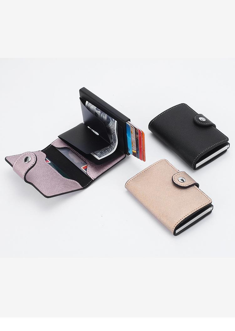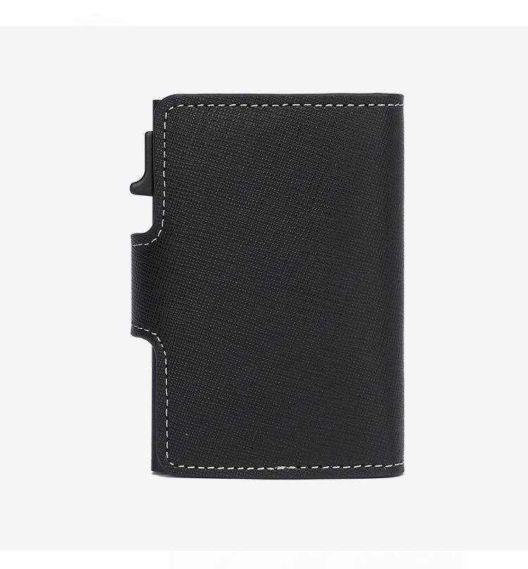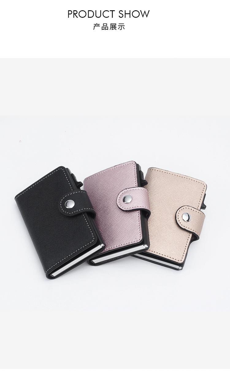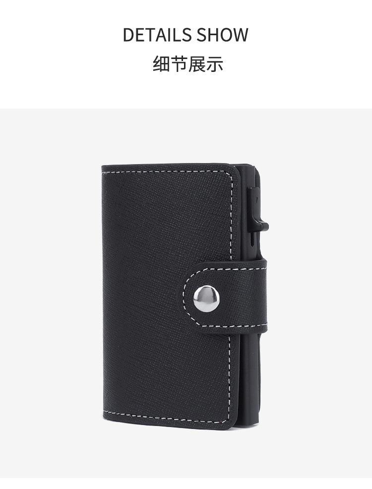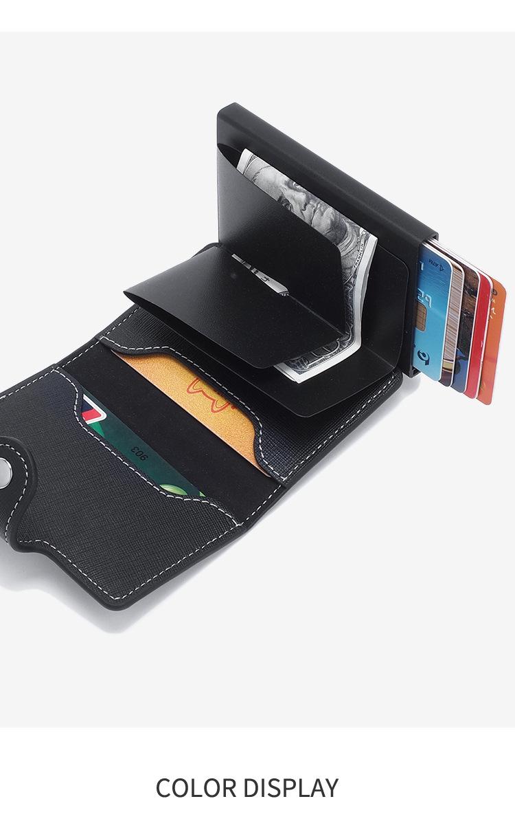 Nuevo tarjetero de cuero con bloqueo RFID de aluminio, antifurto, cepillo automático, tipo tarjeta elástico, aleación de aluminio, billetera para múltiples tarjetas para hombre