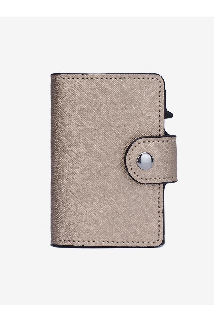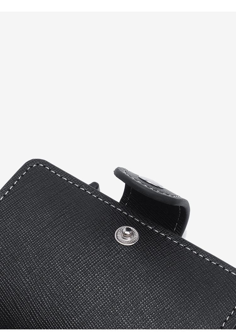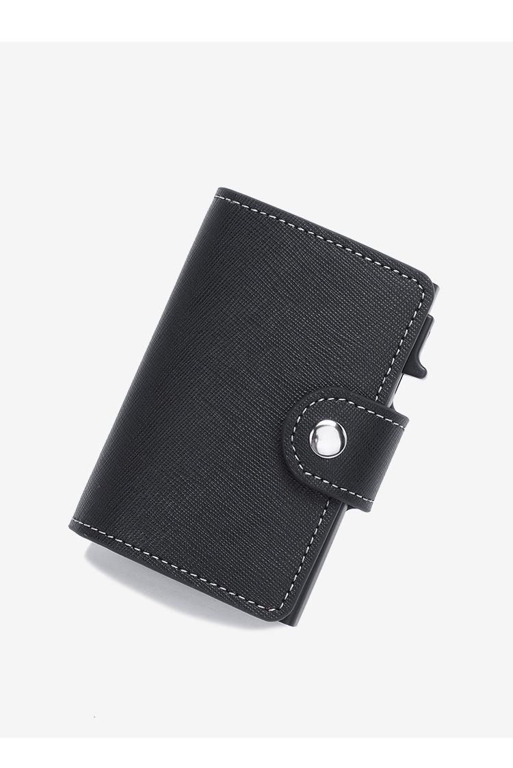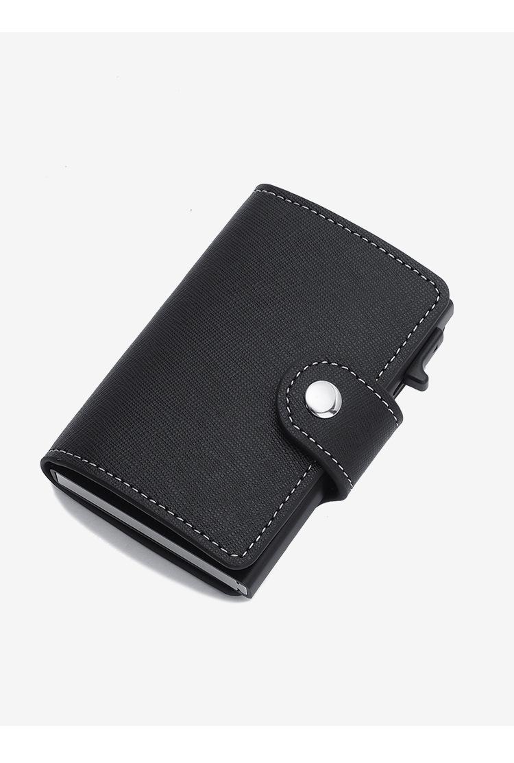 Nuevo tarjetero de cuero con bloqueo RFID de aluminio, antifurto, cepillo automático, tipo tarjeta elástico, aleación de aluminio, billetera para múltiples tarjetas para hombre