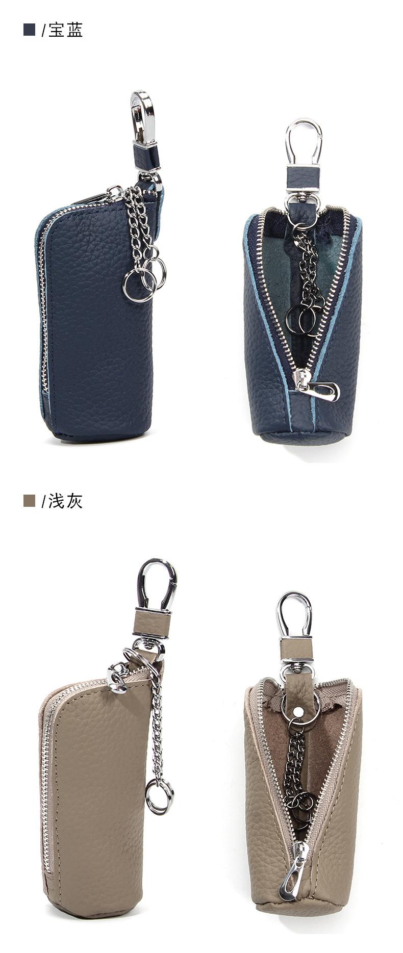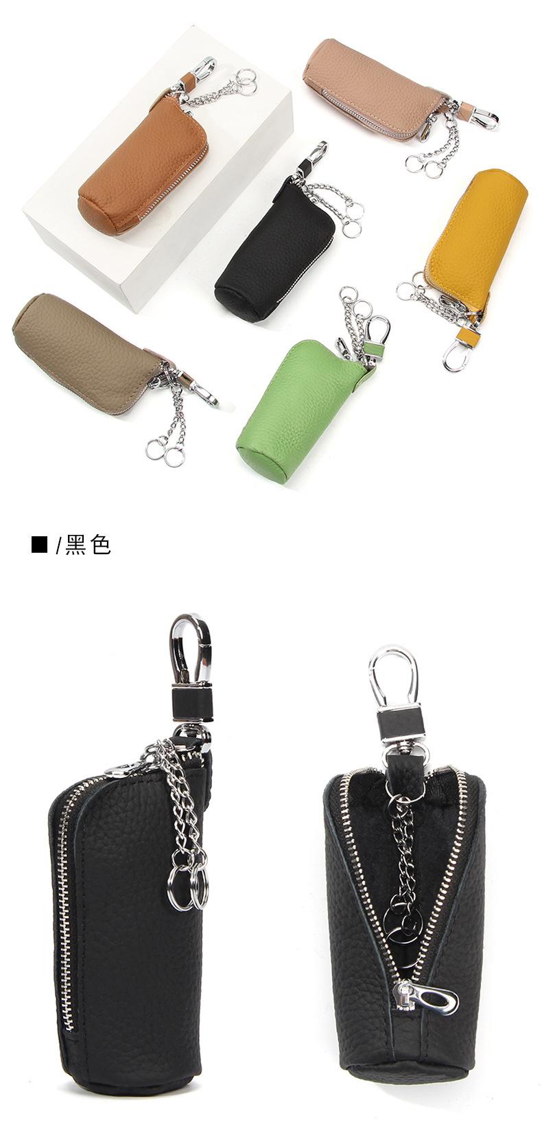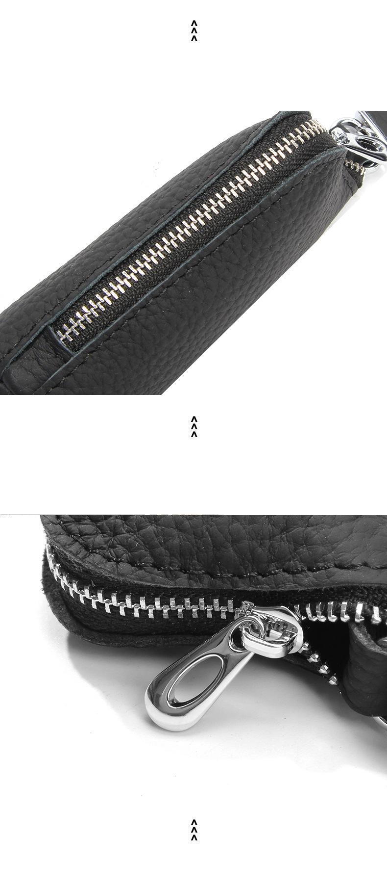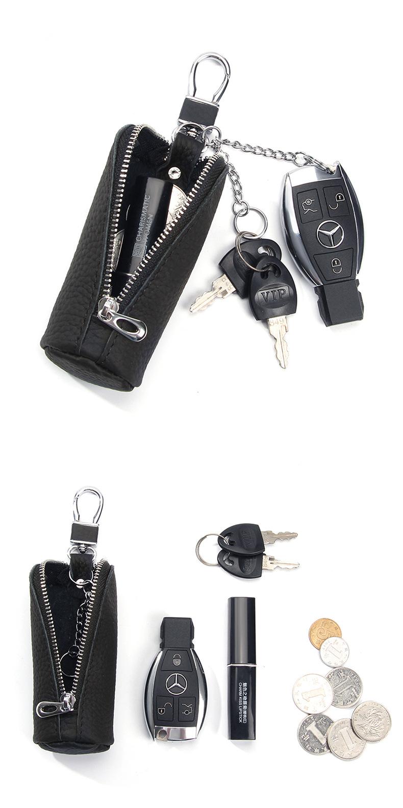 Bolsa para Llaves de Coche de Piel de Vaca de Primera Capa, Bolsa de Almacenamiento de Llaves de Cuero Genuino, Bolsa para Llaves con Cremallera Colgante de Cintura Unisex a la Moda