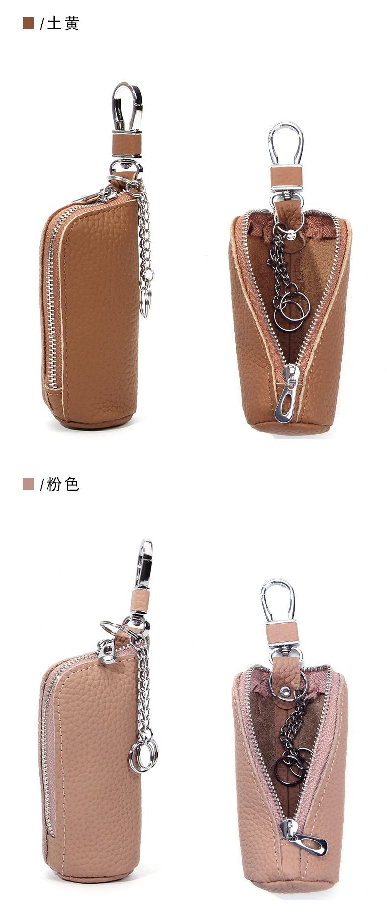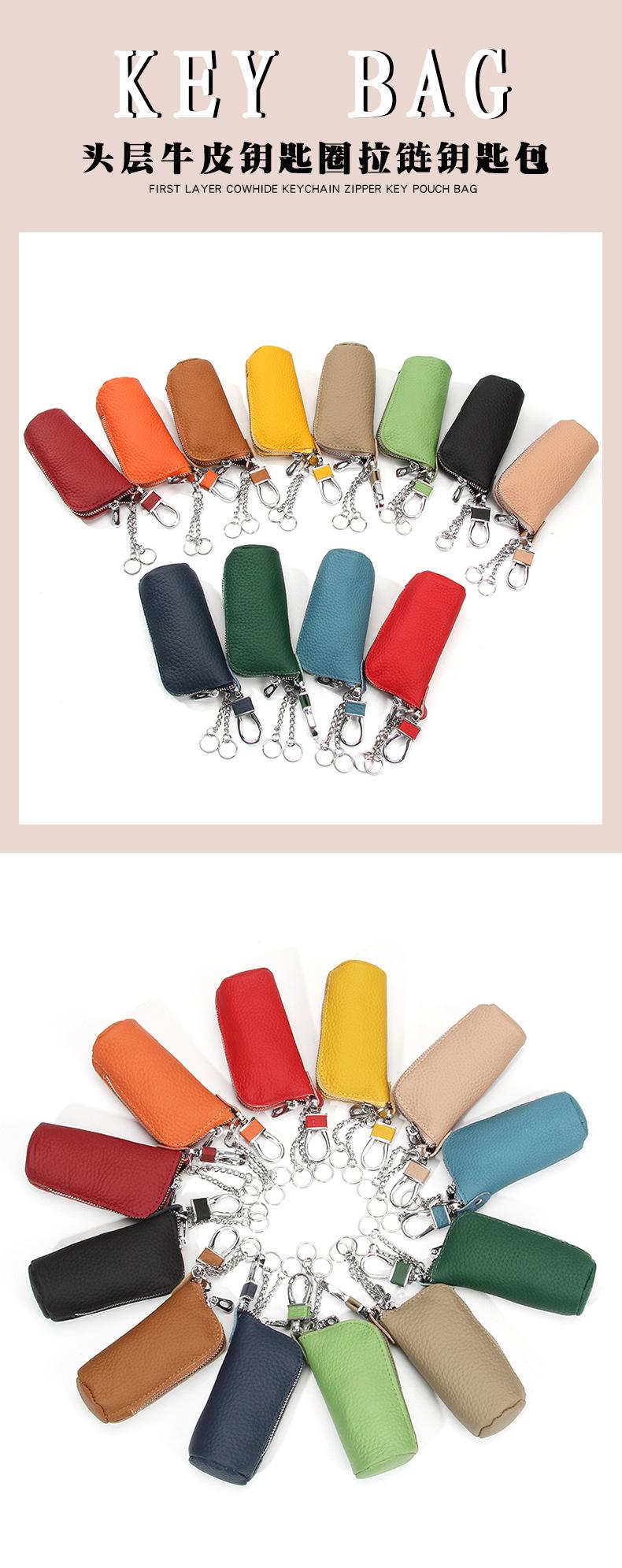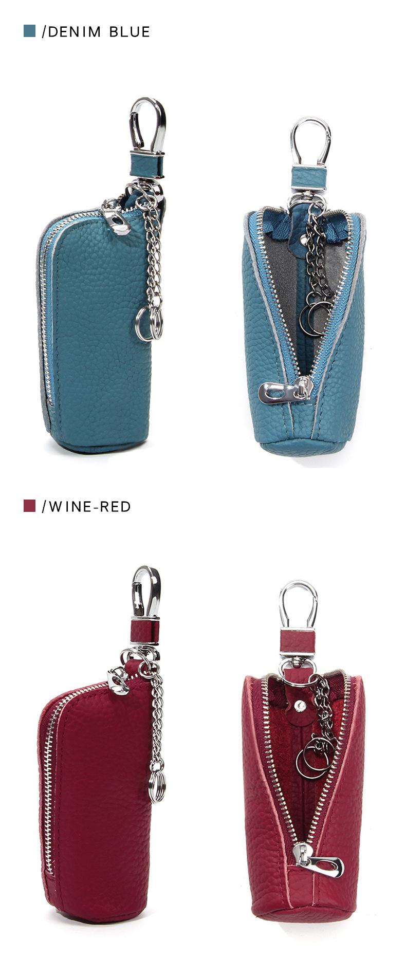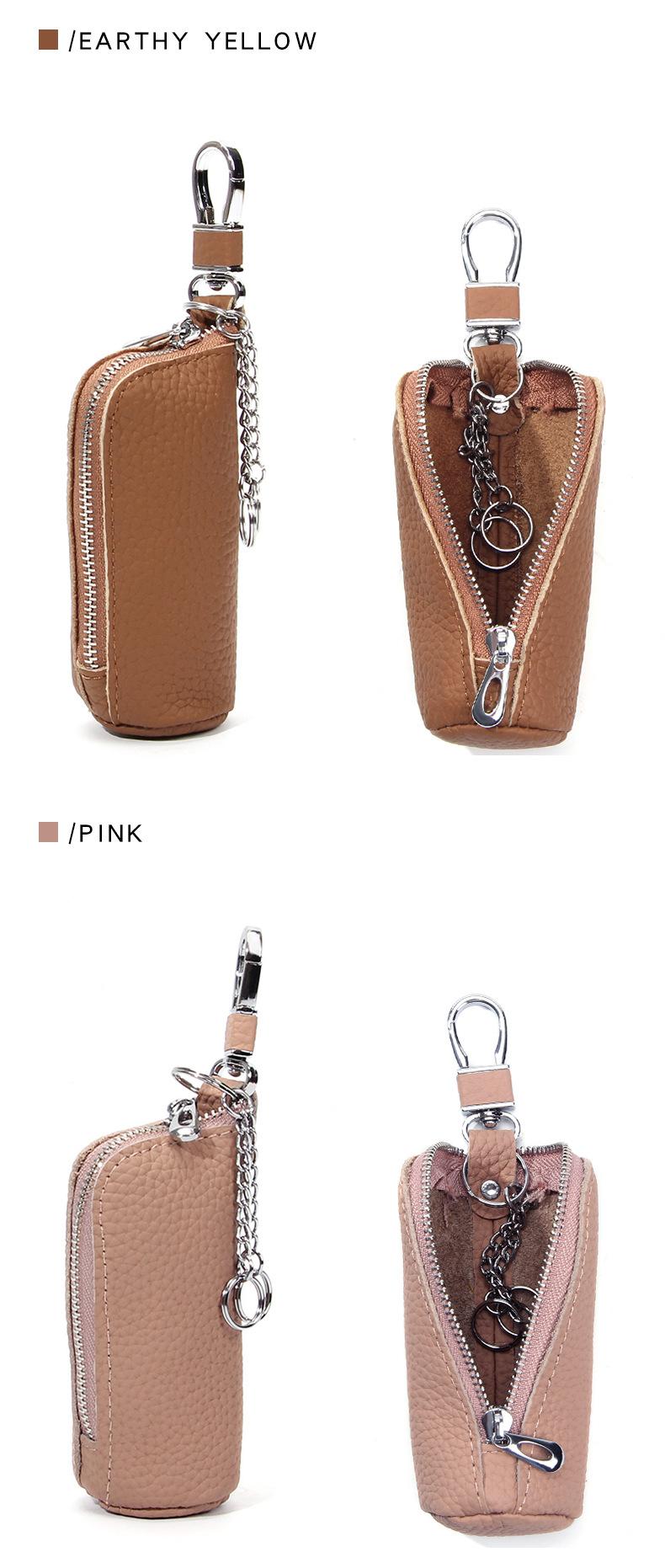 Bolsa para Llaves de Coche de Piel de Vaca de Primera Capa, Bolsa de Almacenamiento de Llaves de Cuero Genuino, Bolsa para Llaves con Cremallera Colgante de Cintura Unisex a la Moda