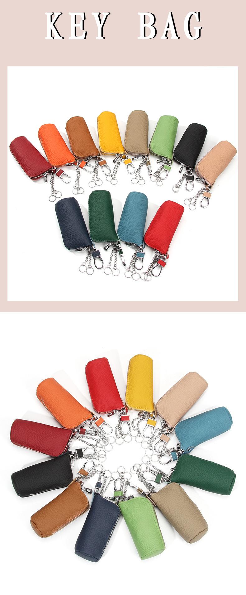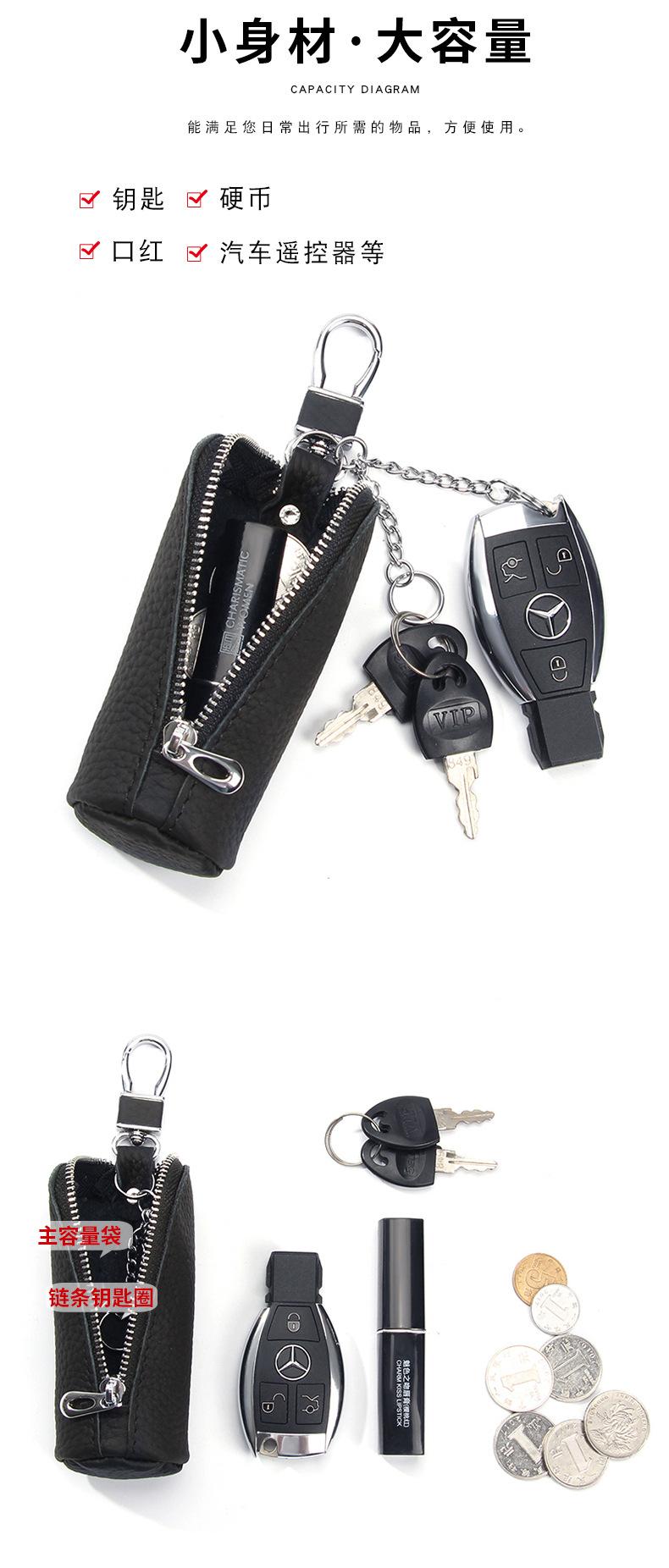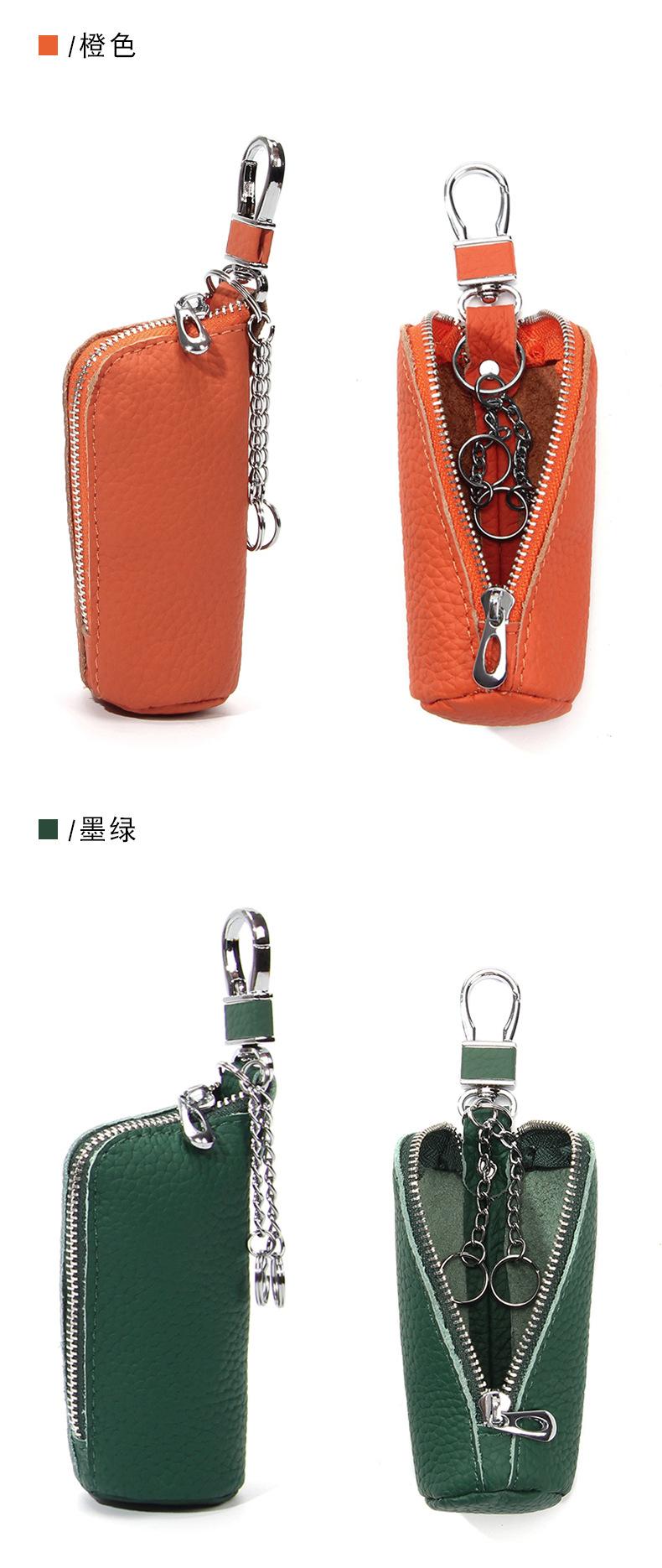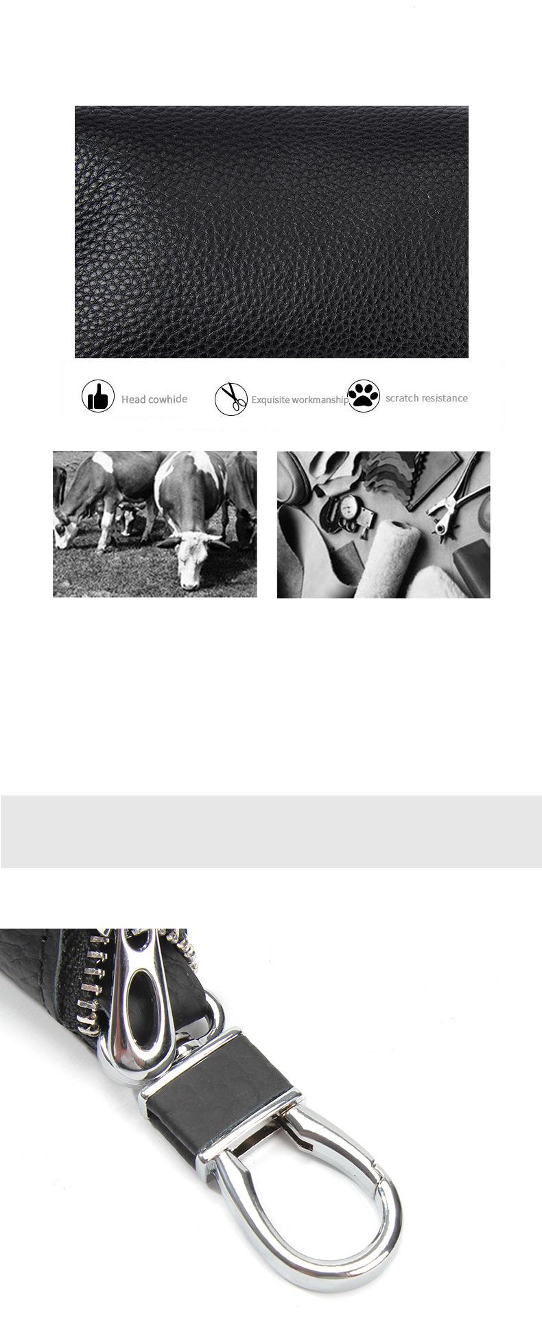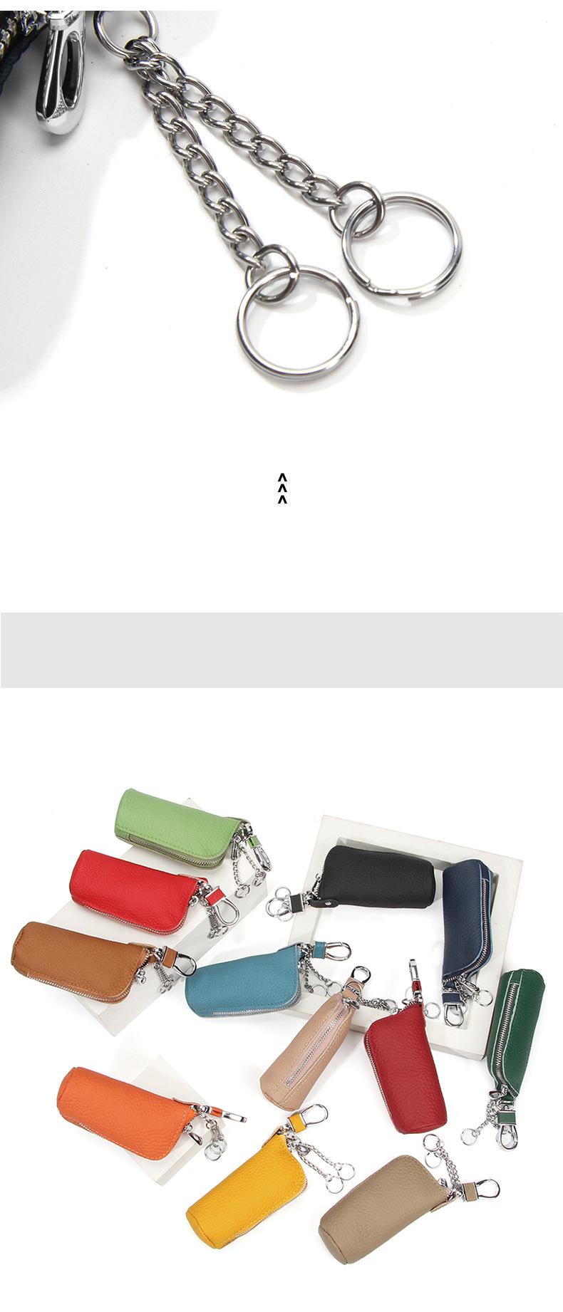 Bolsa para Llaves de Coche de Piel de Vaca de Primera Capa, Bolsa de Almacenamiento de Llaves de Cuero Genuino, Bolsa para Llaves con Cremallera Colgante de Cintura Unisex a la Moda