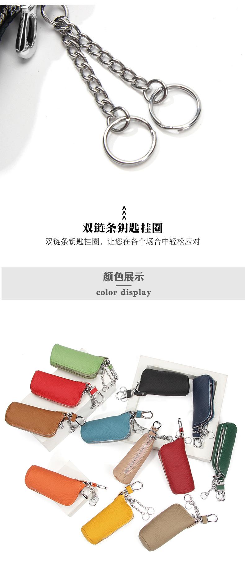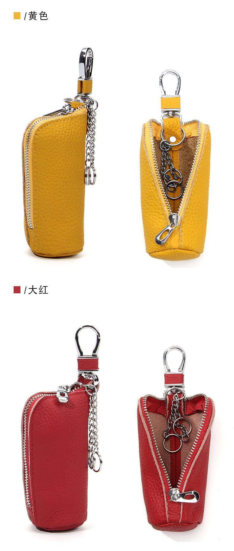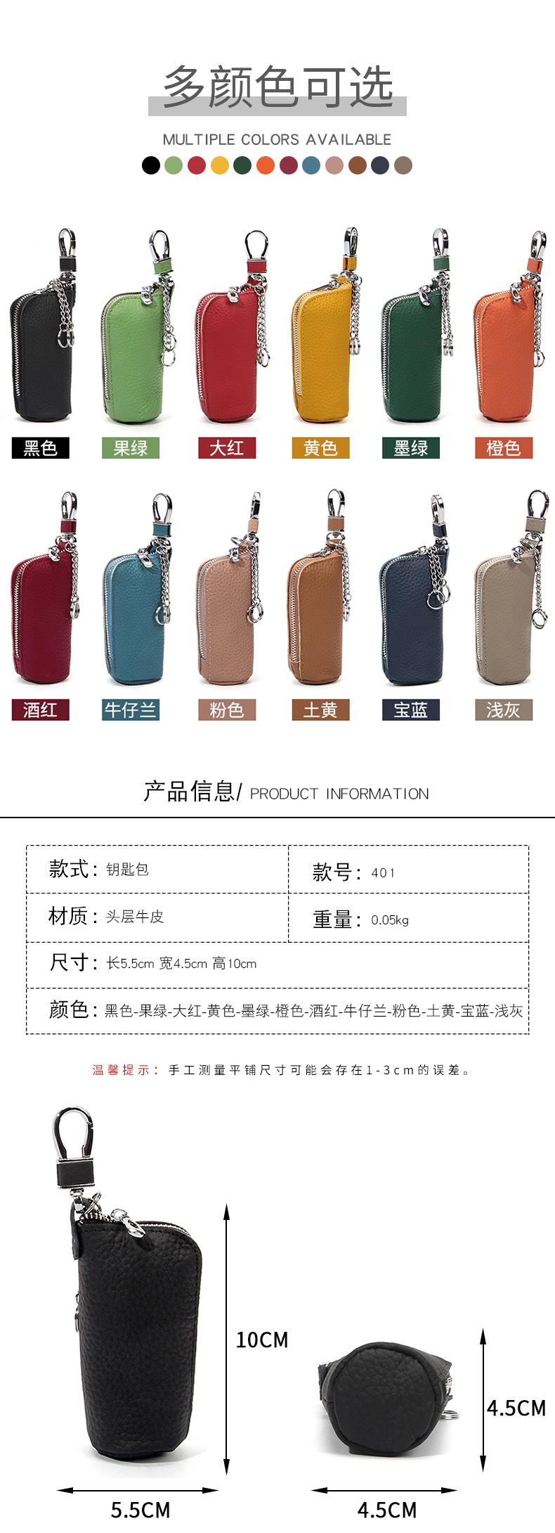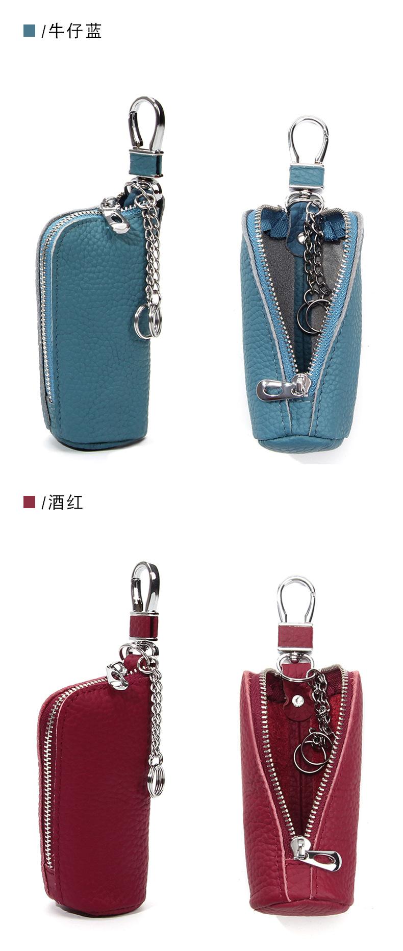 Bolsa para Llaves de Coche de Piel de Vaca de Primera Capa, Bolsa de Almacenamiento de Llaves de Cuero Genuino, Bolsa para Llaves con Cremallera Colgante de Cintura Unisex a la Moda