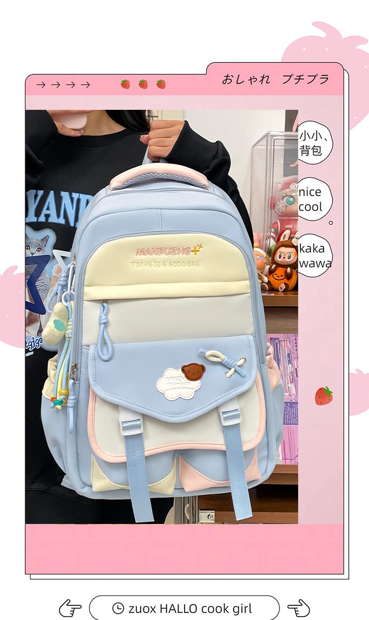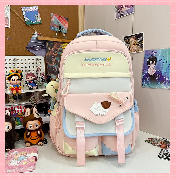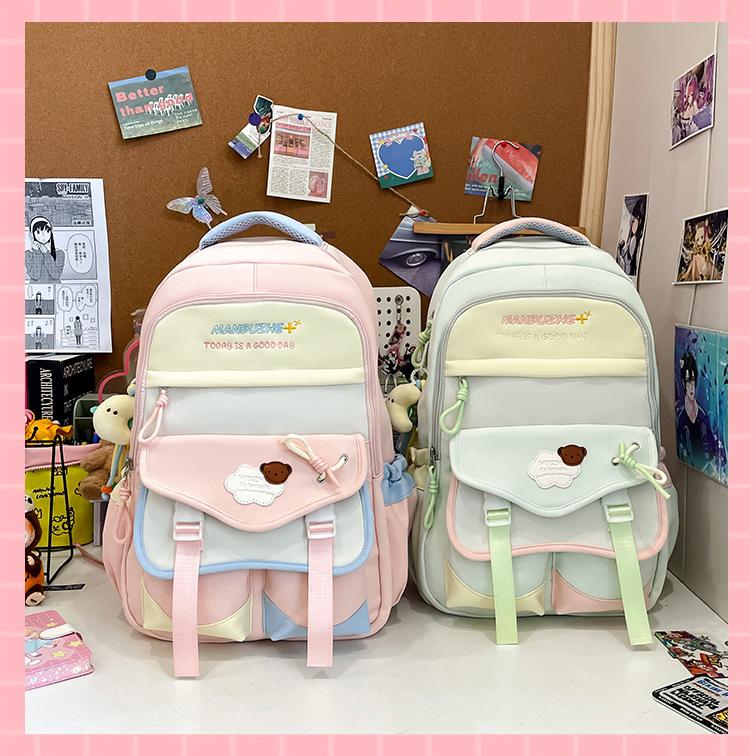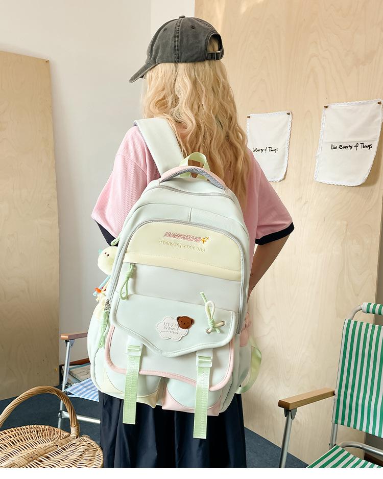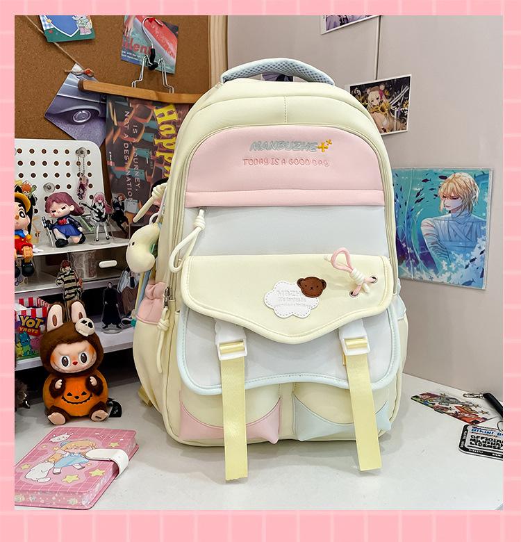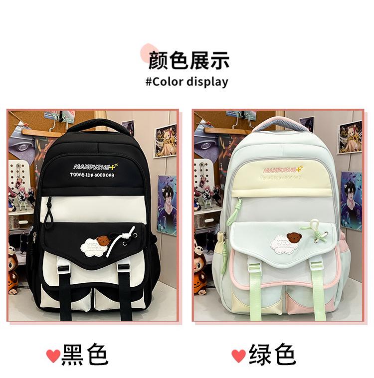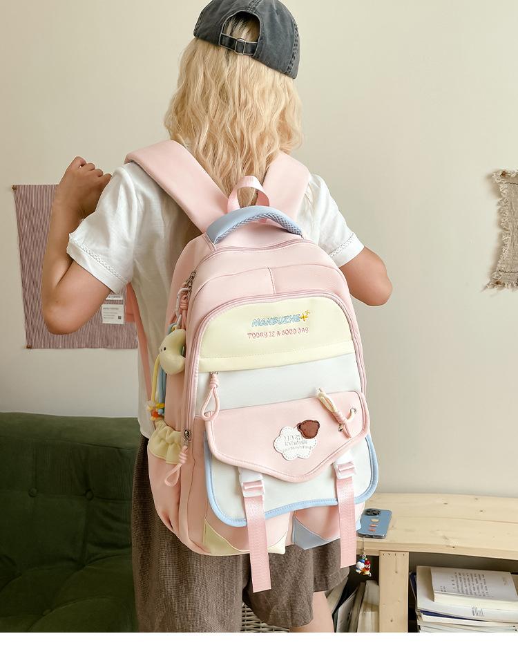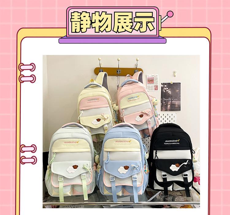 2025 Nueva Mochila Linda para Dolor Femenina Estilo Dibujos Animados Mochila Gran Capacidad Color Contraste Mochila Estudiante de Secundaria y Preparatoria Mochila Escolar