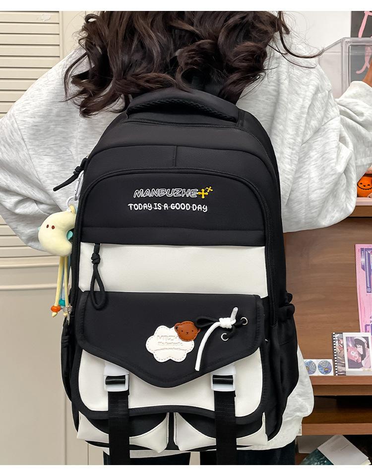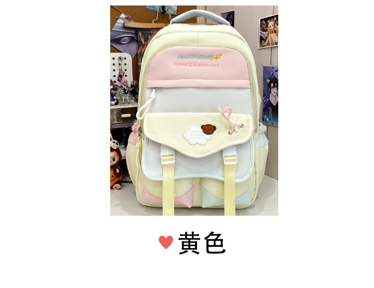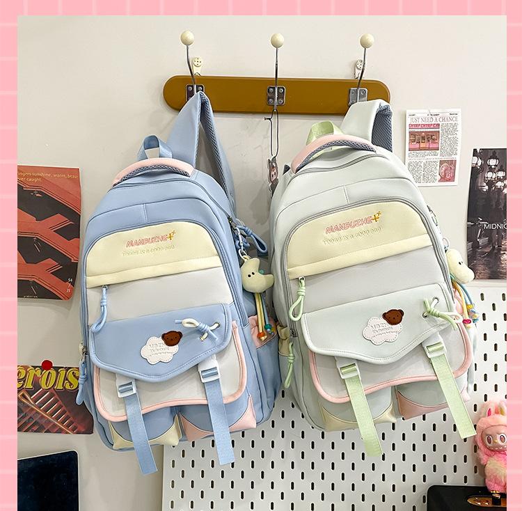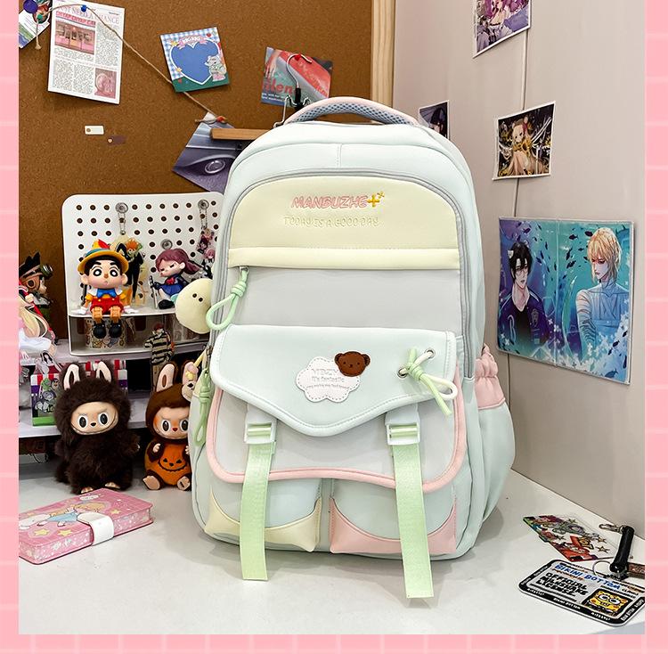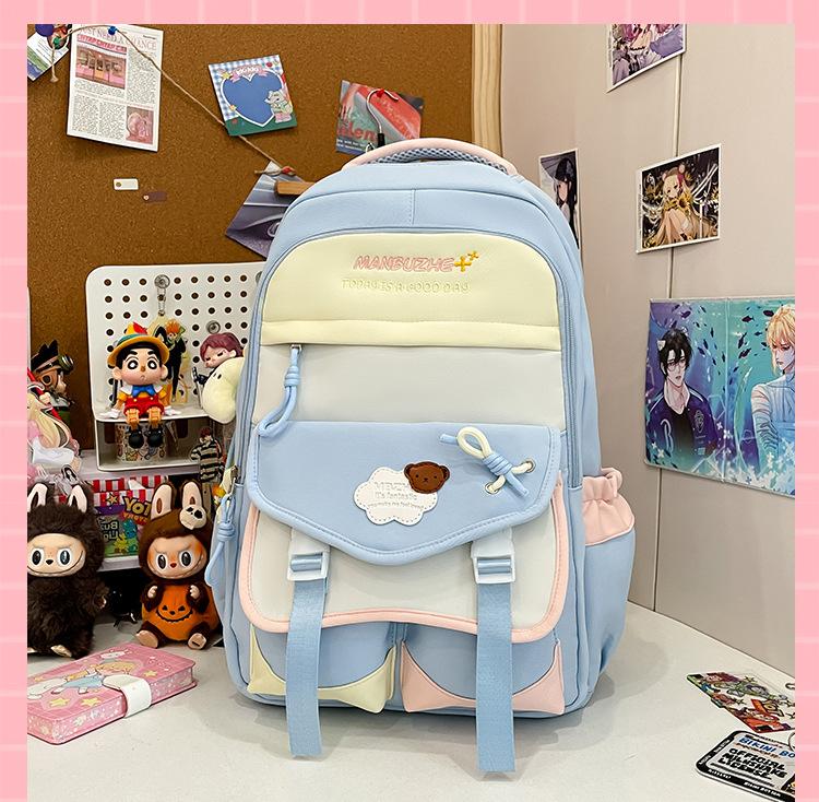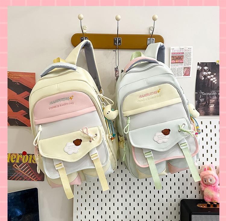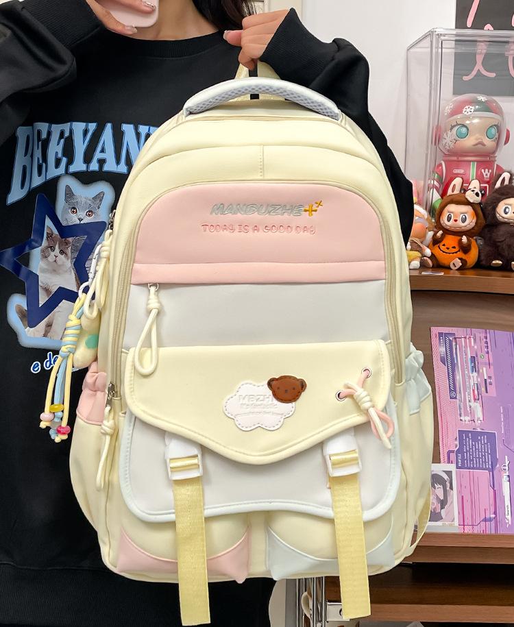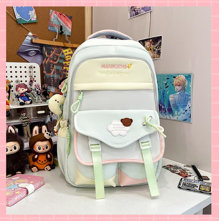 2025 Nueva Mochila Linda para Dolor Femenina Estilo Dibujos Animados Mochila Gran Capacidad Color Contraste Mochila Estudiante de Secundaria y Preparatoria Mochila Escolar