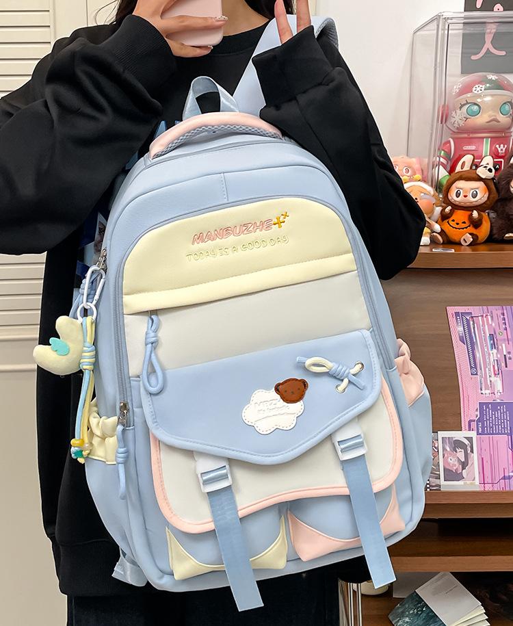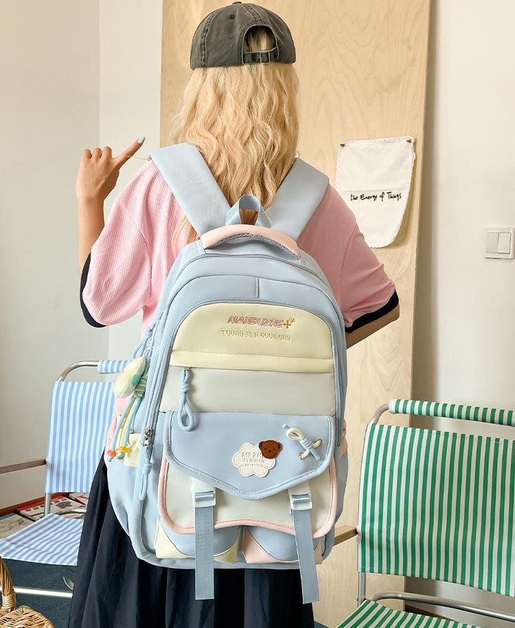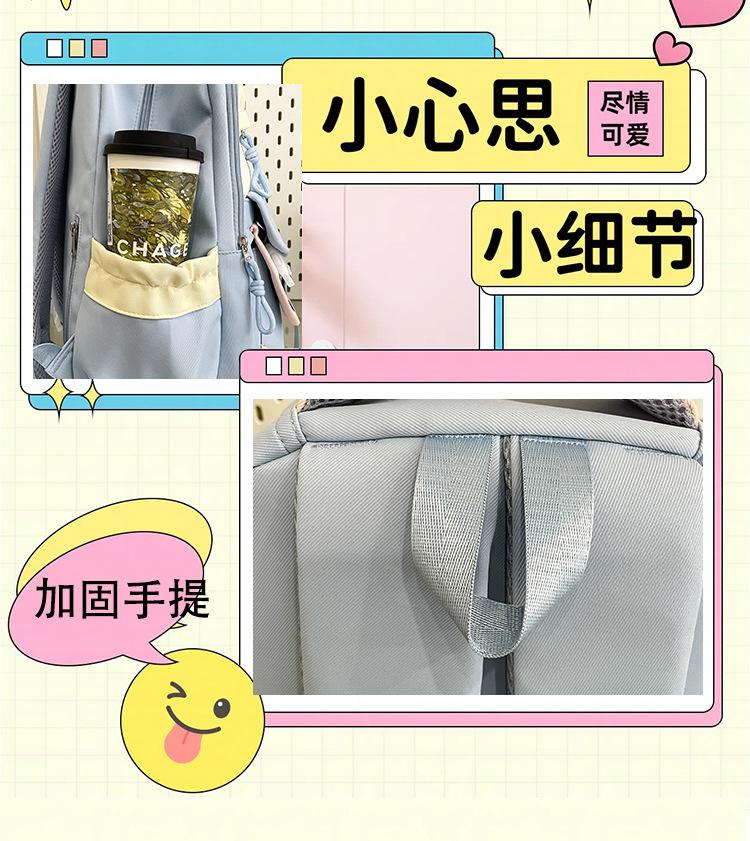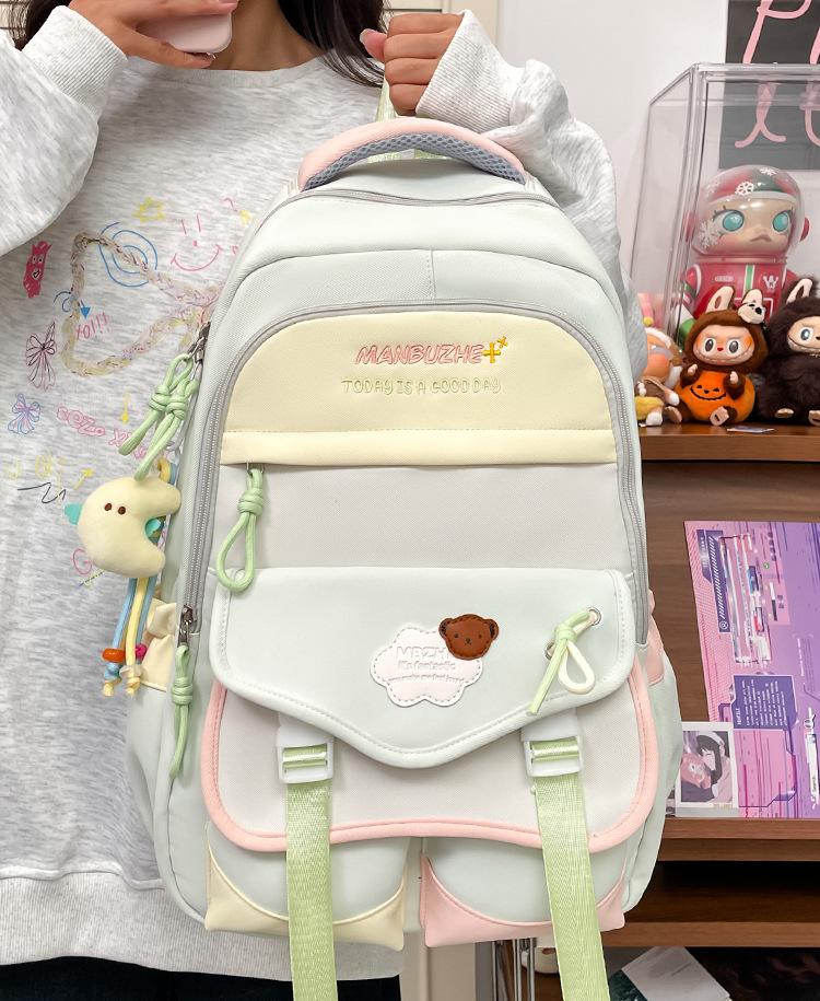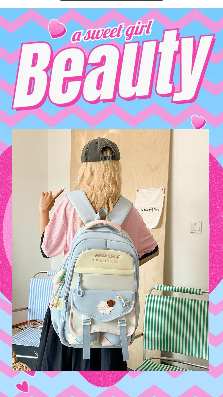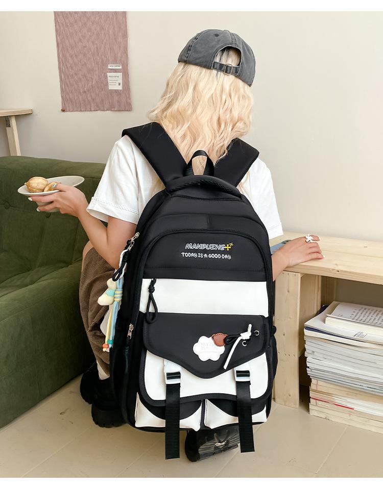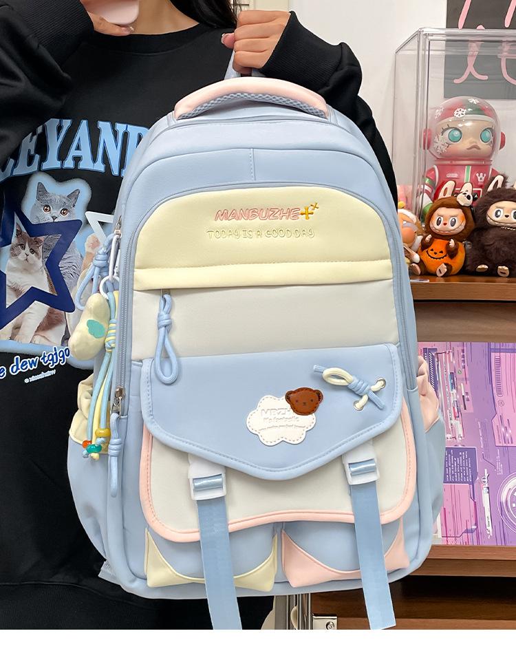 2025 Nueva Mochila Linda para Dolor Femenina Estilo Dibujos Animados Mochila Gran Capacidad Color Contraste Mochila Estudiante de Secundaria y Preparatoria Mochila Escolar