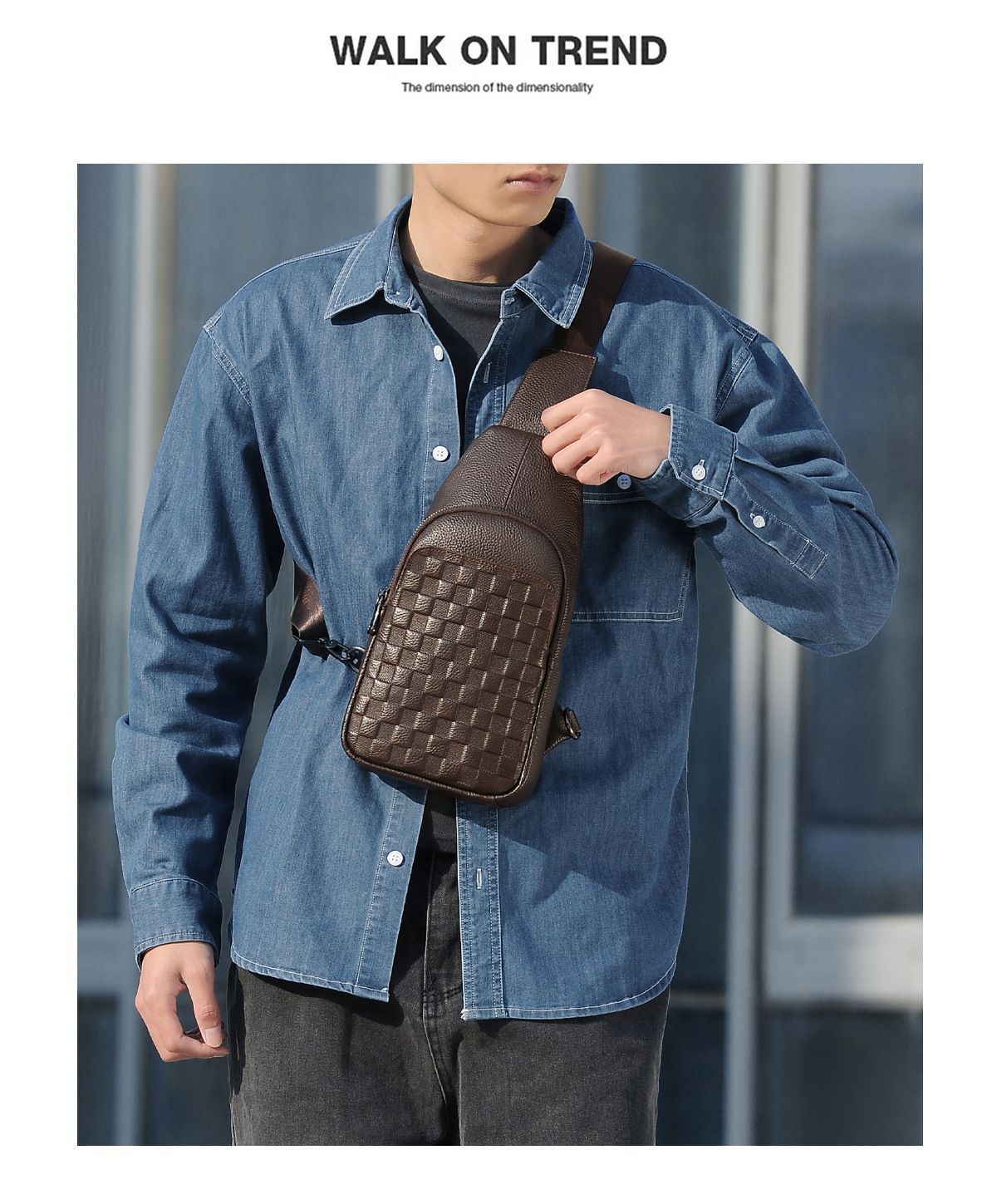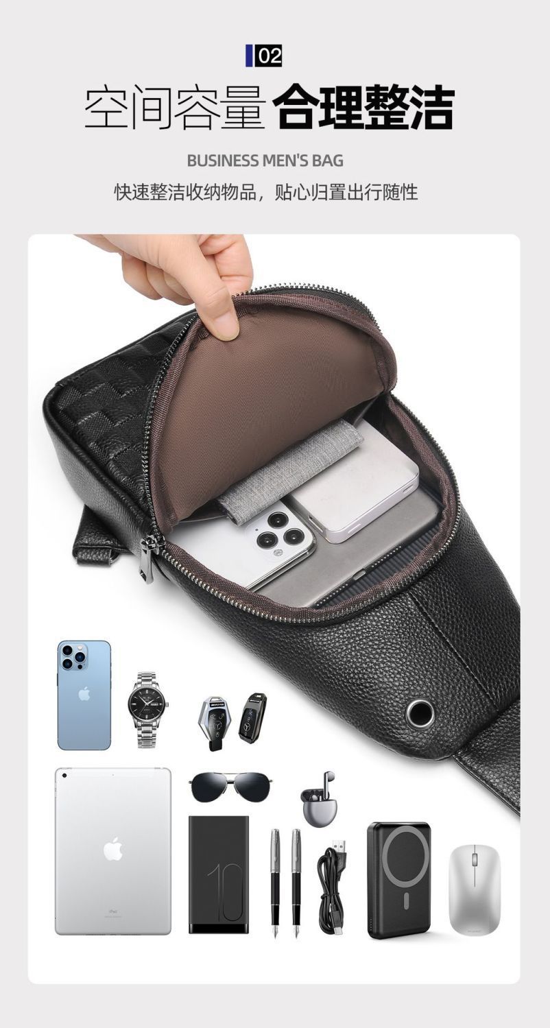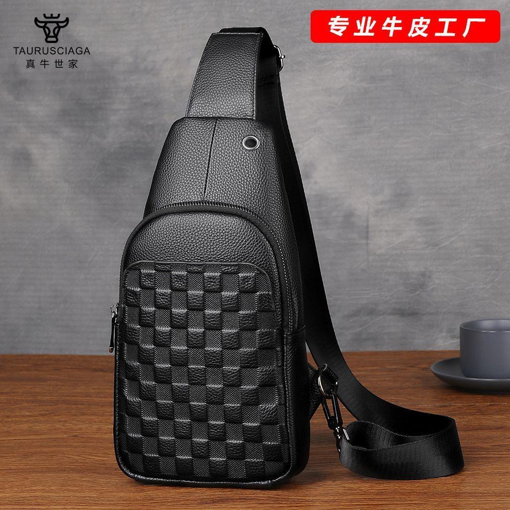 Moda Bolsos Nuevos Artículos de Cuero Bolso de Pecho para Hombre Bolso de Hombro Casual Deportivo Cuero Genuino de Alta Gama Bolso de Pecho Bolso Cruzado