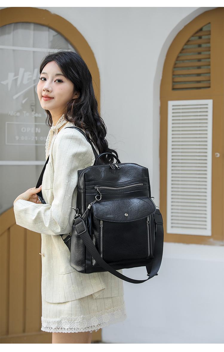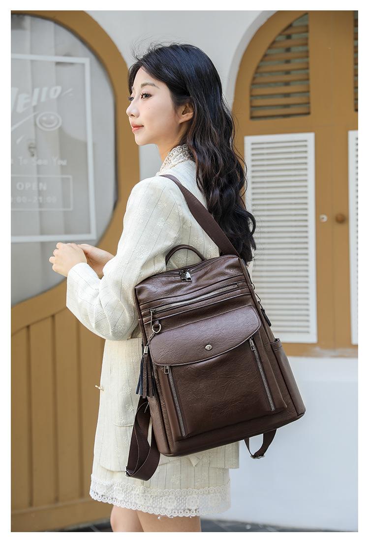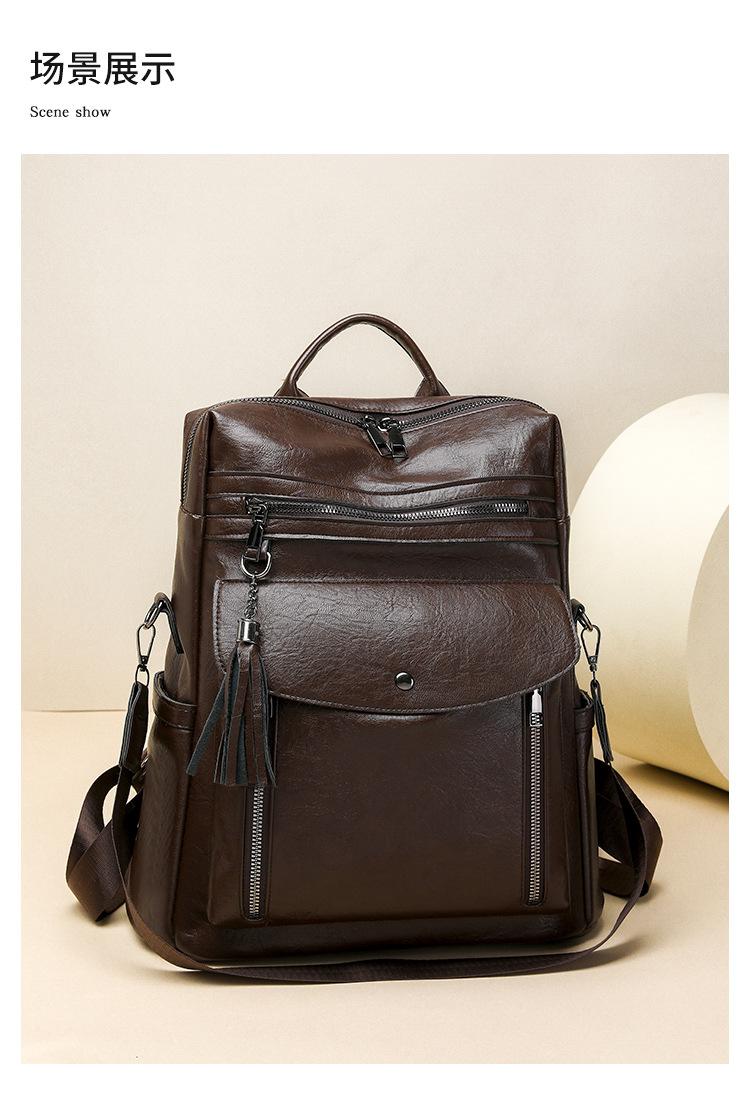 Mochila con Textura de Cuero PU Suave de Gran Capacidad Nueva Transfronteriza Retro Europea y Americana Bolso de Mujer Mochila de Viaje Simple Venta al por Mayor