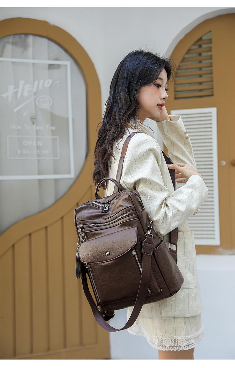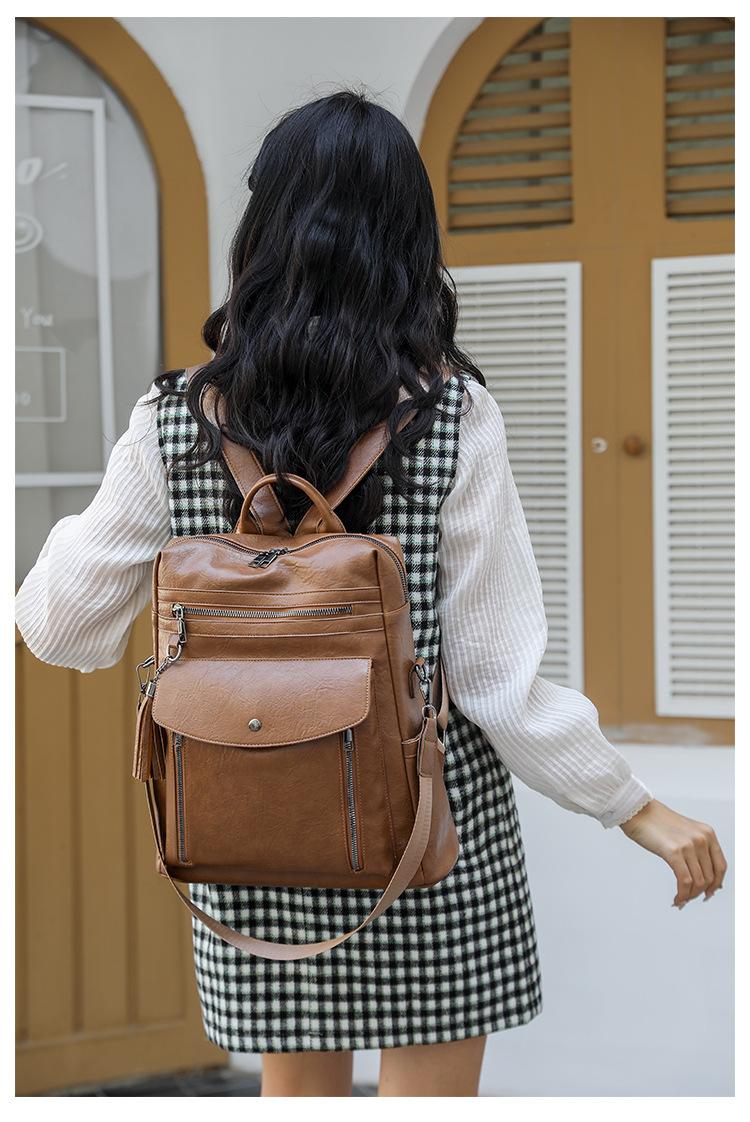Compra Mochila con Textura de Cuero PU Suave de Gran Capacidad Nueva Transfronteriza Retro Europea y Americana Bolso de Mujer Mochila de Viaje Simple Venta al por Mayor al por mayor en Joom.pro