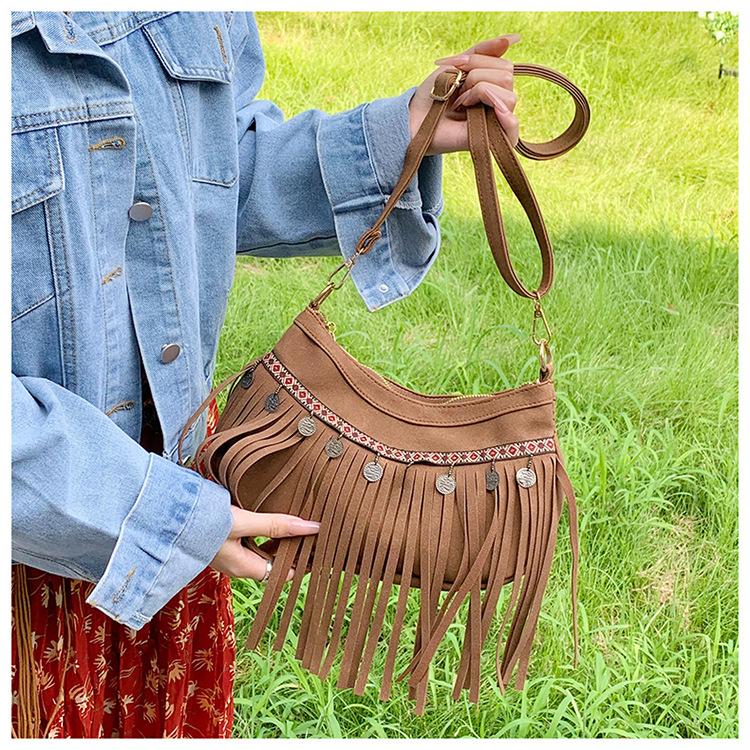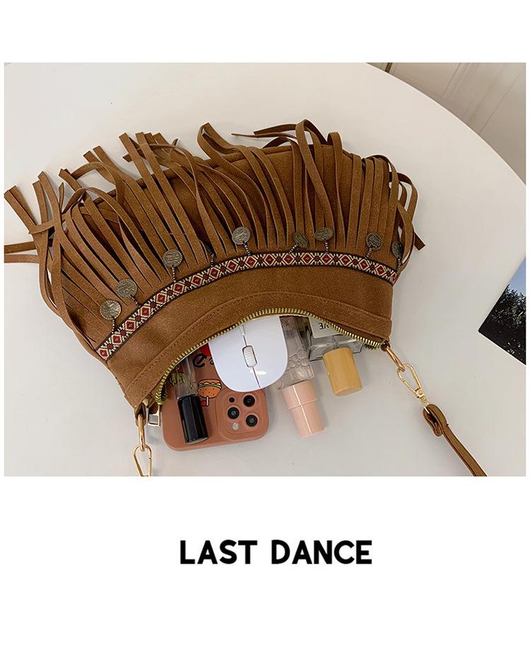 Bolso popular con borlas para mujer 2025 verano moda casual nueva personalidad moderno bolso de hombro cruzado