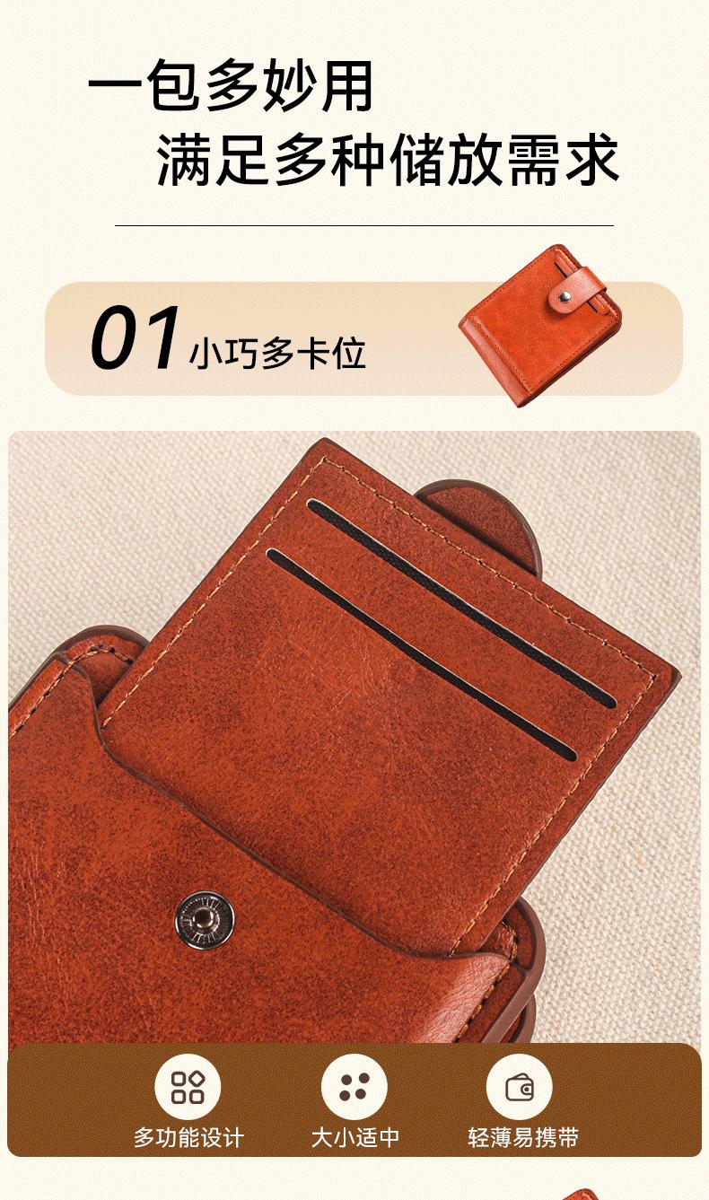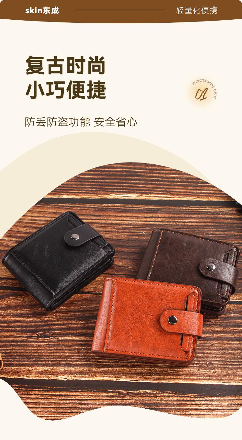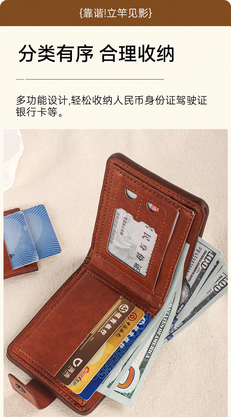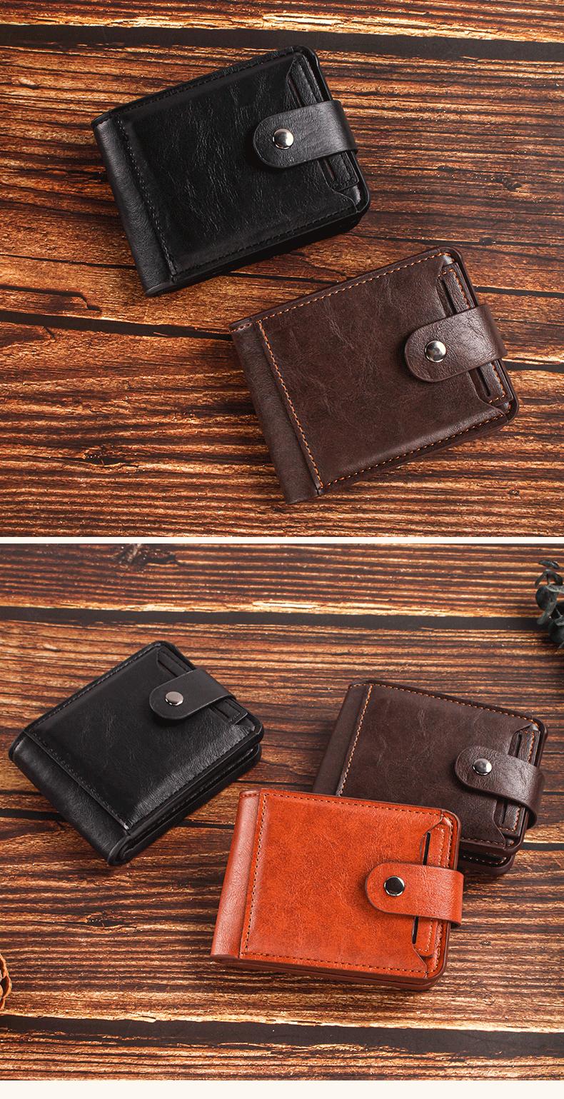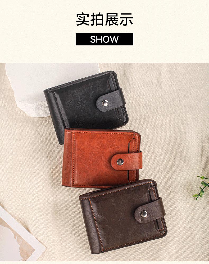 Cartera para hombre de color sólido del fabricante, billetera grande para billetes, múltiples ranuras para tarjetas, tarjetero integrado con broche, cartera horizontal portátil para hombre, gran capacidad