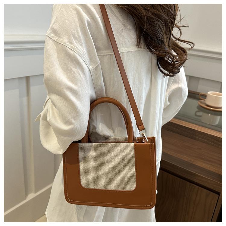 2025 Verano Nuevo Moda Patchwork Gran Capacidad Simple Bolso de Mano para Desplazamiento Bolso Bandolera de Hombro Bloque de Color Bolso Cuadrado Pequeño para Mujer