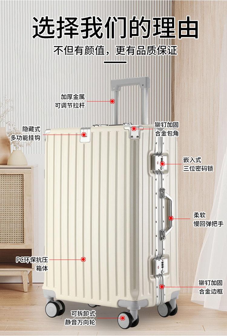 Maleta de equipaje silenciosa de gran capacidad, resistente, con marco de aluminio, duradera, nueva, universal, con rueda y contraseña, para estudiantes