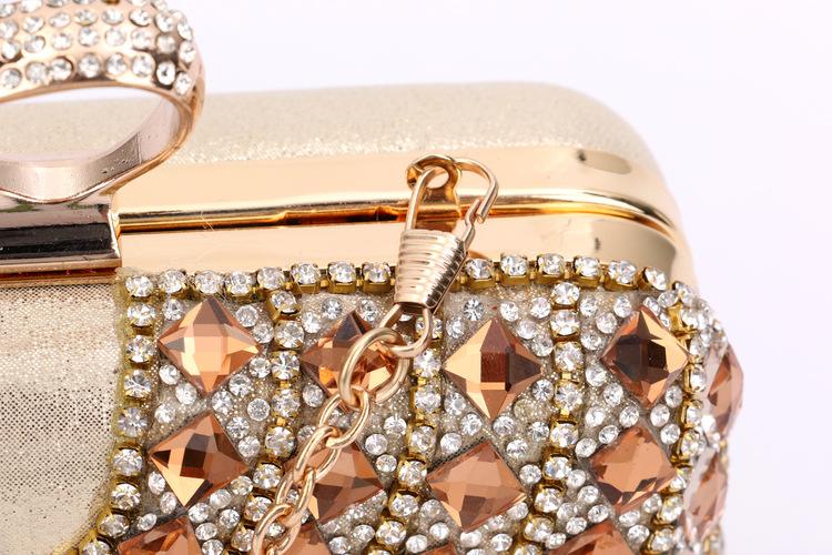 Estilo: Bolso de noche europeo y americano con pedrería, se puede llevar en la mano, de asa, cruzado o al hombro