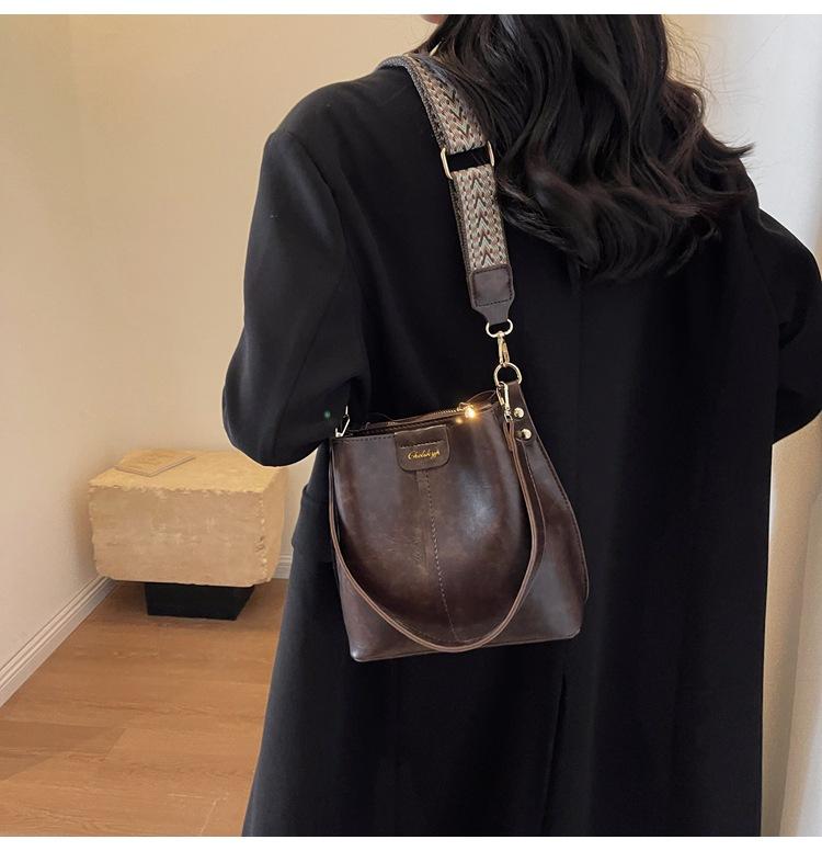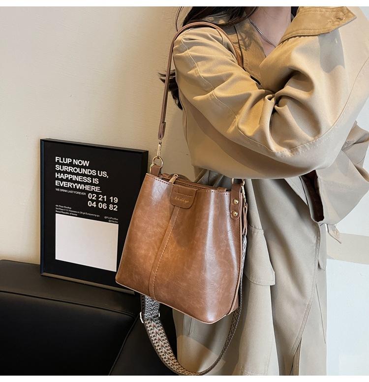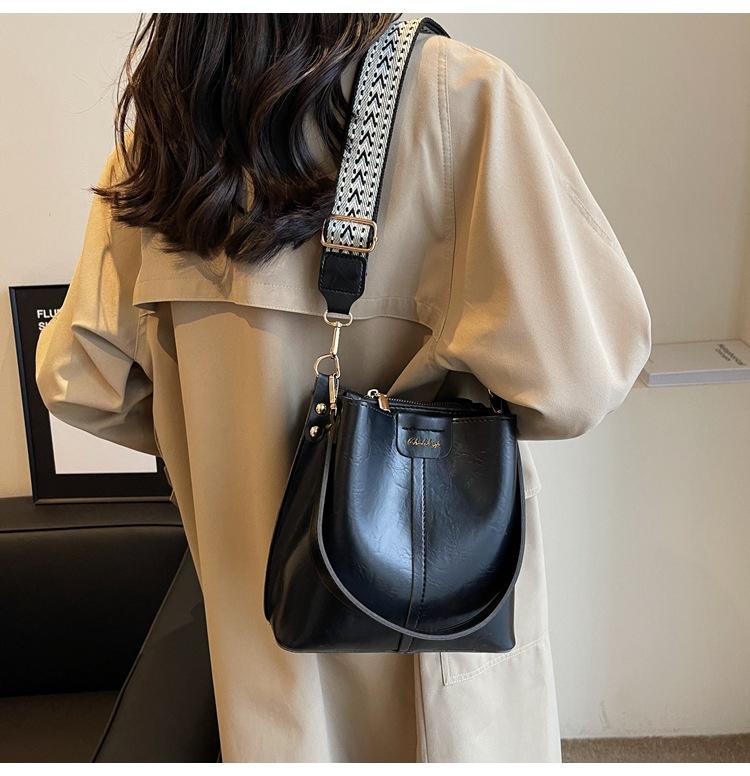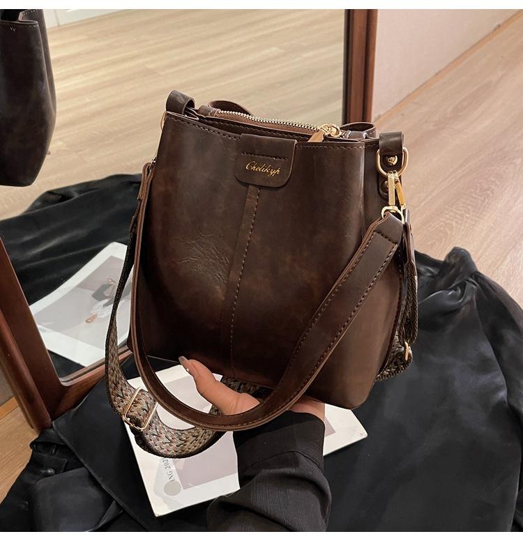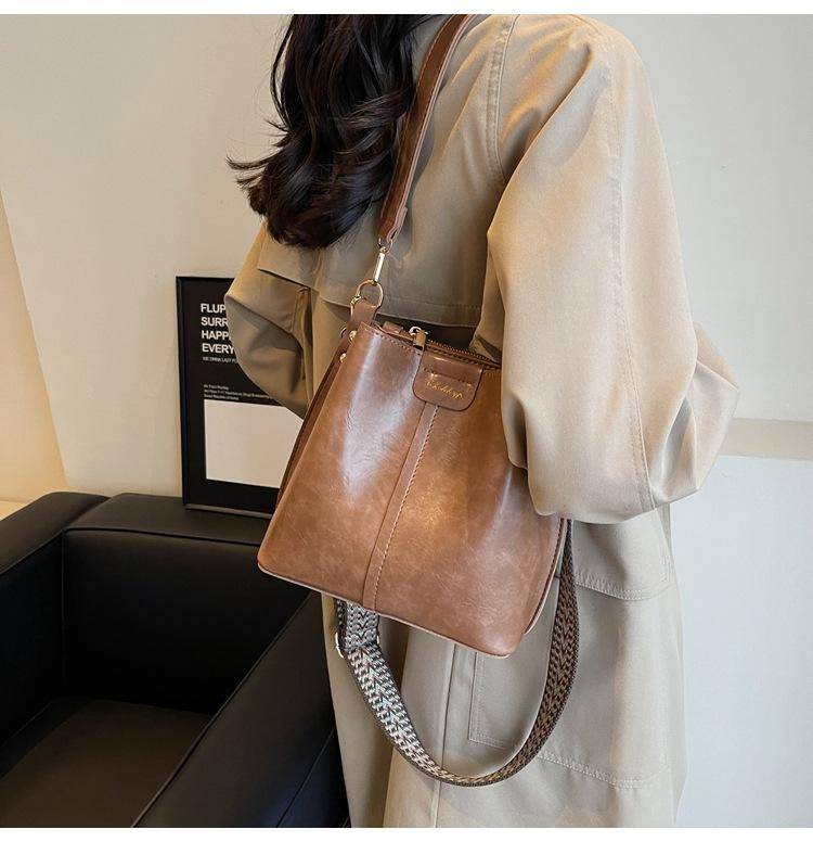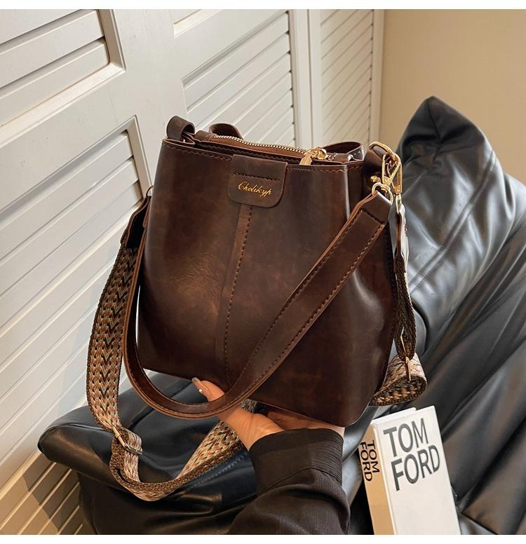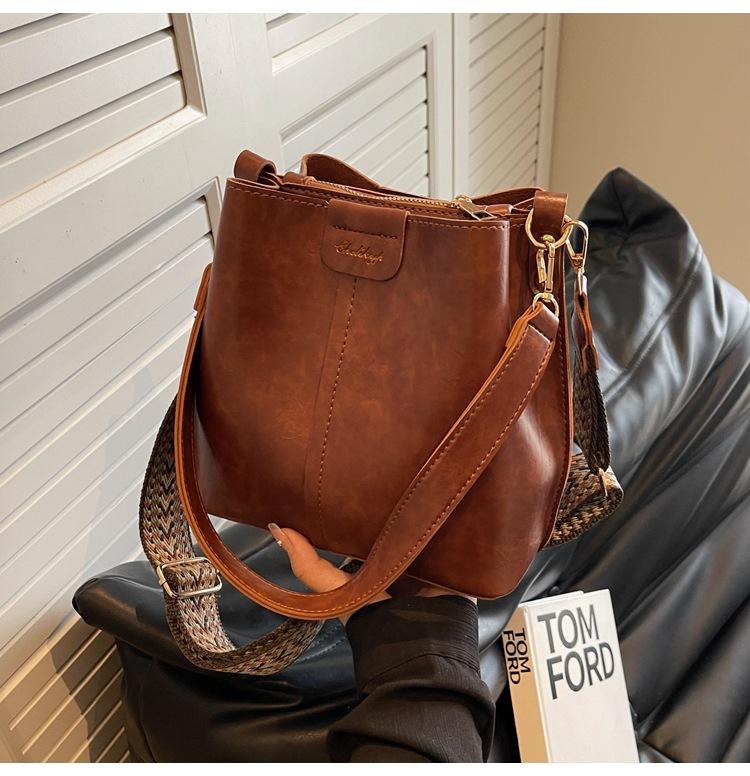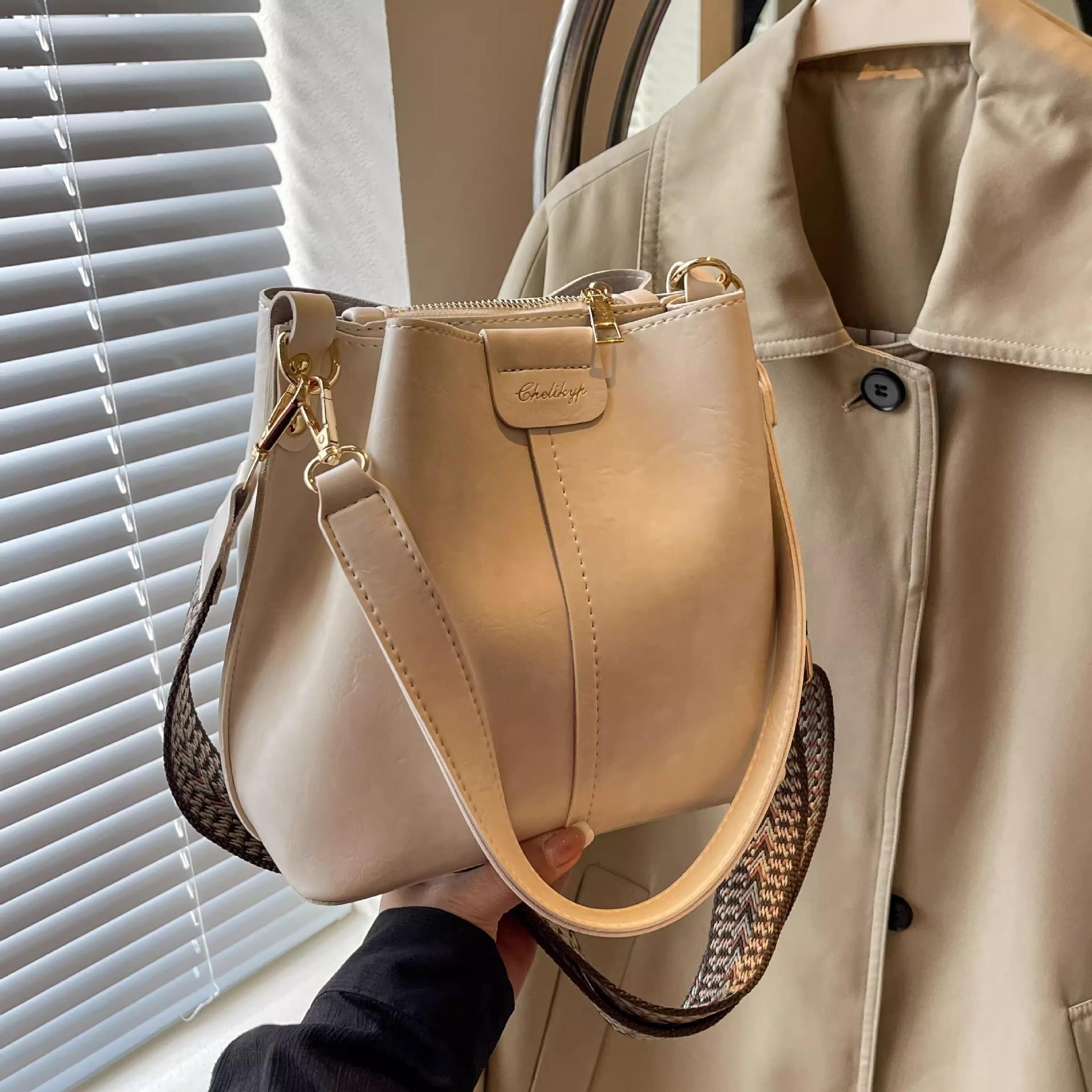 Compra Bolsos de Mujer 2025 Nuevo Estilo Coreano Versátil Moderno Primavera/Verano Retro Gran Capacidad Correa Ancha Bandolera Tipo Cubo al por mayor en Joom.pro