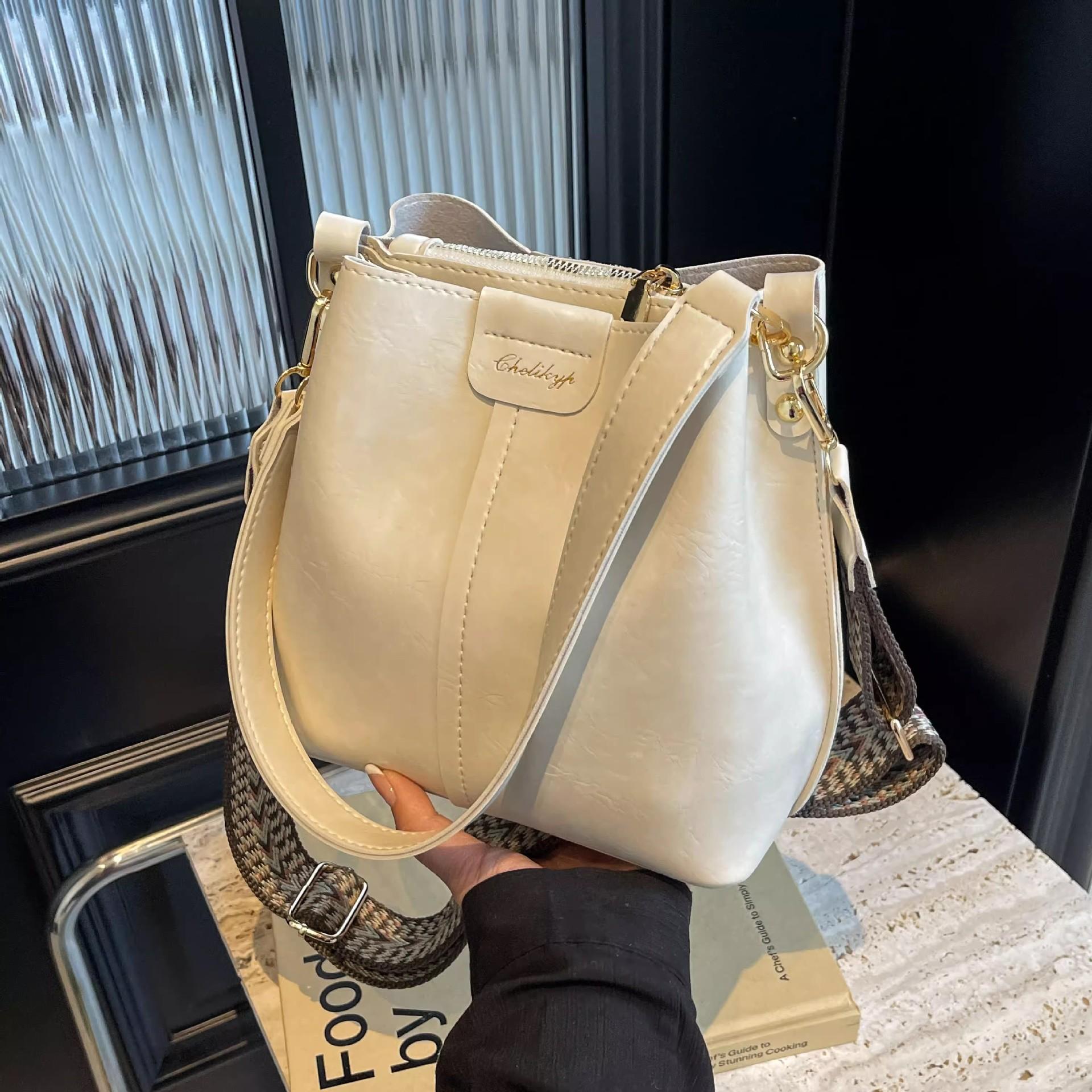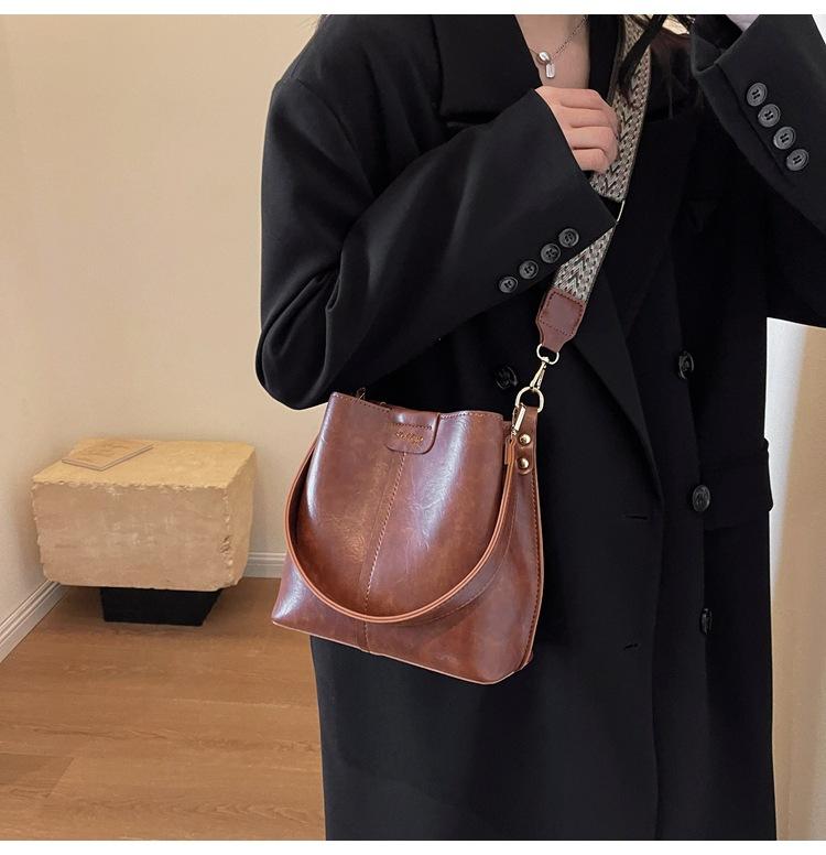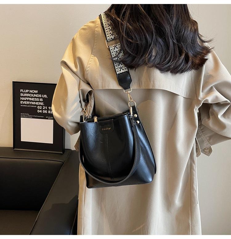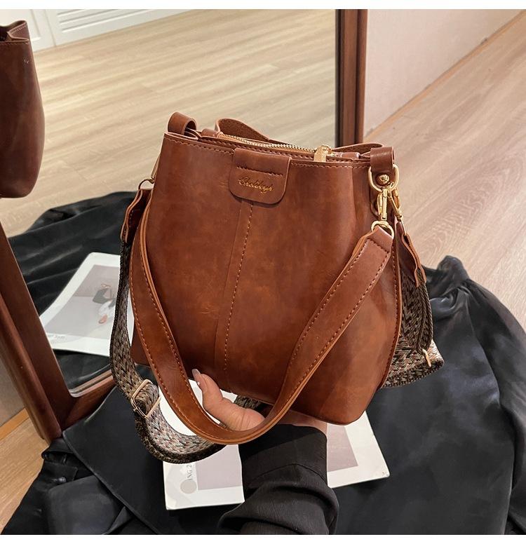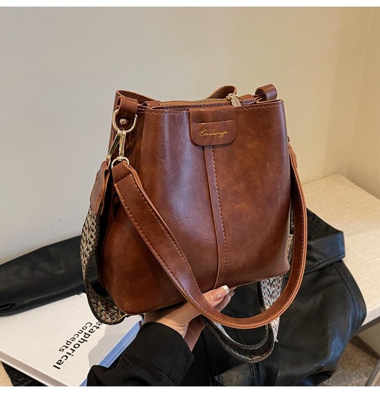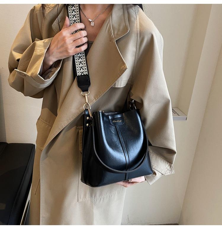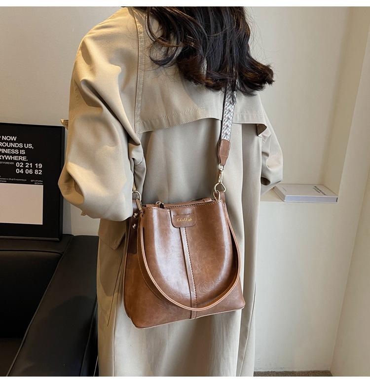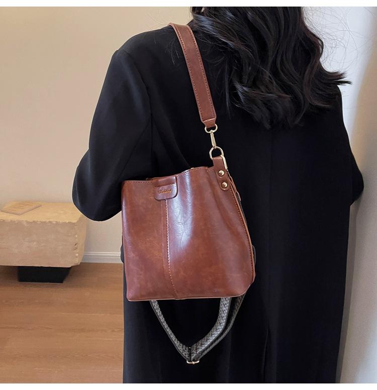 Compra Bolsos de Mujer 2025 Nuevo Estilo Coreano Versátil Moderno Primavera/Verano Retro Gran Capacidad Correa Ancha Bandolera Tipo Cubo al por mayor en Joom.pro