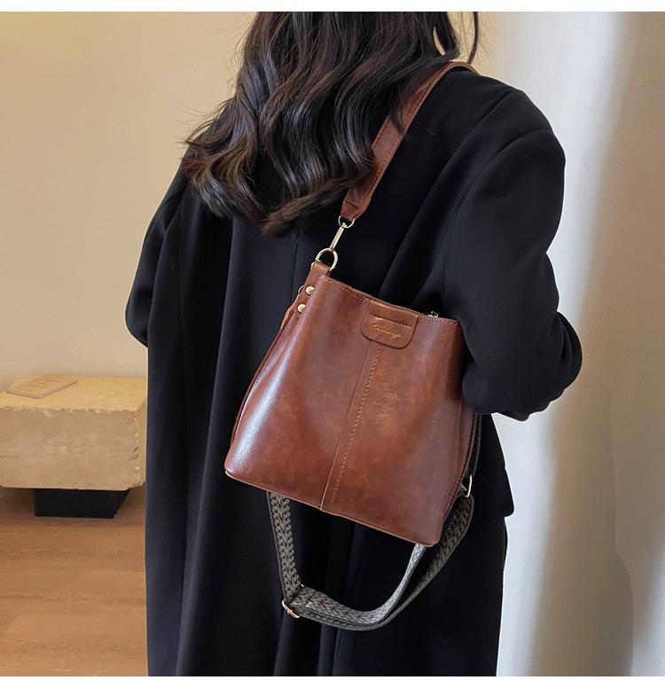 Bolso de mujer 2024 nuevo bolso bandolera otoño e invierno bolso cubo retro versátil bolso de hombro de nicho de alta gama