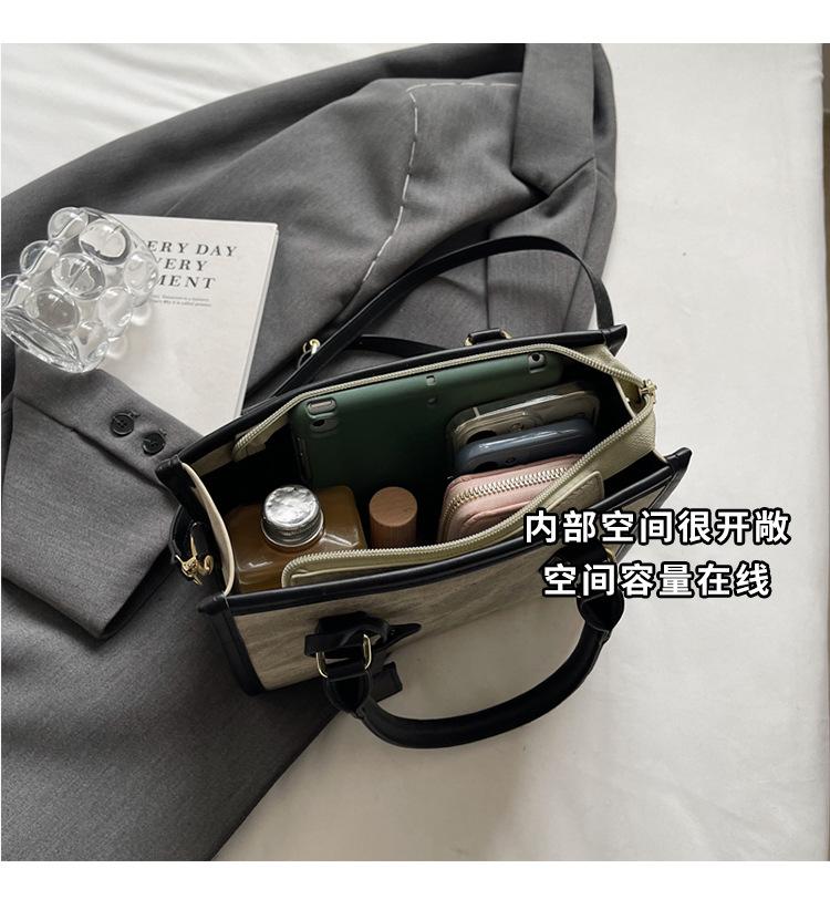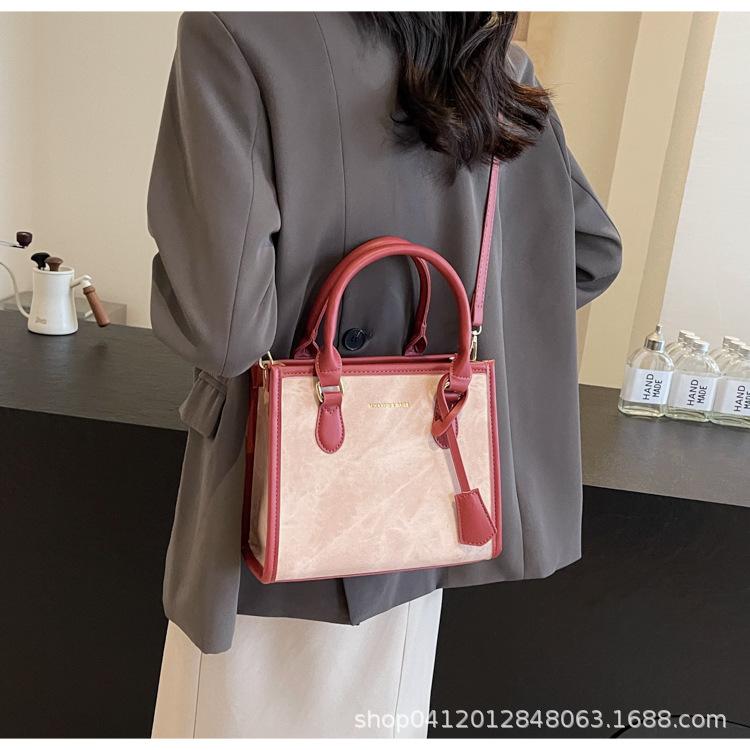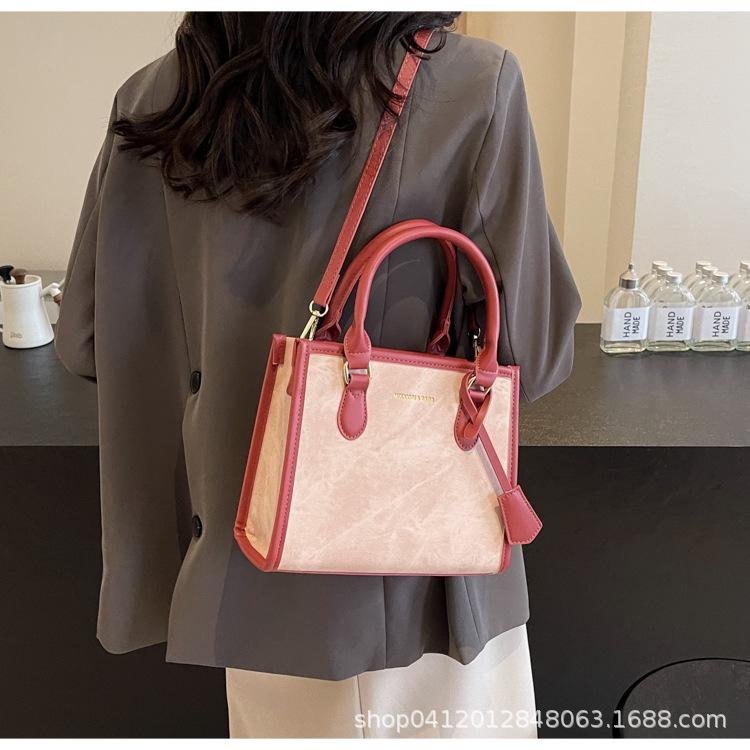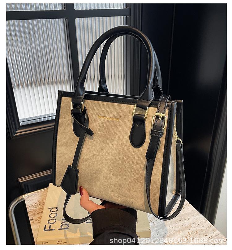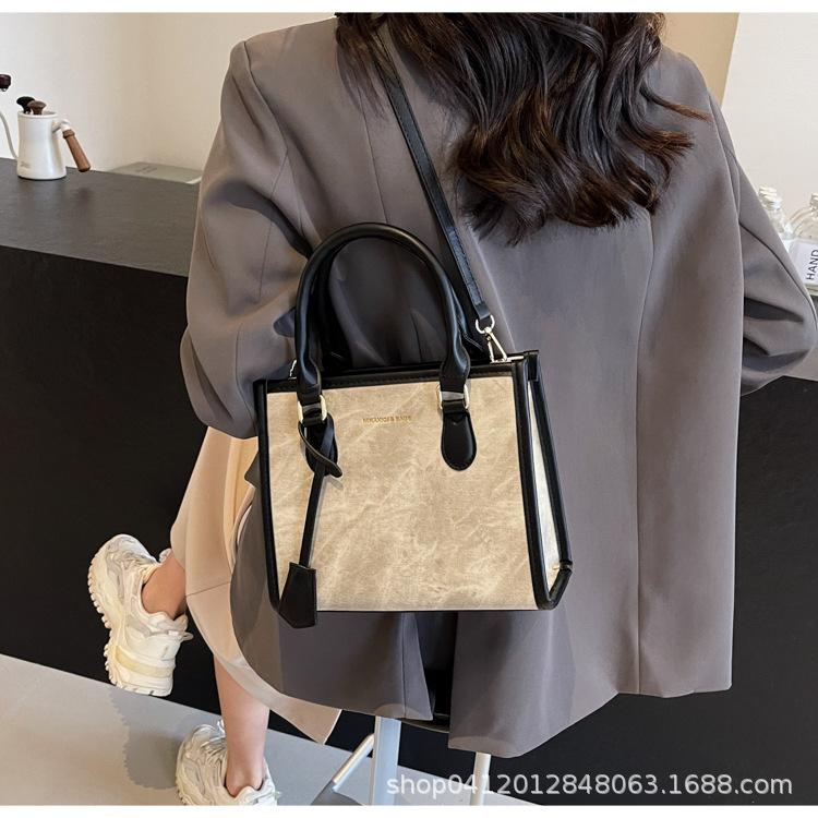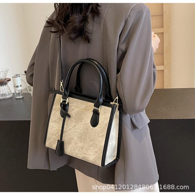 Bolso grande portátil vintage de color contrastante para mujer, nuevo bolso bandolera de moda de gran capacidad, bolso de hombro popular para ir al trabajo, 2024