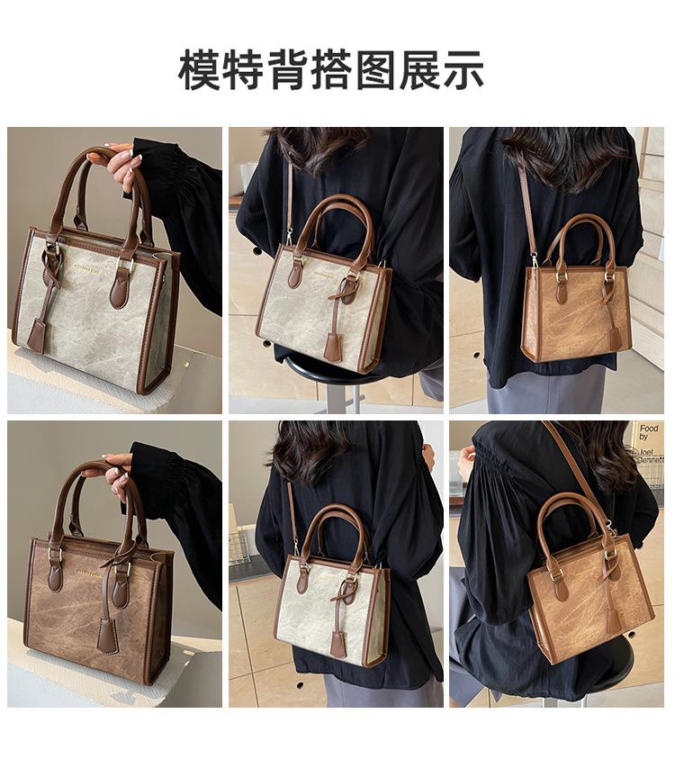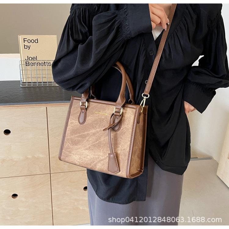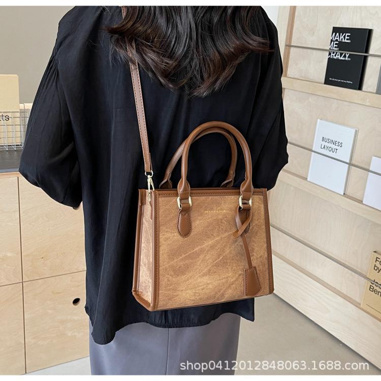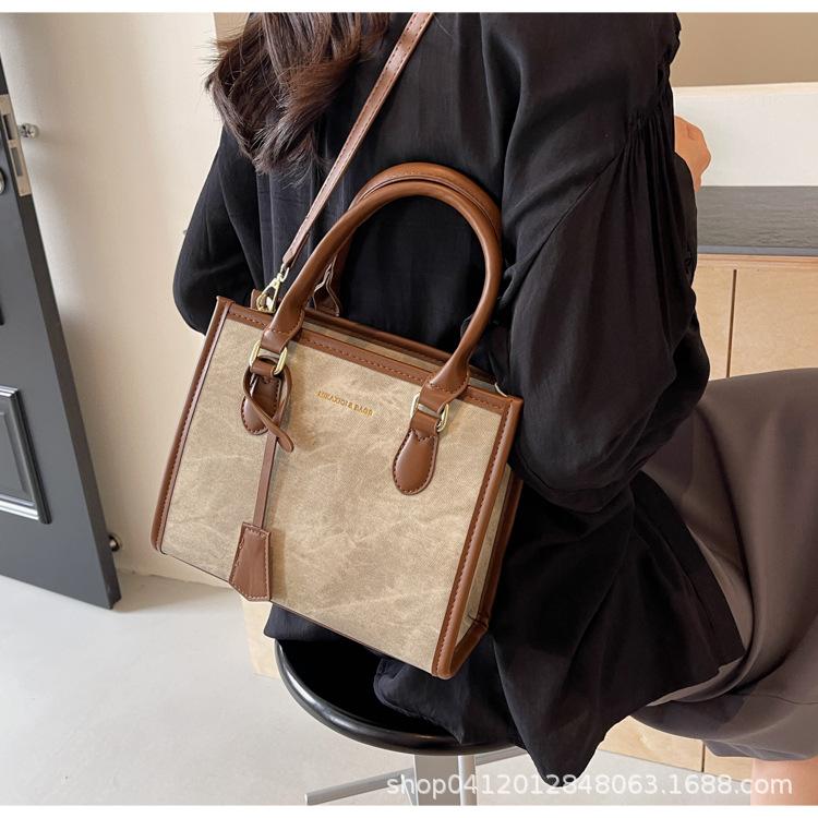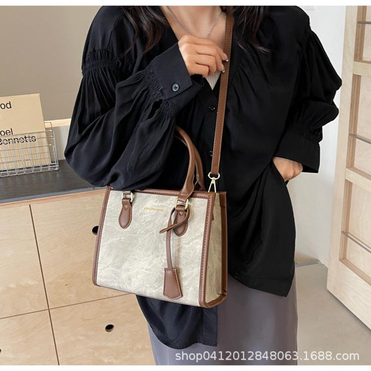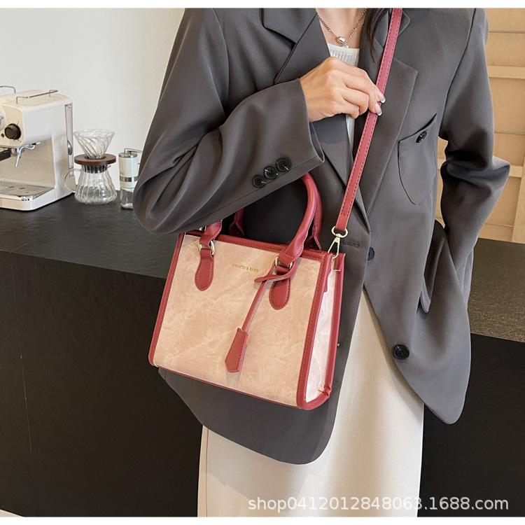 Bolso grande portátil vintage de color contrastante para mujer, nuevo bolso bandolera de moda de gran capacidad, bolso de hombro popular para ir al trabajo, 2024