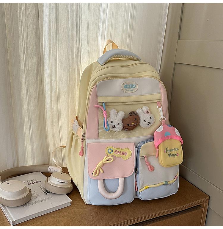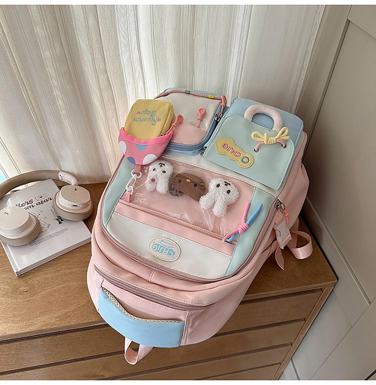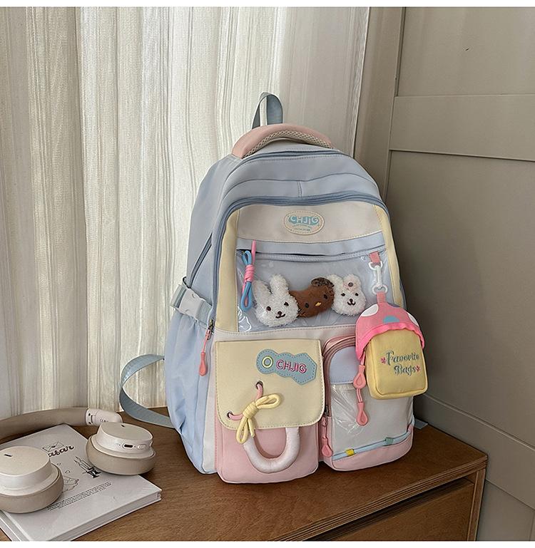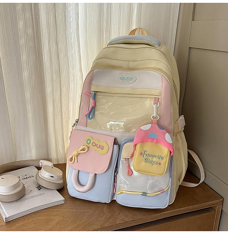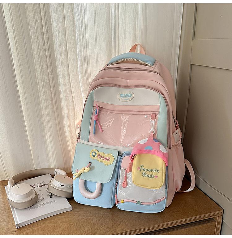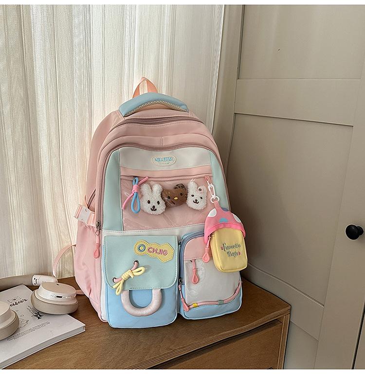 Mochila Escolar de Color Contrastante Estilo Universitario Femenino Estudiante de Secundaria Gran Capacidad Estudiante de Preparatoria Mochila Pequeña Fresca Mochila Linda para Niña