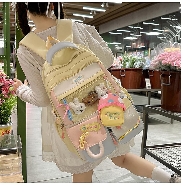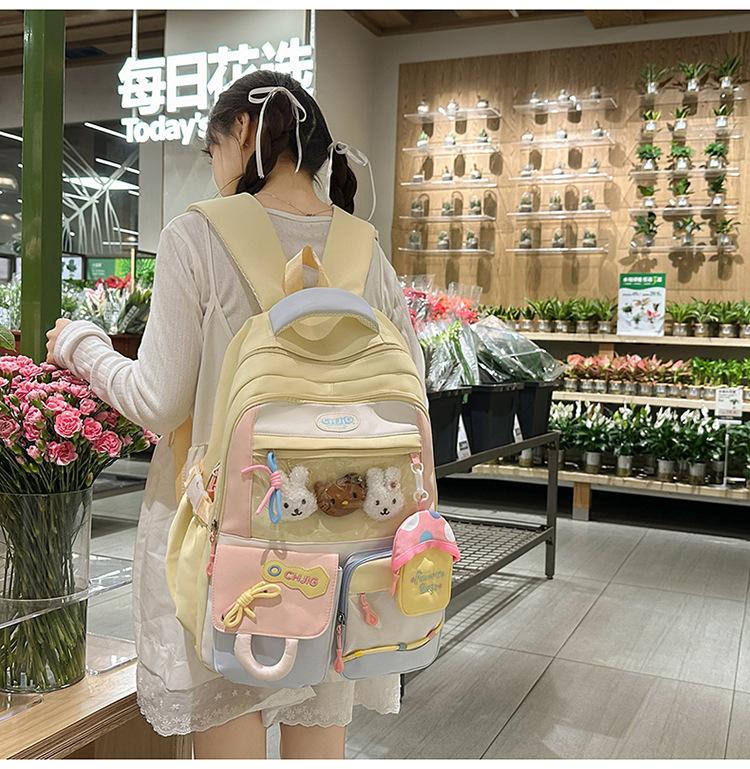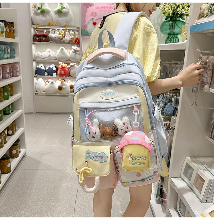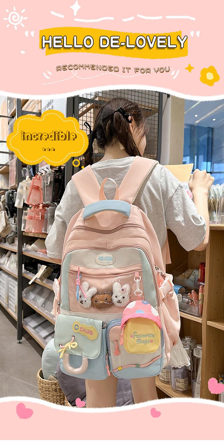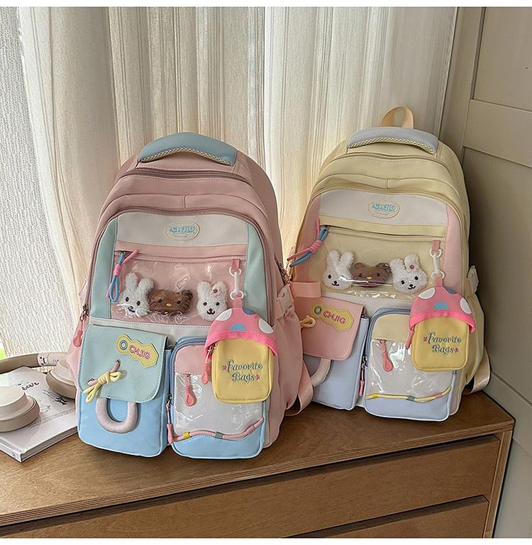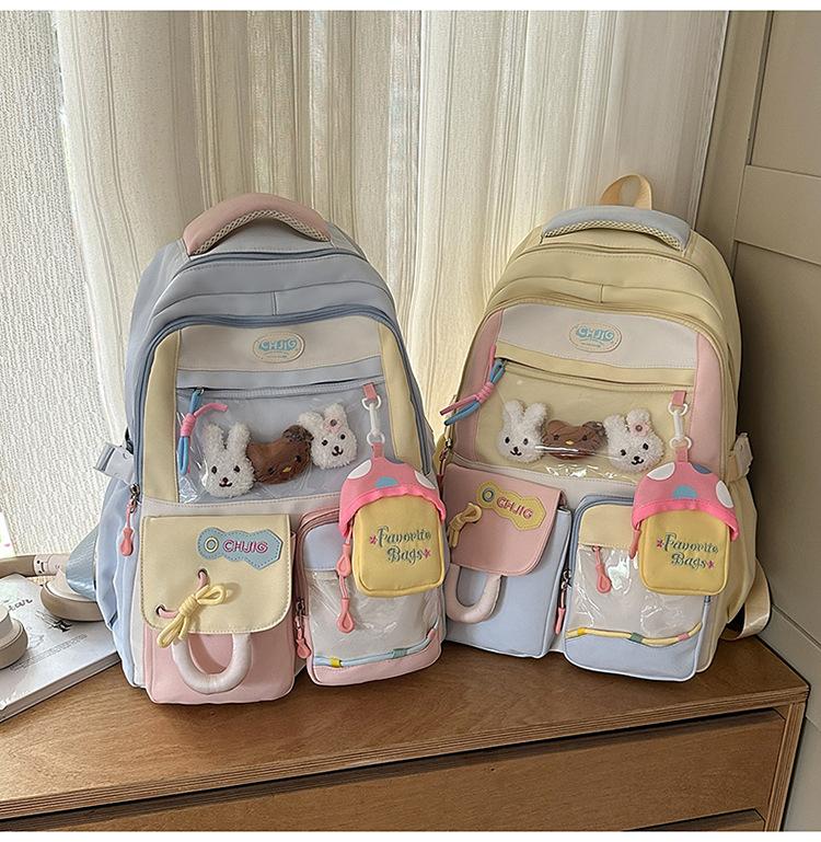 Mochila Escolar de Color Contrastante Estilo Universitario Femenino Estudiante de Secundaria Gran Capacidad Estudiante de Preparatoria Mochila Pequeña Fresca Mochila Linda para Niña