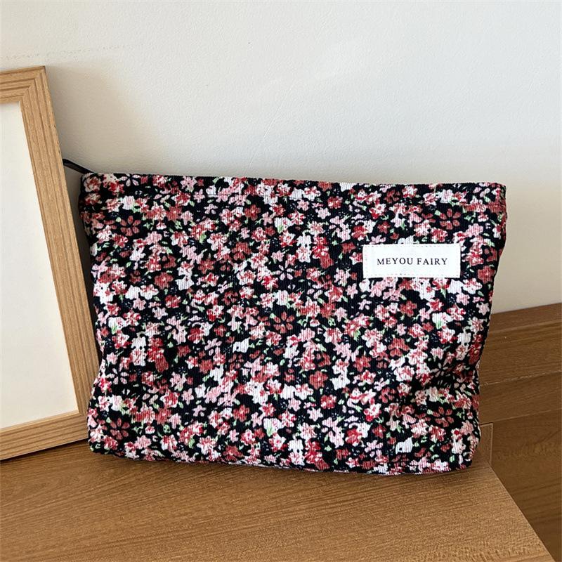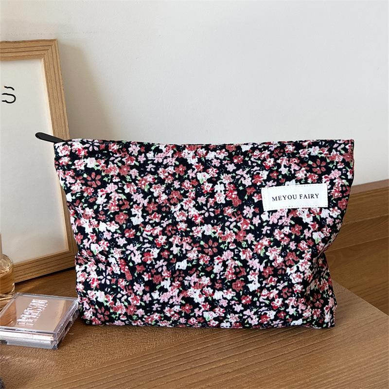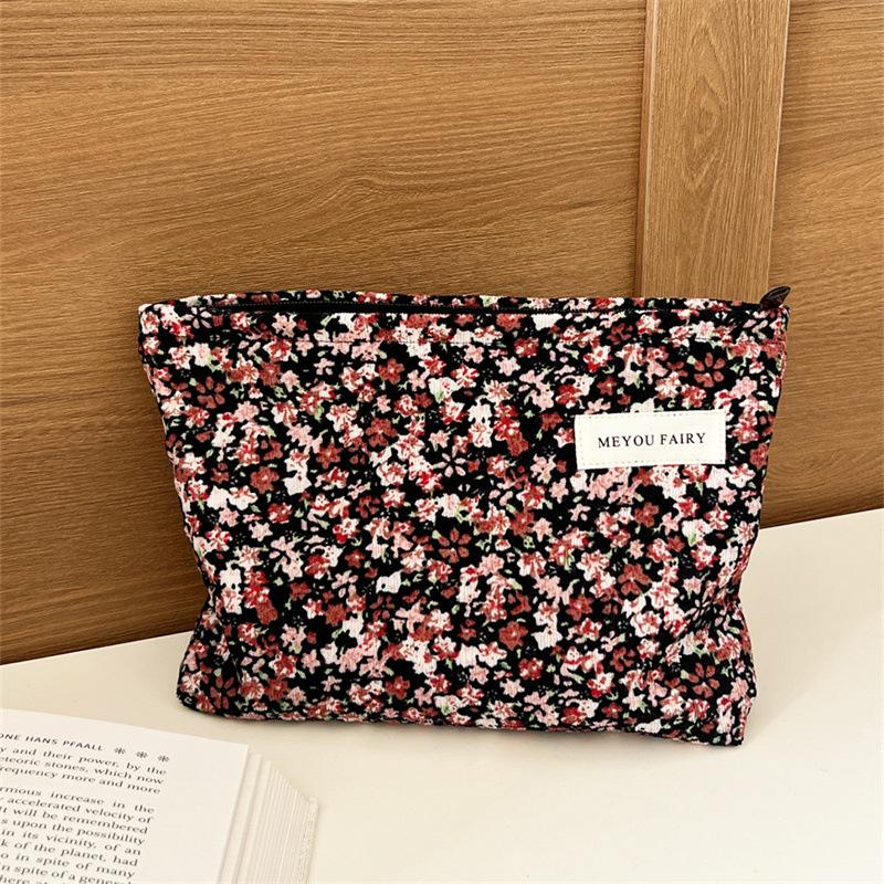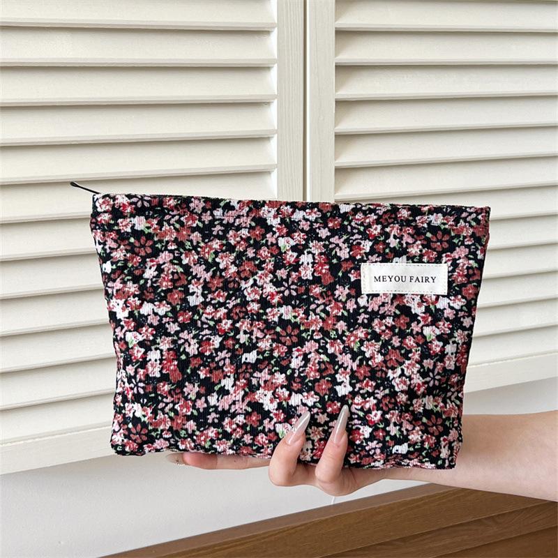 Ins Bolsa de Cosméticos Floral Fresca Pequeña Gran Capacidad Portátil Almacenamiento Cuidado de la Piel Neceser Estudiante Universitario Literario Bolsa de Cosméticos