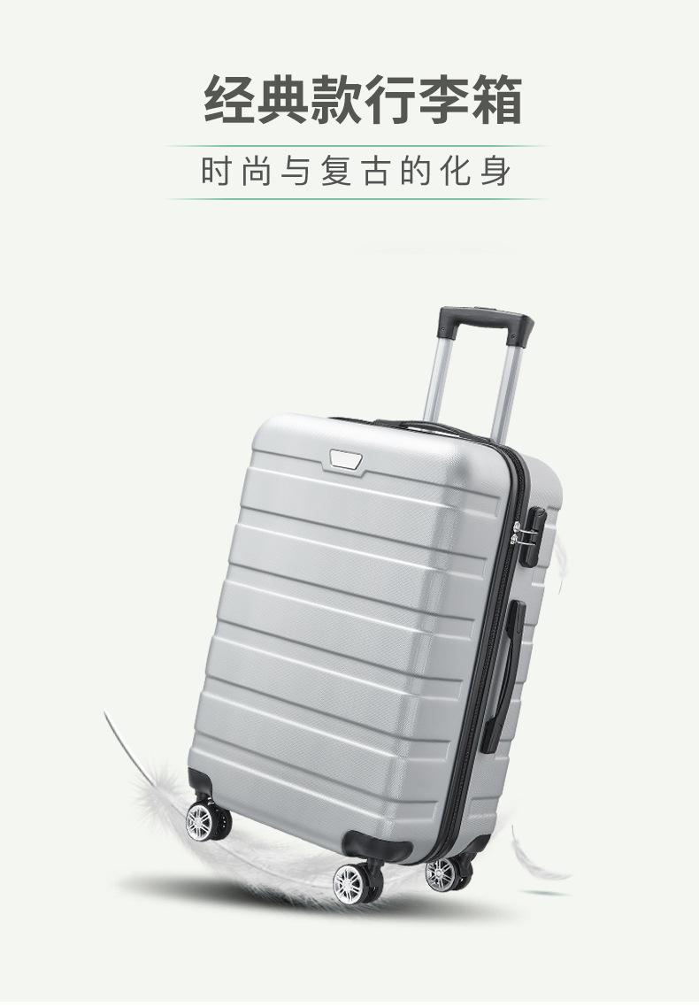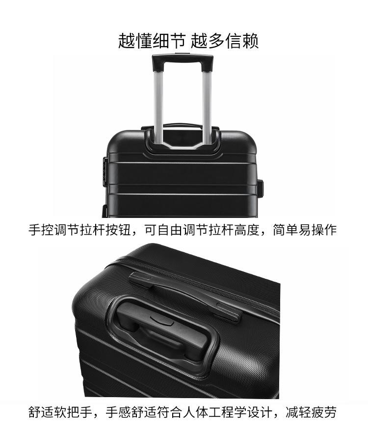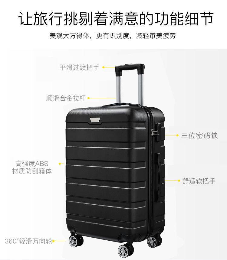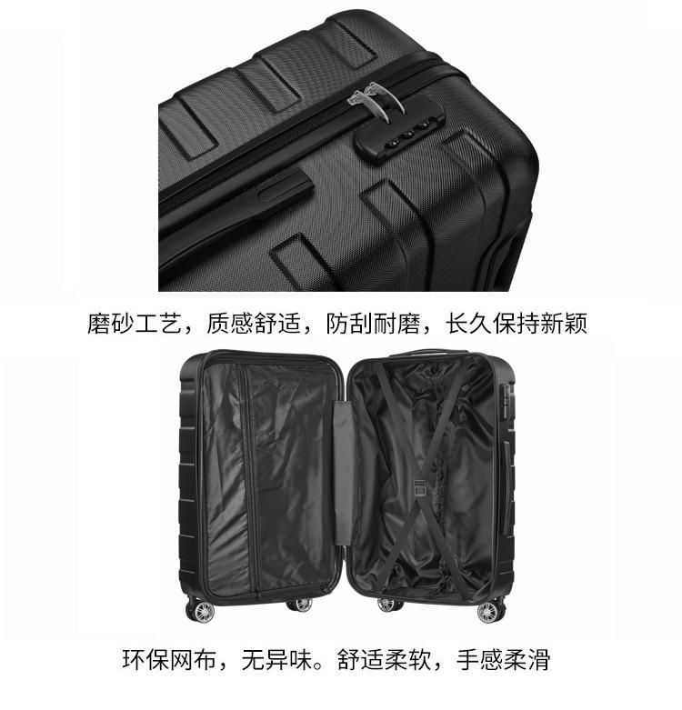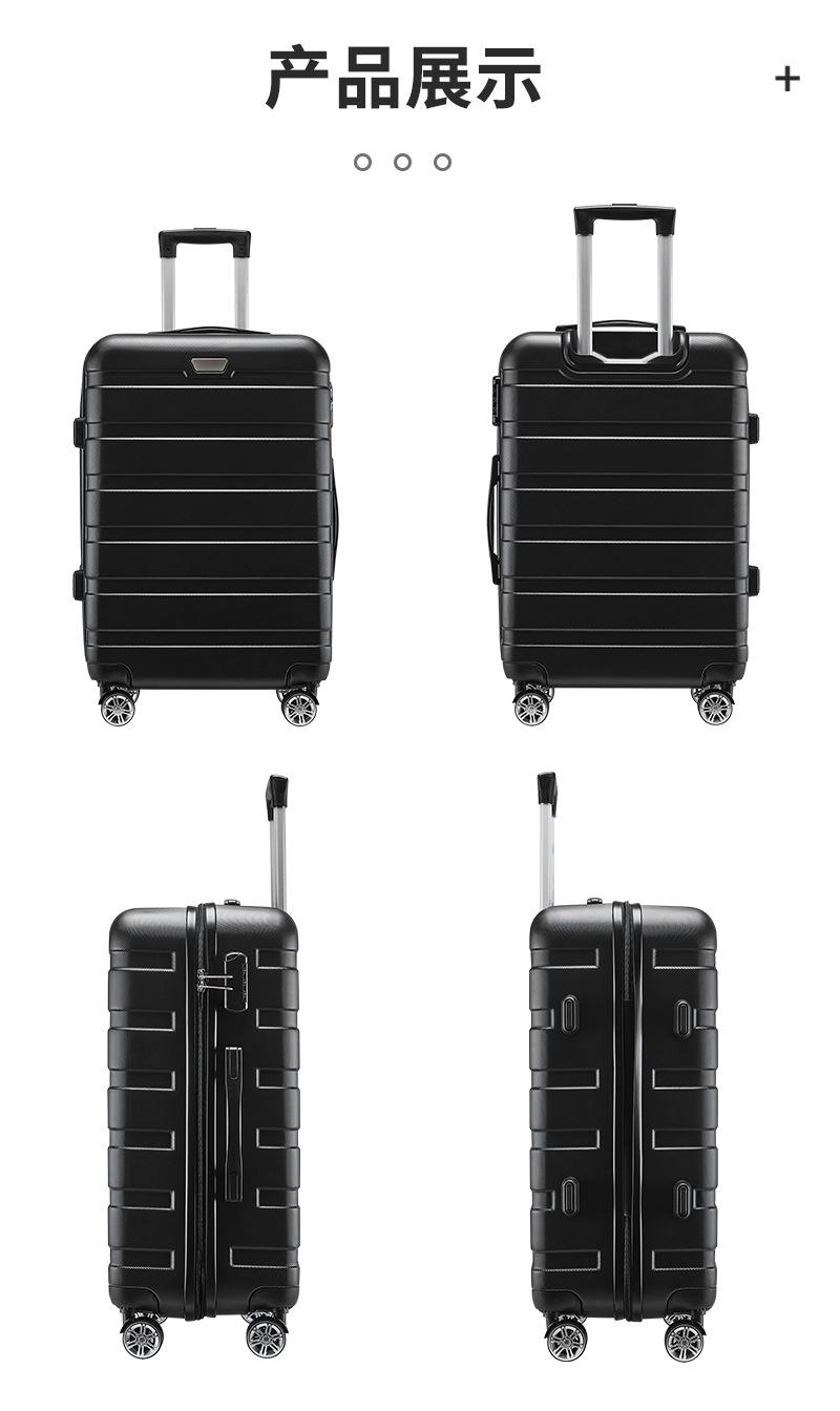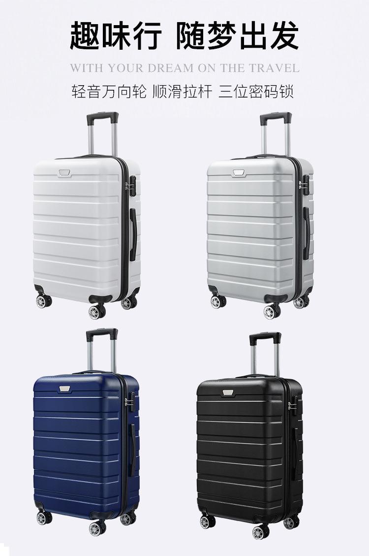 Set de tres piezas de maleta ABS transfronteriza con logo personalizado, rueda universal, contraseña, maleta con ruedas de 20 pulgadas para llevar a bordo, 24
