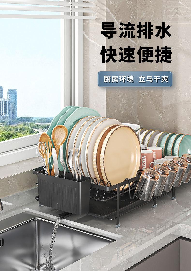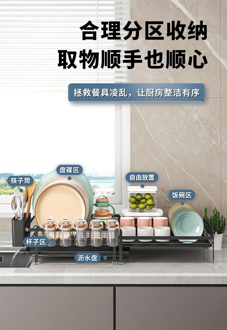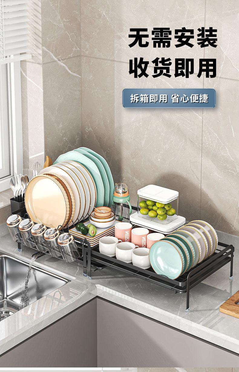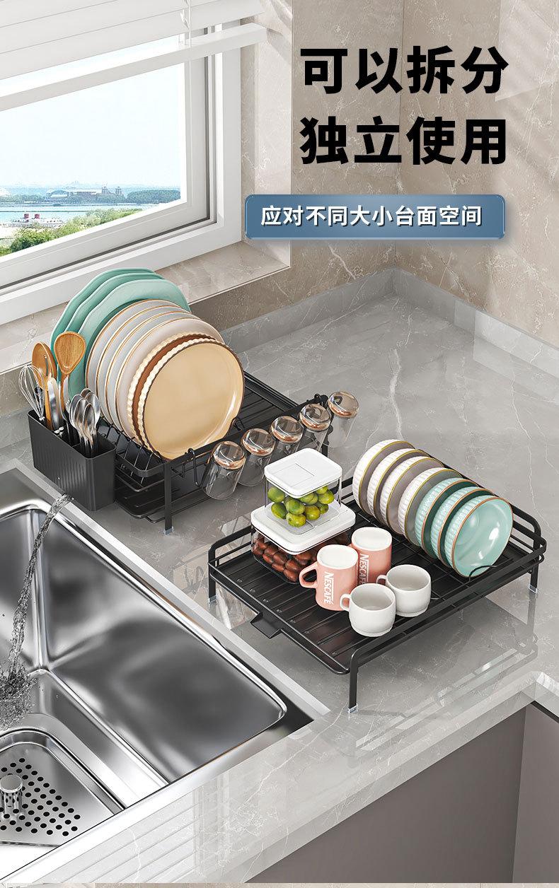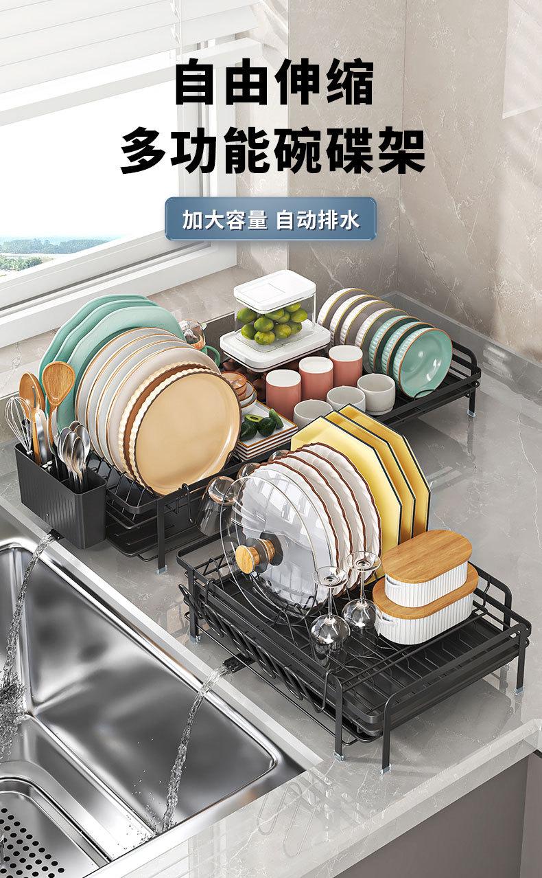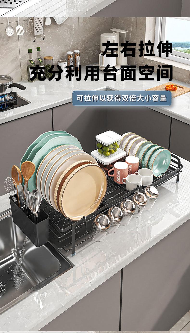 Escurridor de Platos de Cocina Fregadero Tazón Palillos Cuchillo Tenedor Estante de Almacenamiento de Platos Encimera Doméstica Extensible Retráctil Escurridor