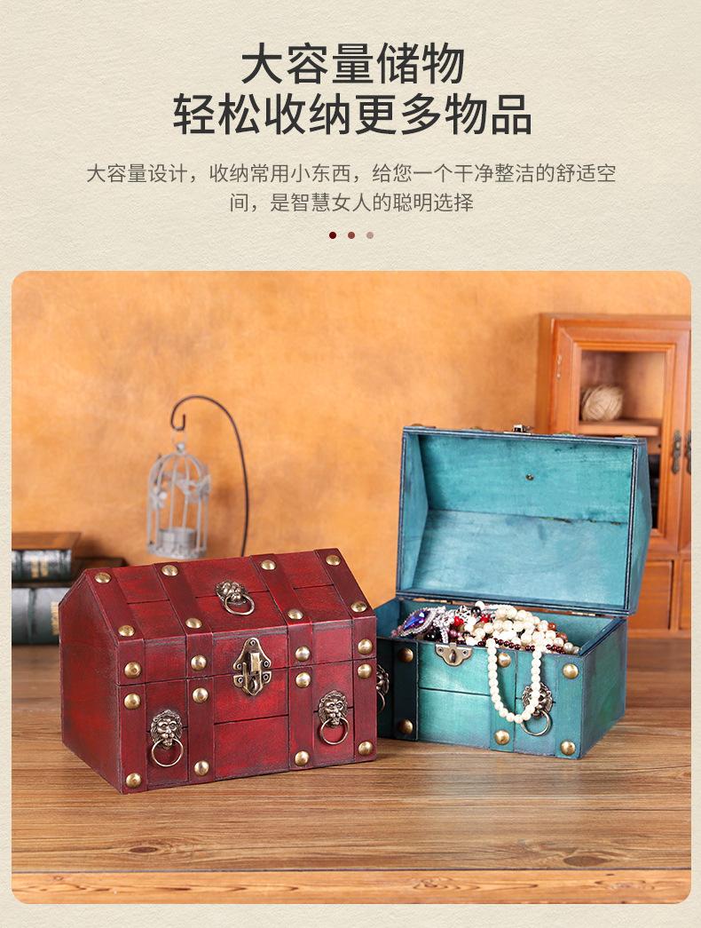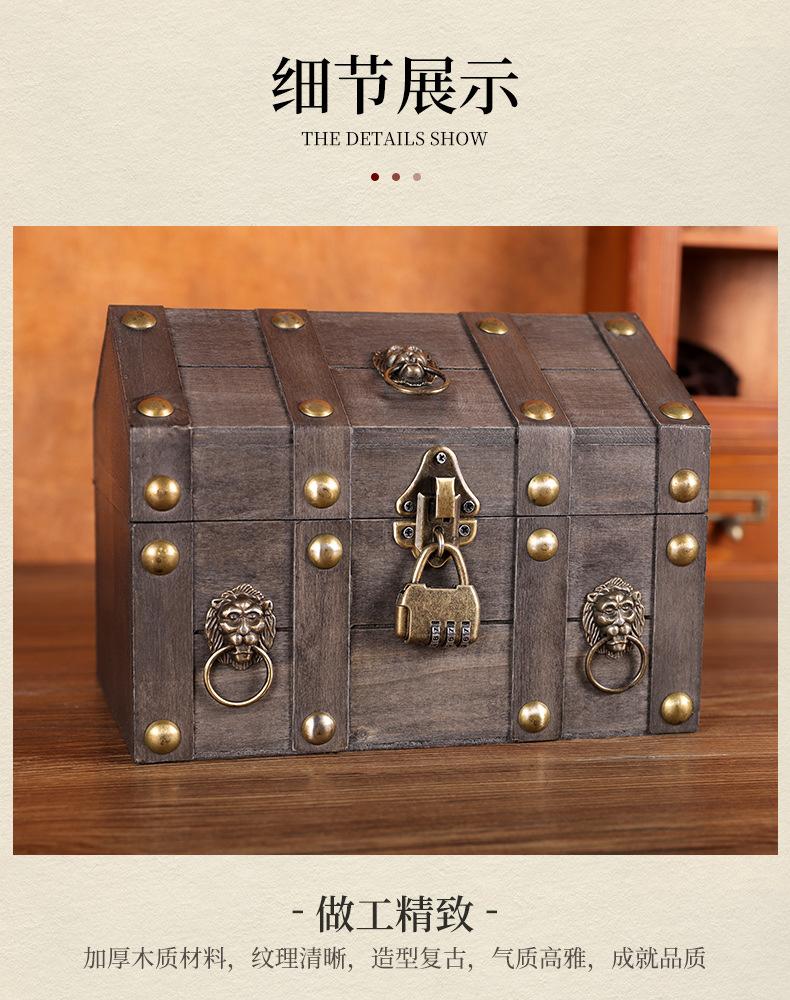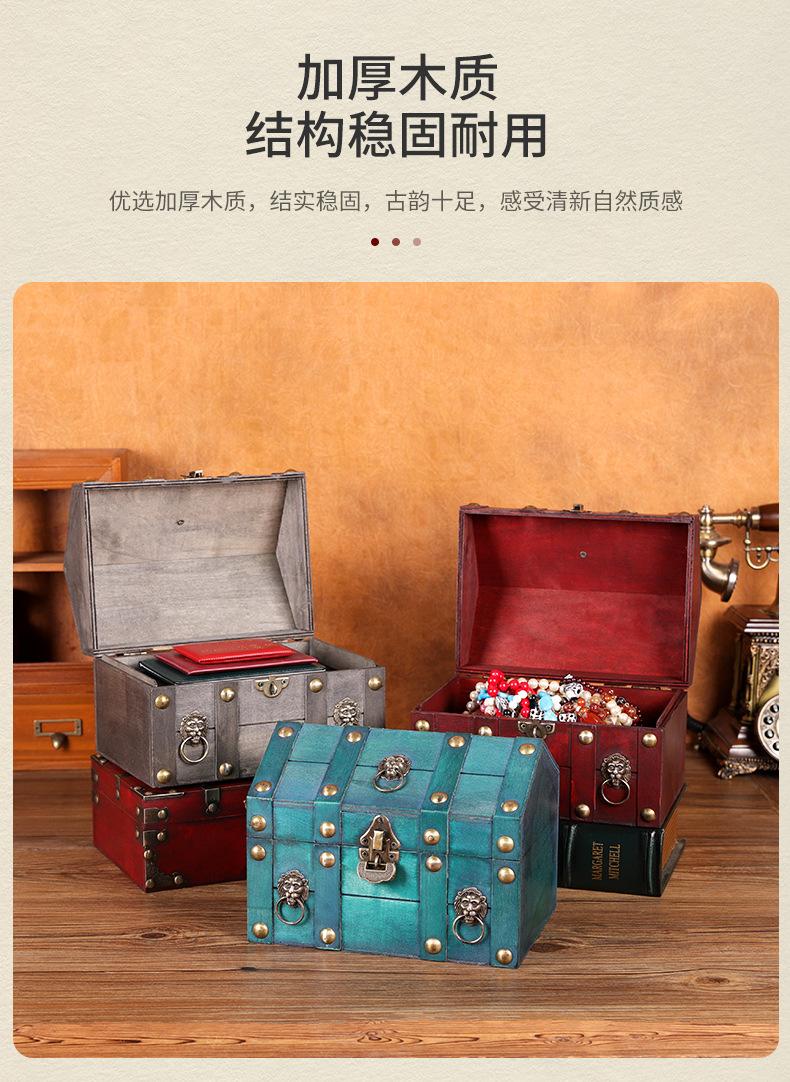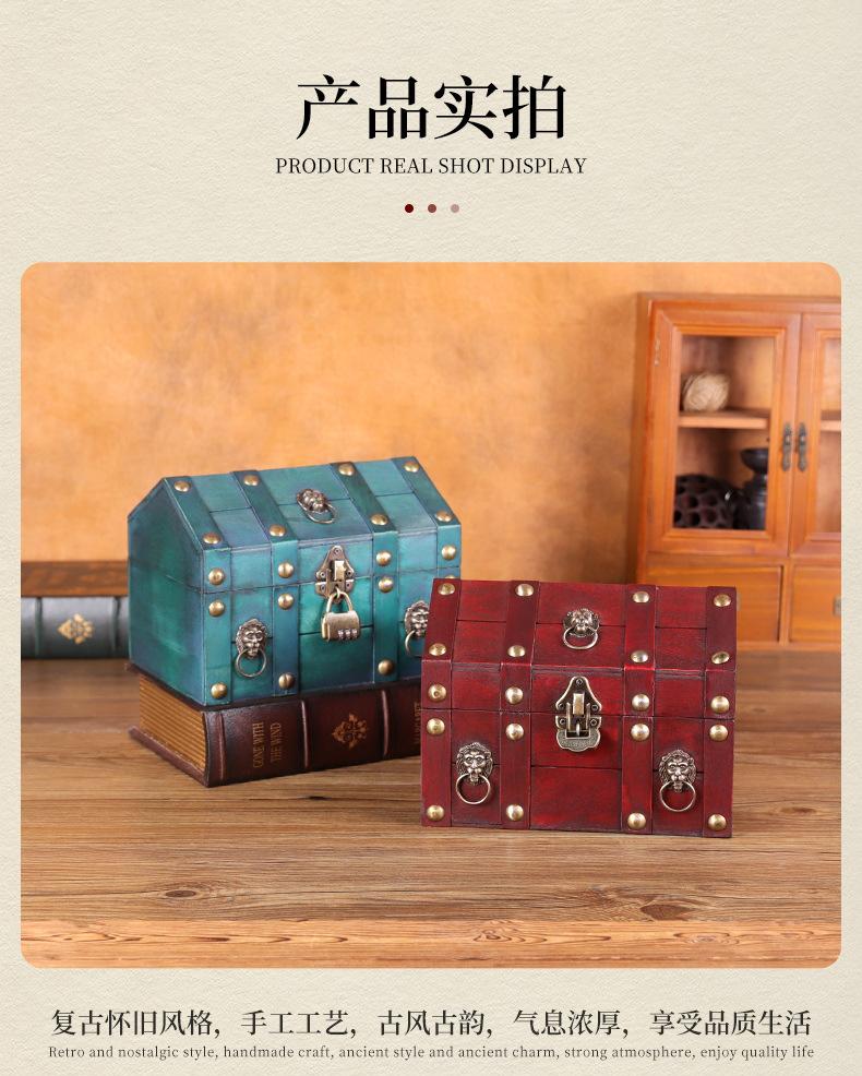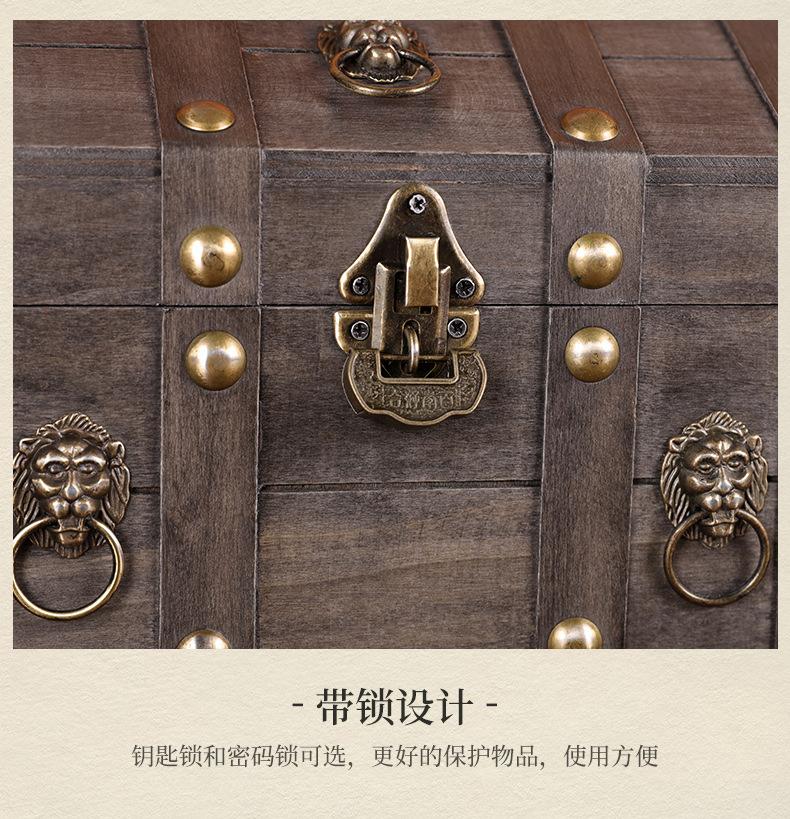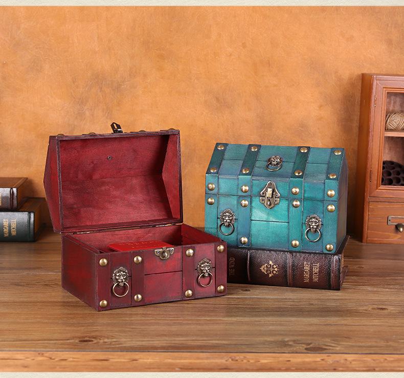 Nueva caja de almacenamiento de madera vintage, joyero de escritorio con cerradura, caja de madera, caja del tesoro creativa, caja de colección, caja de utilería