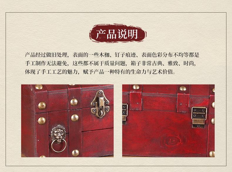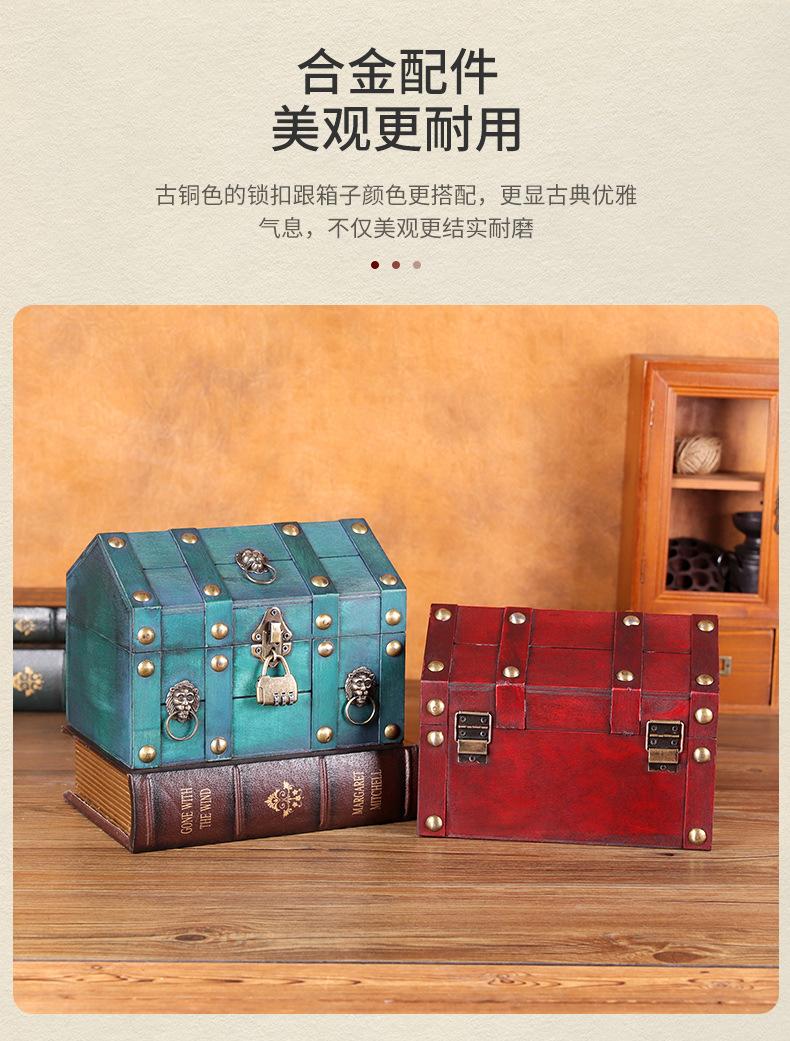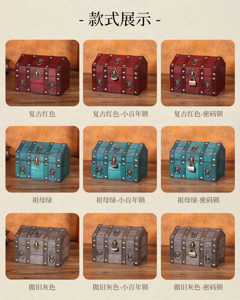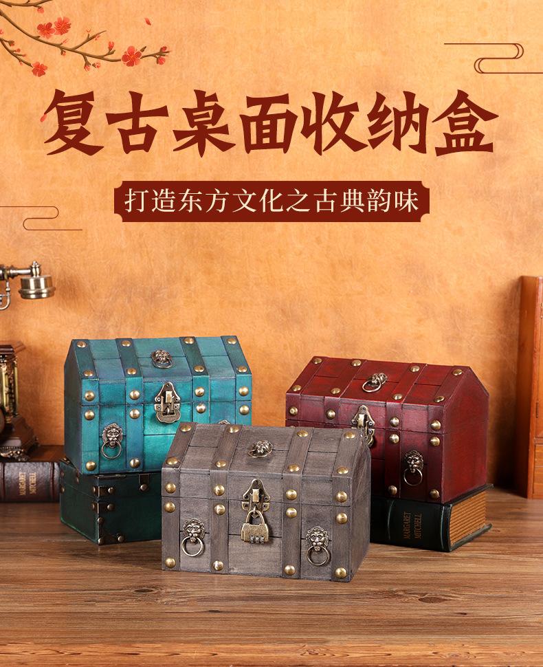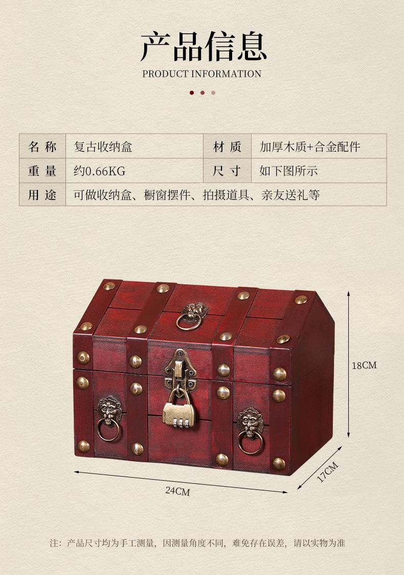 Nueva caja de almacenamiento de madera vintage, joyero de escritorio con cerradura, caja de madera, caja del tesoro creativa, caja de colección, caja de utilería