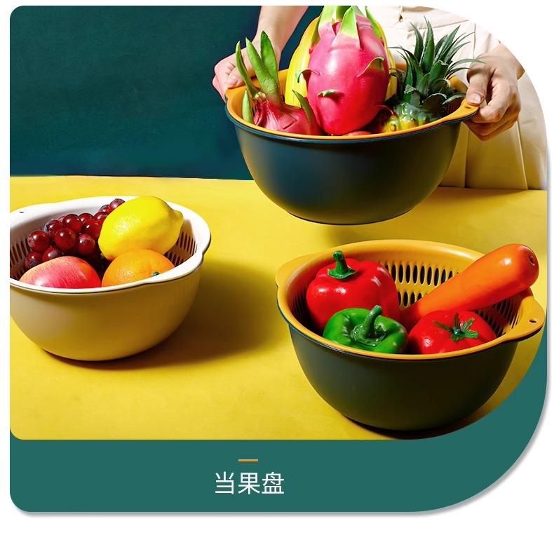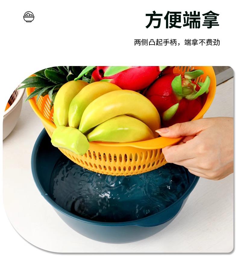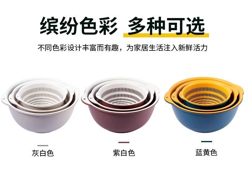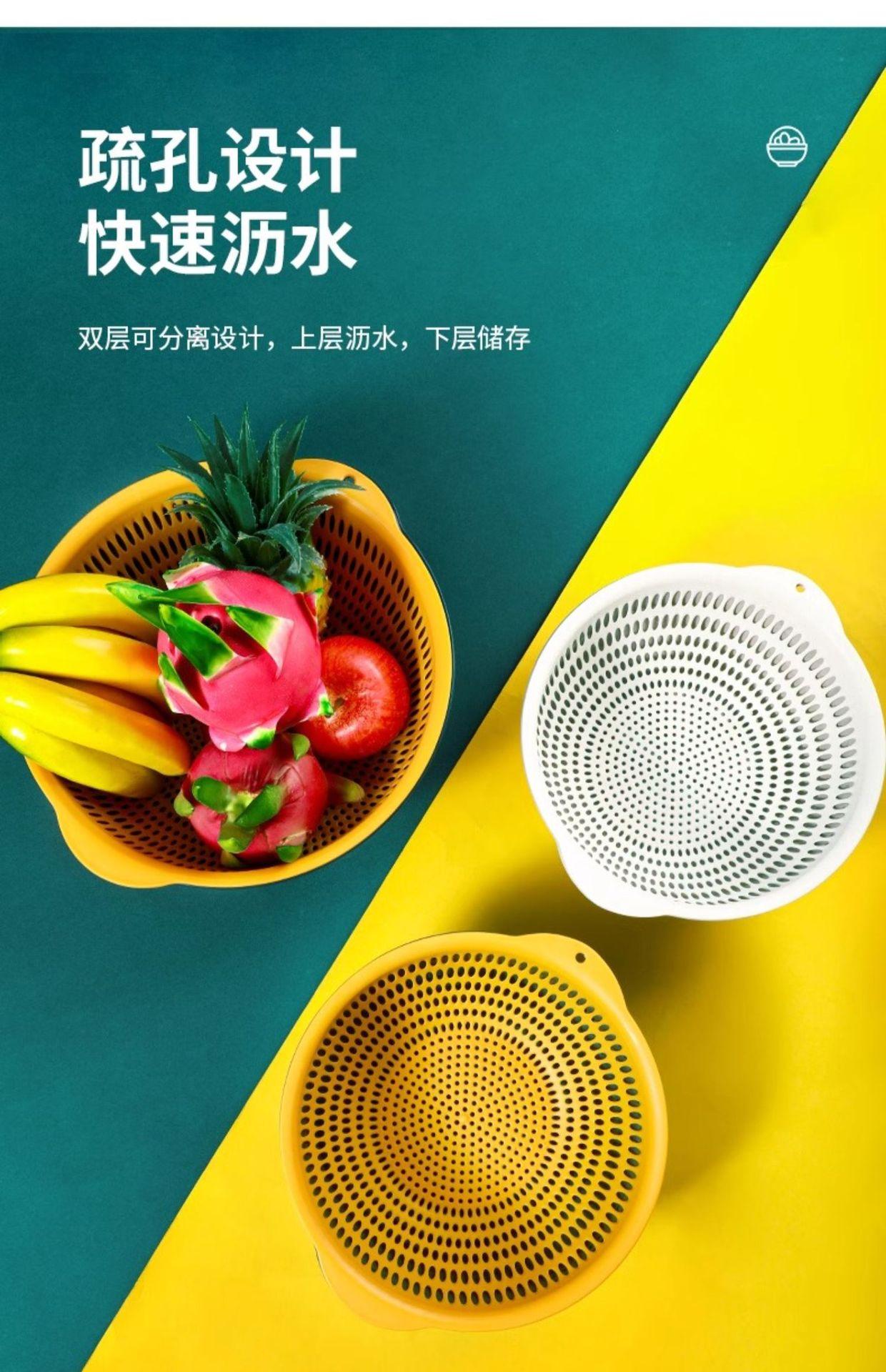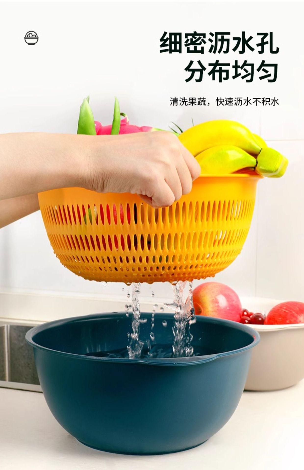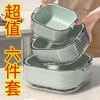 Tazón para Lavar Verduras de Doble Capa Cesta Escurridora Juego de Seis Piezas Cocina Sala de Estar Hogar Bandeja Simple de Plástico para Lavar Arroz