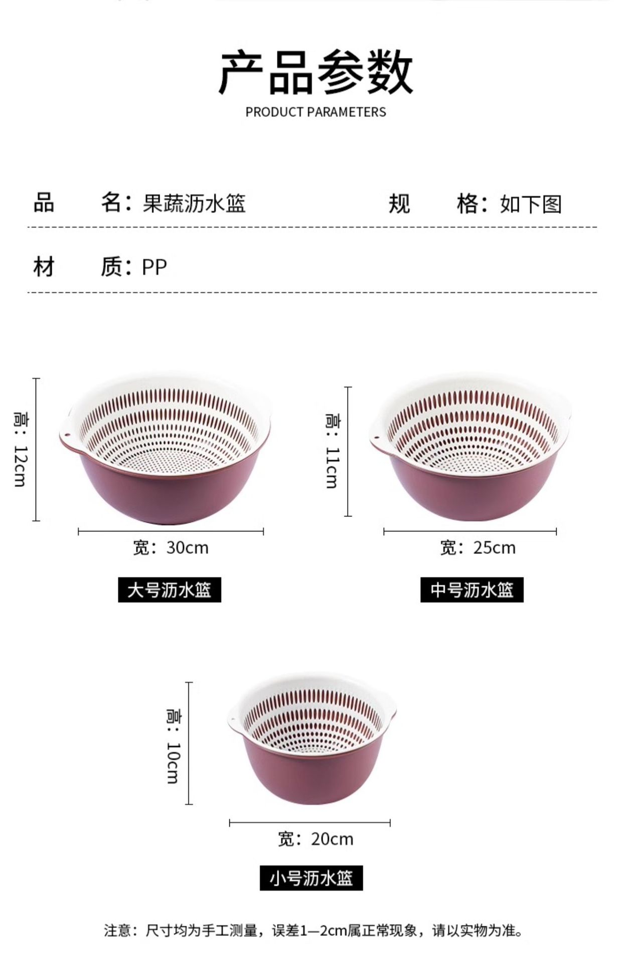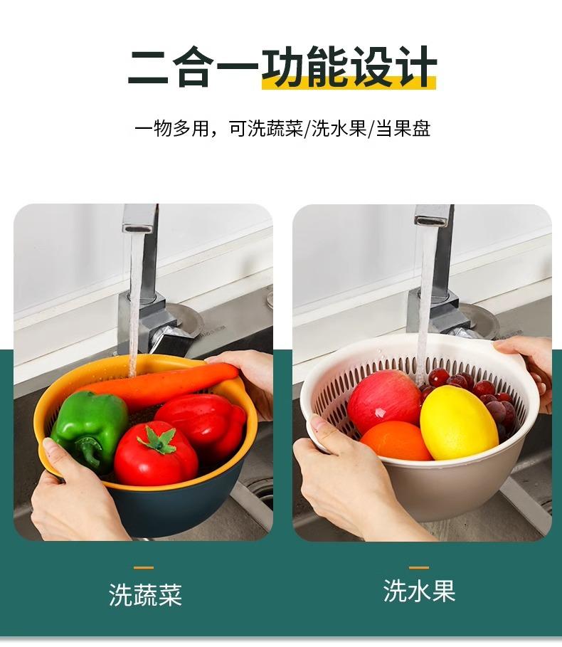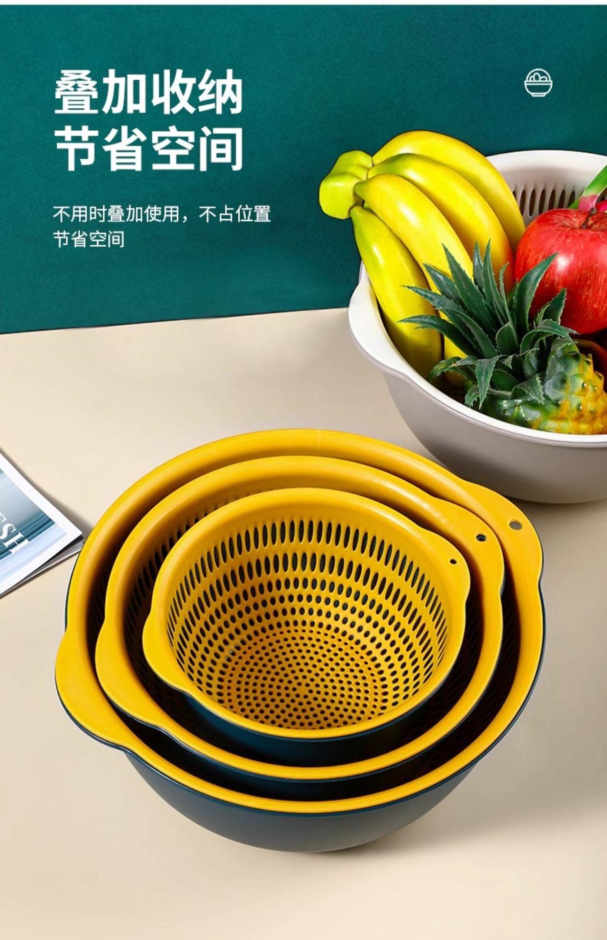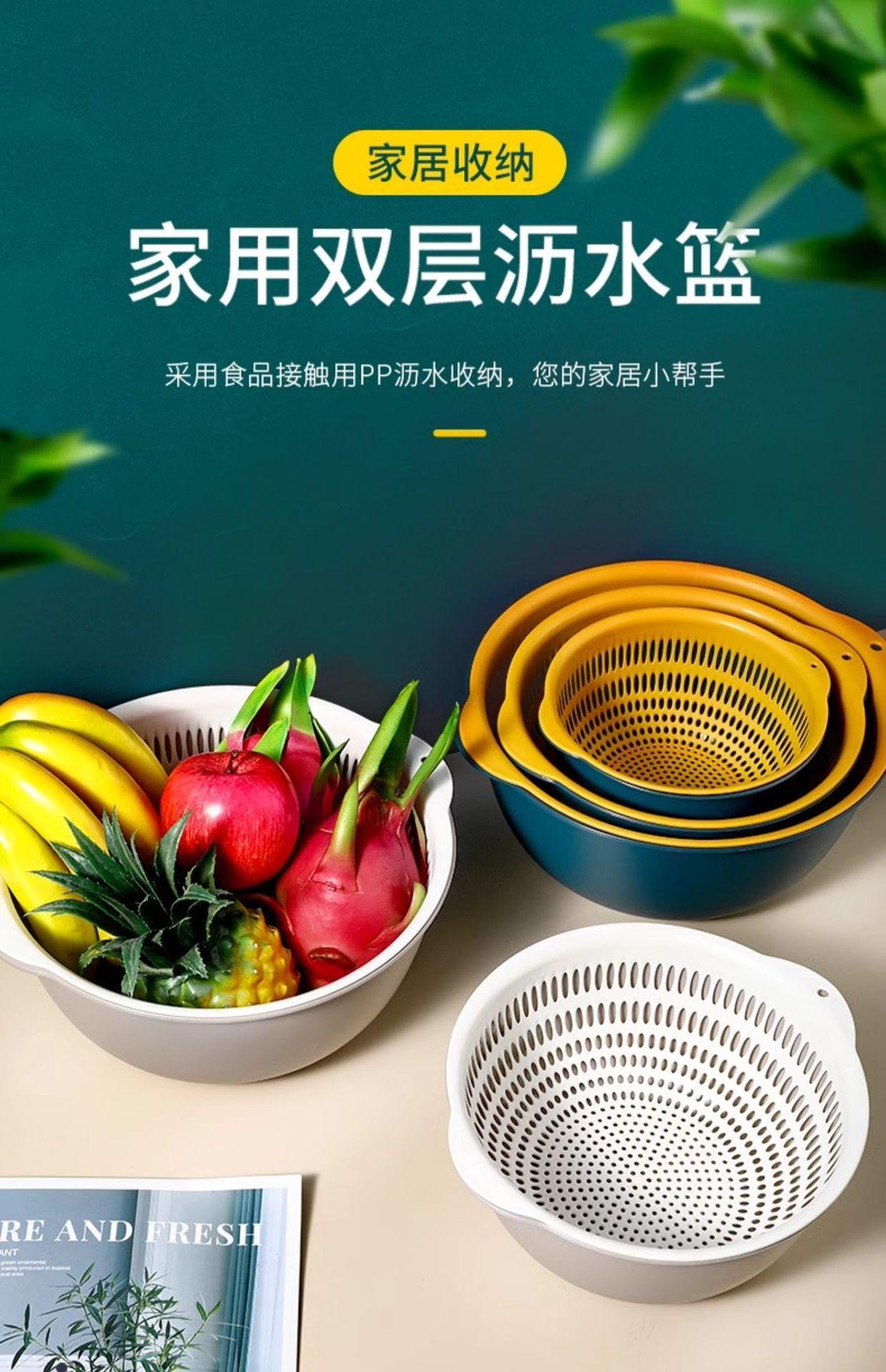 Tazón para Lavar Verduras de Doble Capa Cesta Escurridora Juego de Seis Piezas Cocina Sala de Estar Hogar Bandeja Simple de Plástico para Lavar Arroz