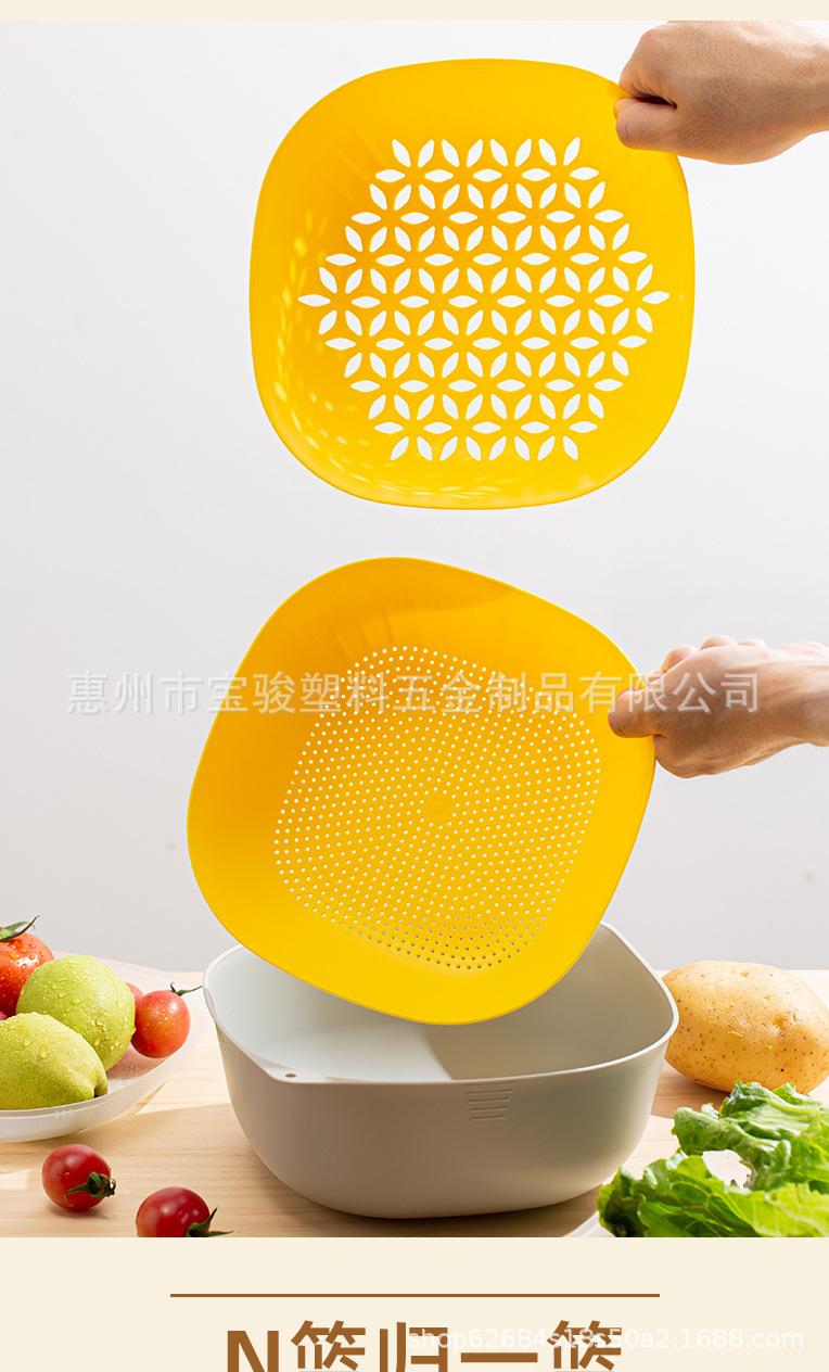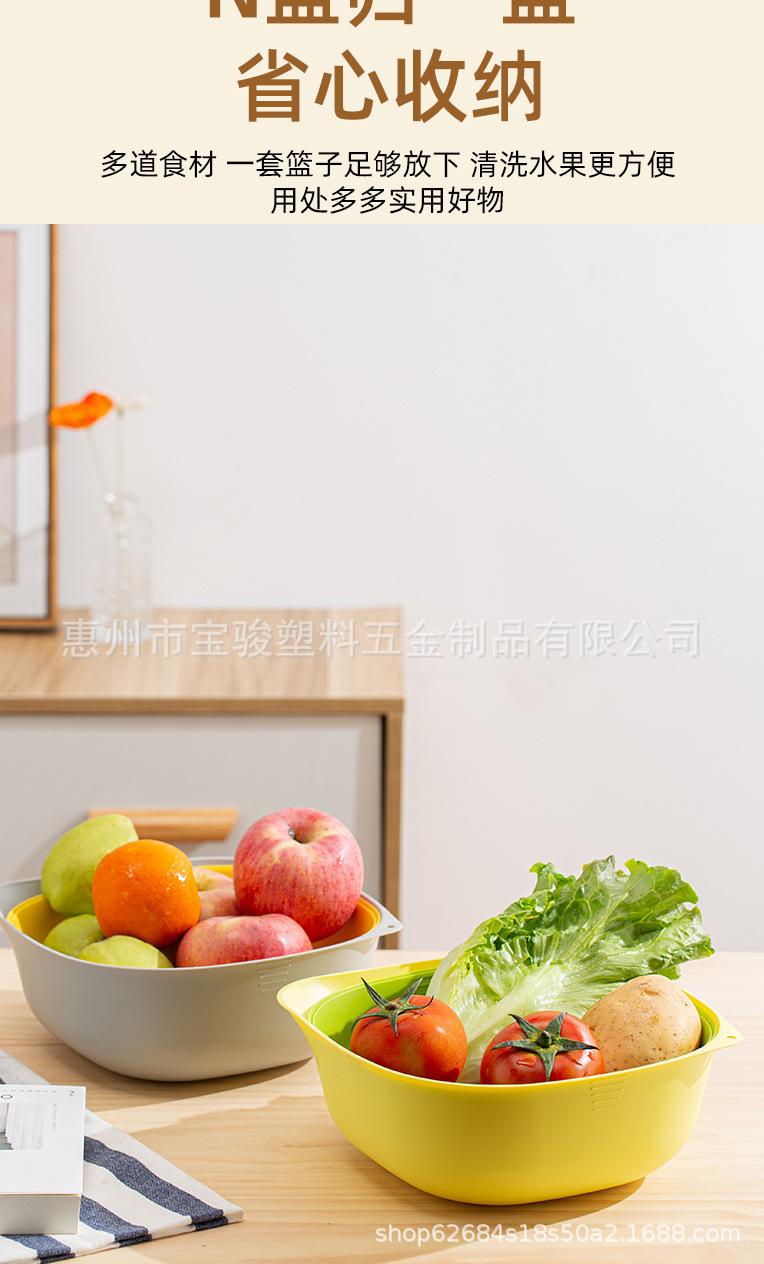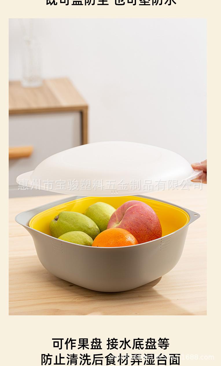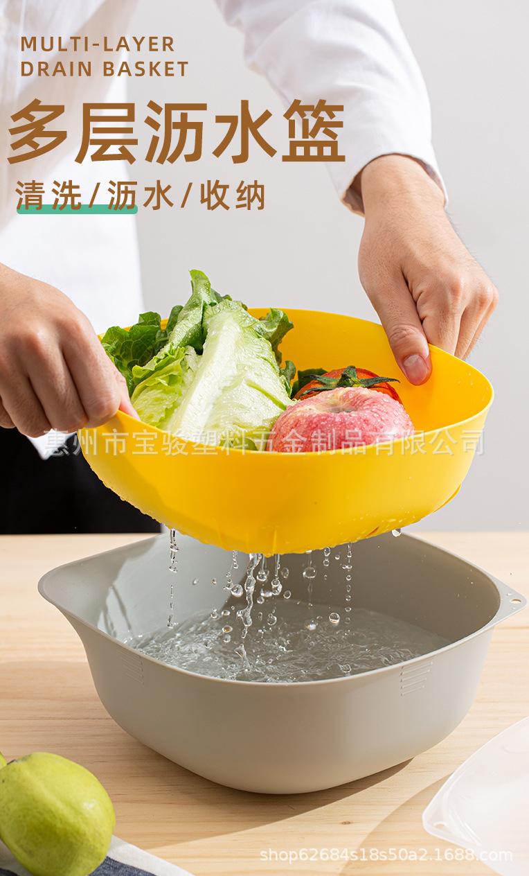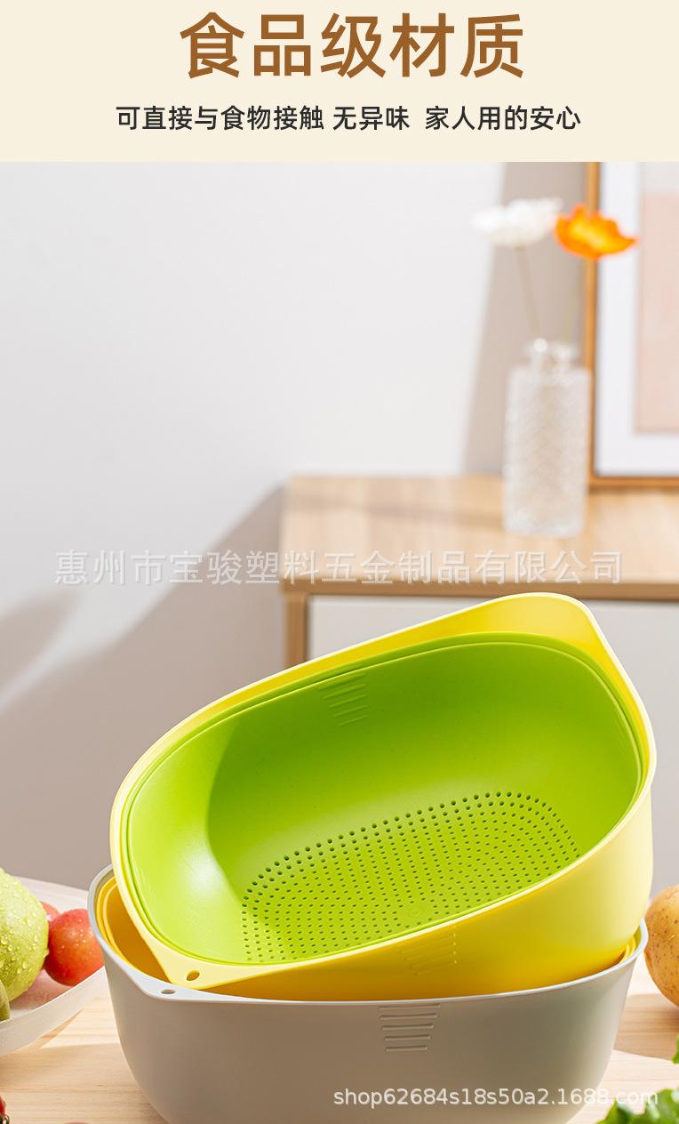 Colador de Plástico Grueso de Doble Capa para el Hogar con Recortes, Cuenco para Fruta, Cesta para Fruta para el Hogar, Cesta de Plástico para Lavar Verduras, Palangana para Lavar Verduras