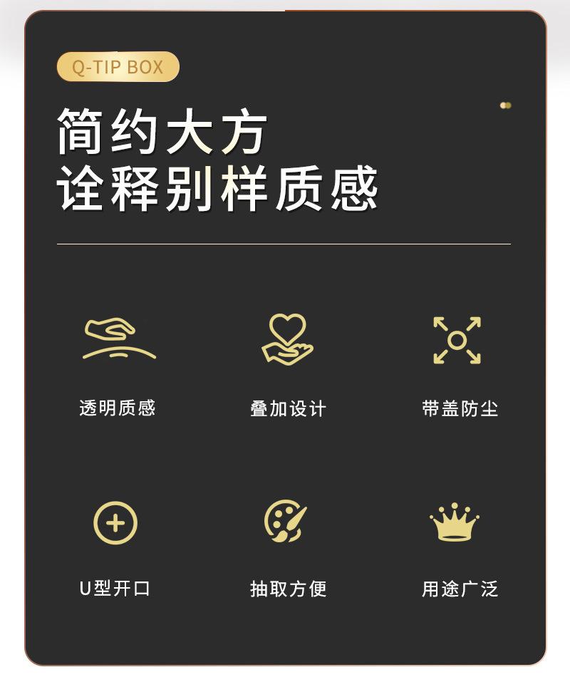Nombre del producto: Caja de almacenamiento de algodón cosmético con hisopo de algodón Material del producto: PS Embalaje del producto: caja independiente. Cantidad de embalaje: 120 piezas