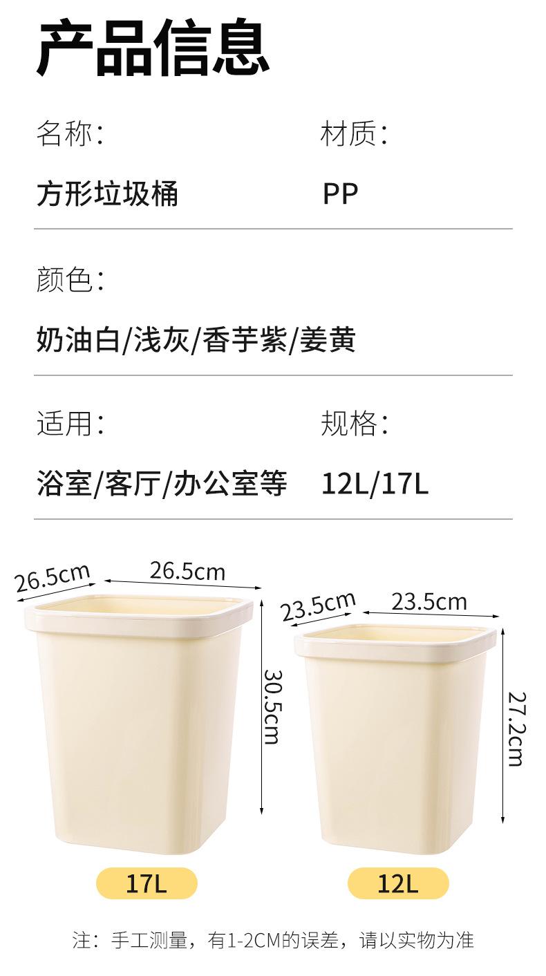 Bote de Basura Cuadrado para el Hogar Bote de Basura Extra Grande con Anillo de Presión Baño Sala de Estar Baño Cocina Cesto de Papel Especial Grande