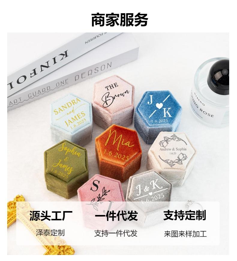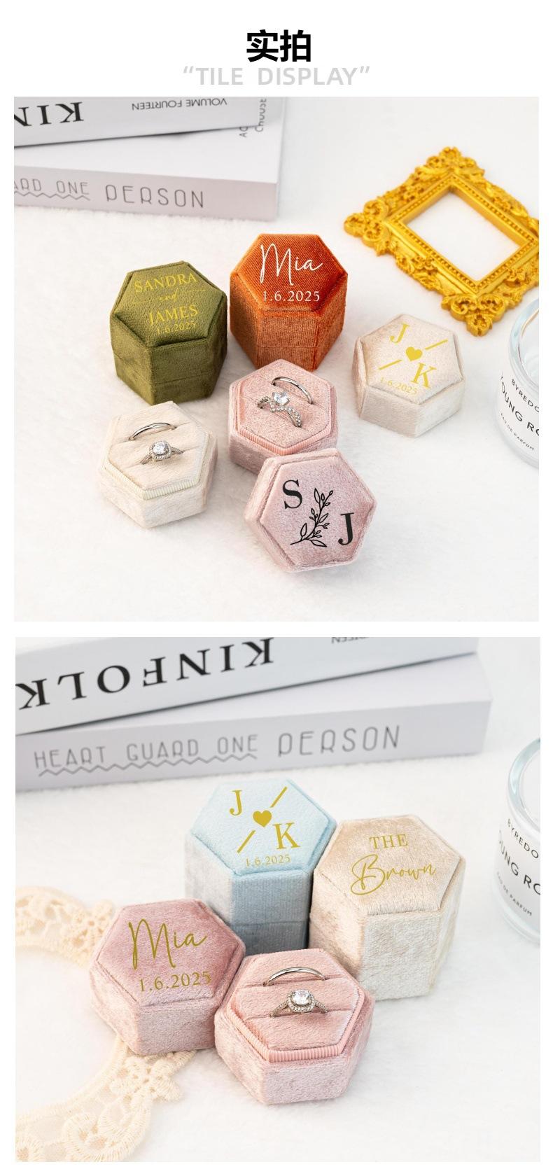 Caja de joyería transfronteriza caja de embalaje de alta gama caja hexagonal para anillos aretes de botón de alta gama caja de regalo para joyas de doble anillo