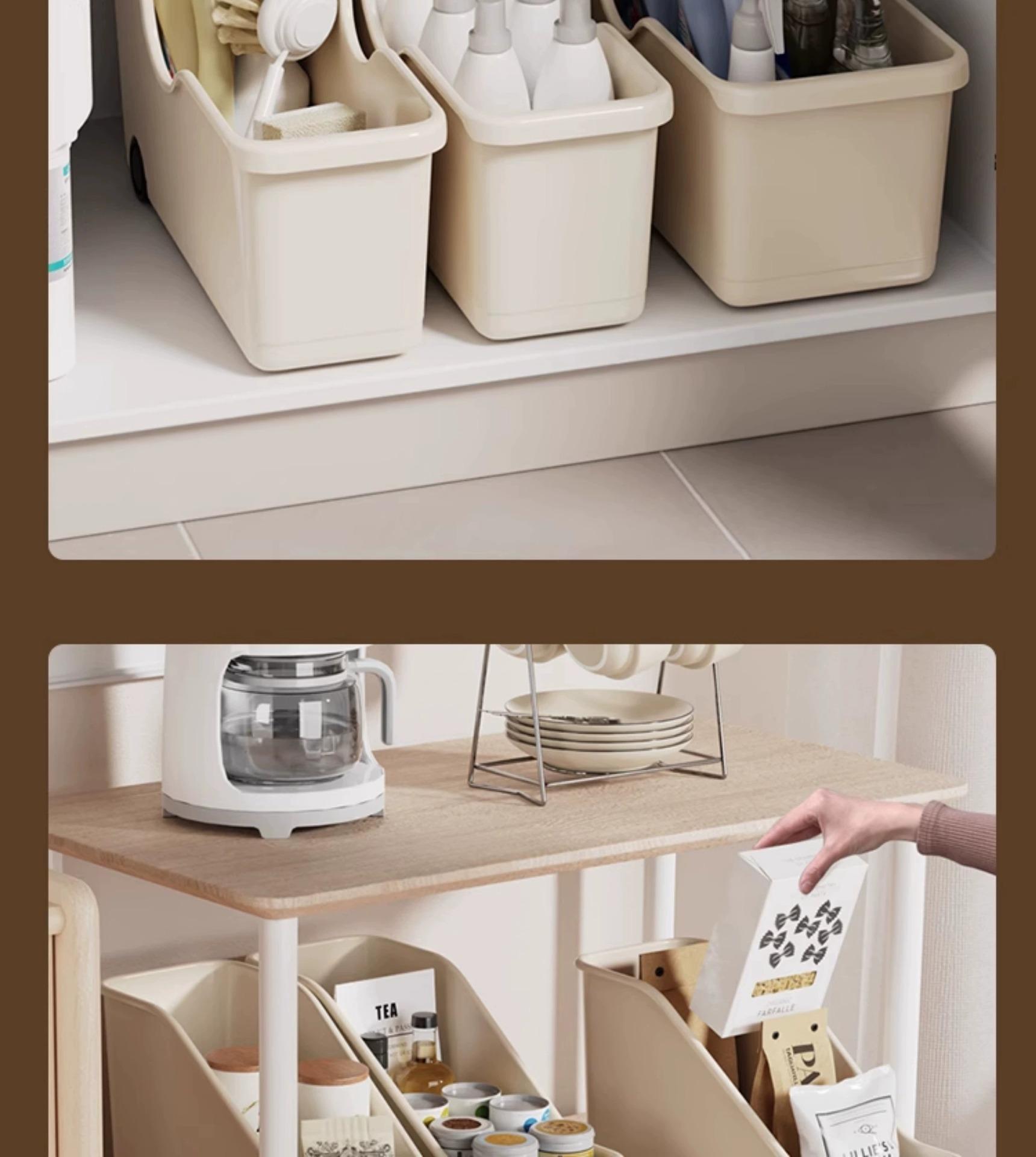 Caja de almacenamiento tipo gabinete de estilo japonés cesta de almacenamiento para utensilios de cocina con ruedas escurreplatos estante para ollas almacenamiento de condimentos caja de almacenamiento extraíble