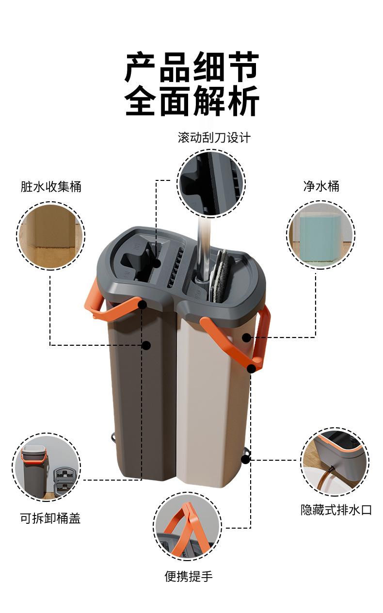 Juego de Trapeador de Cubeta Desmontable Modelo Nuevo 2025 Personalizado con Trapeador Plano Grande y Trapeador de Cubeta Desmontable
